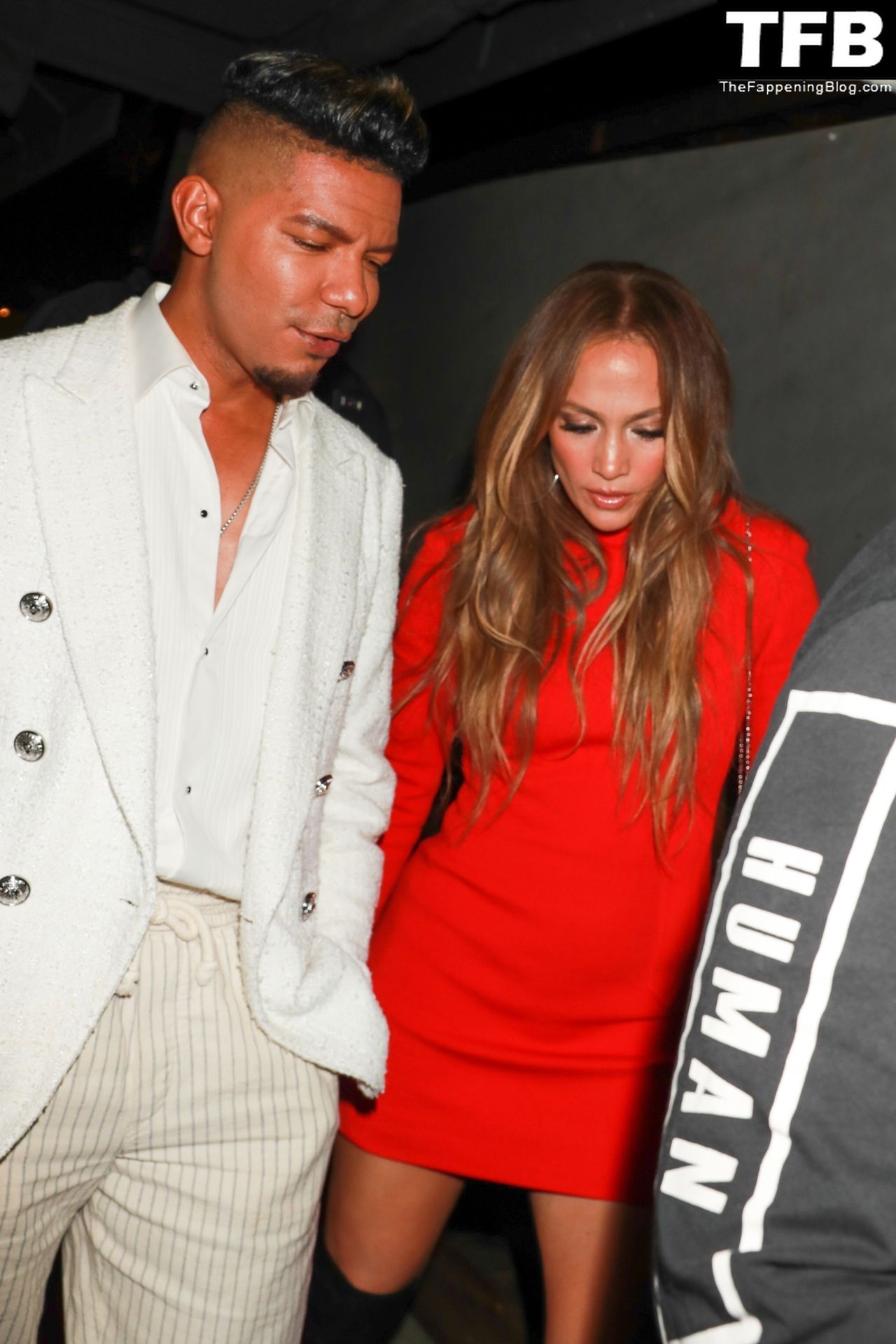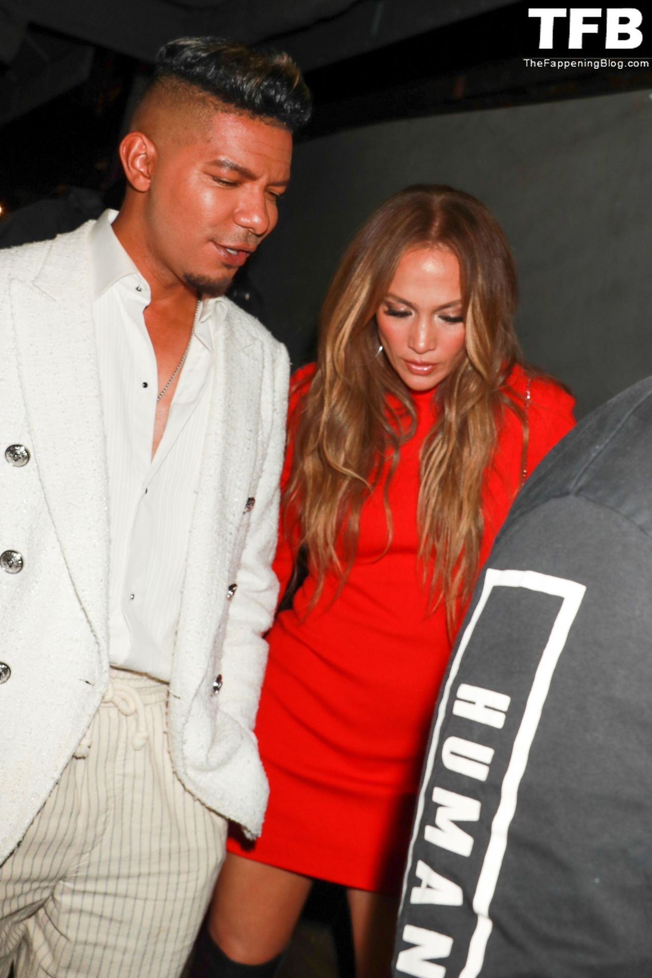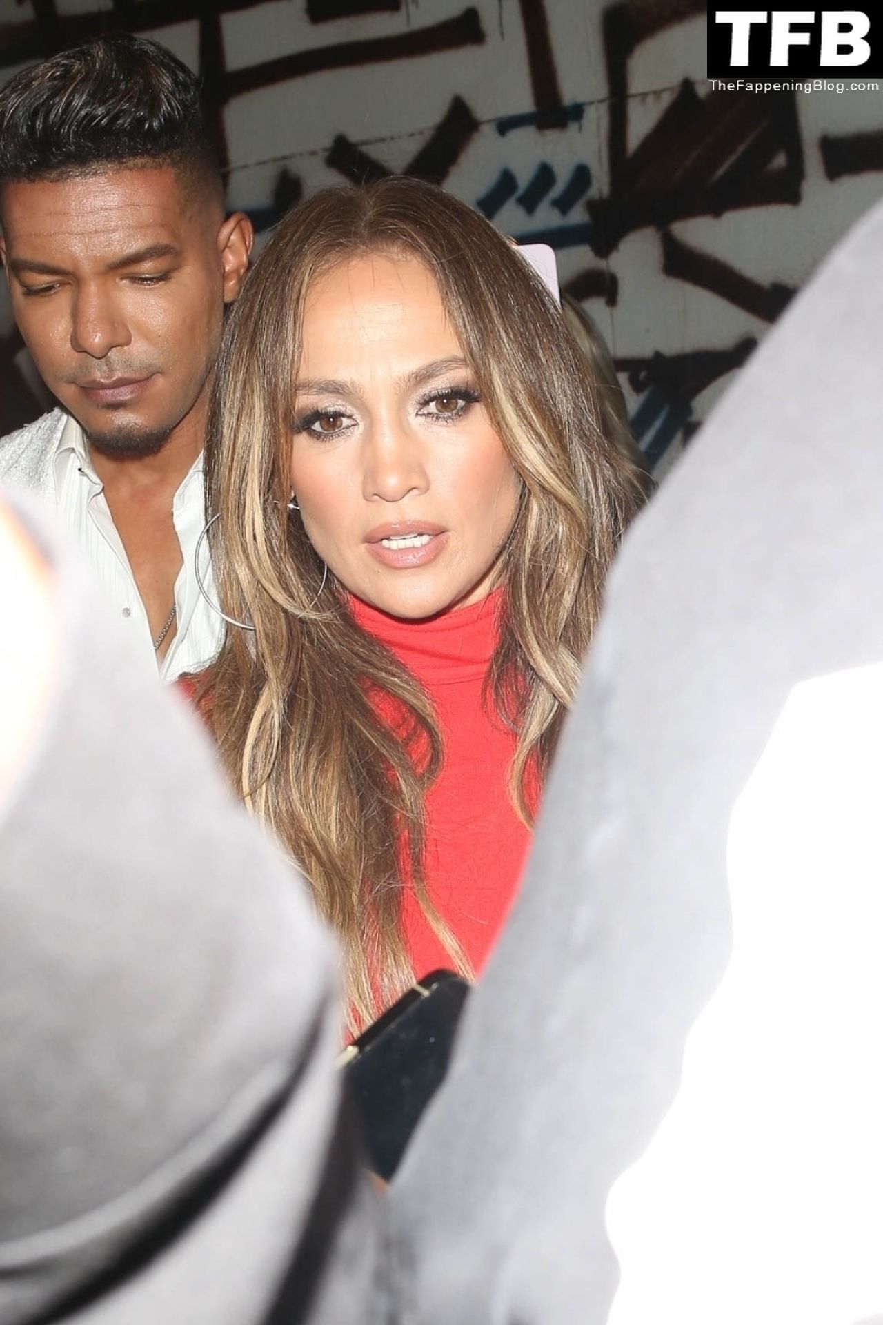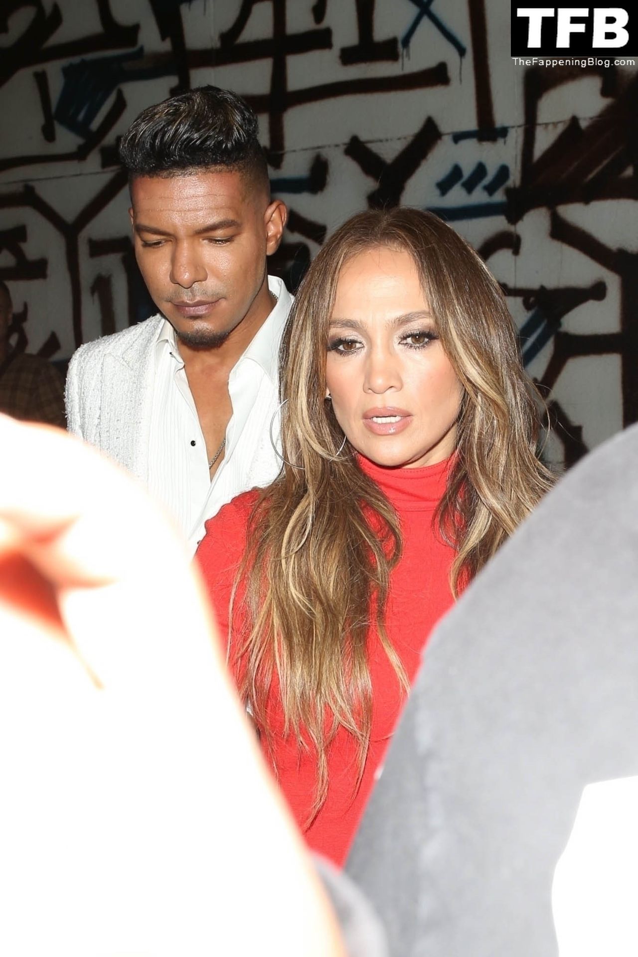 Jennifer Lopez llega con un sexy minivestido rojo y botas hasta el muslo en Craig’s en West Hollywood, 23/04/2022.