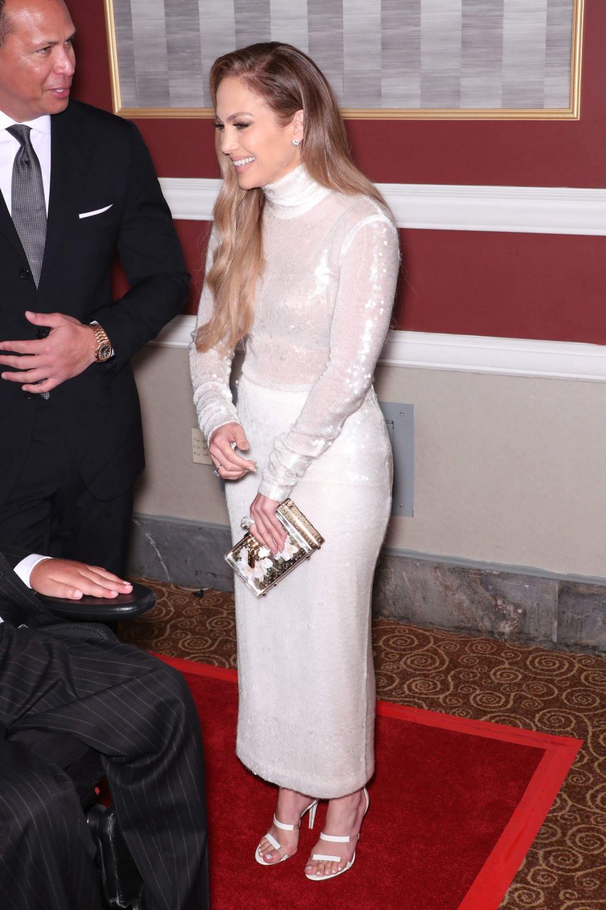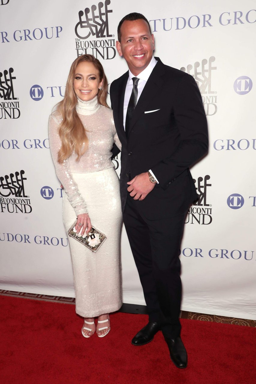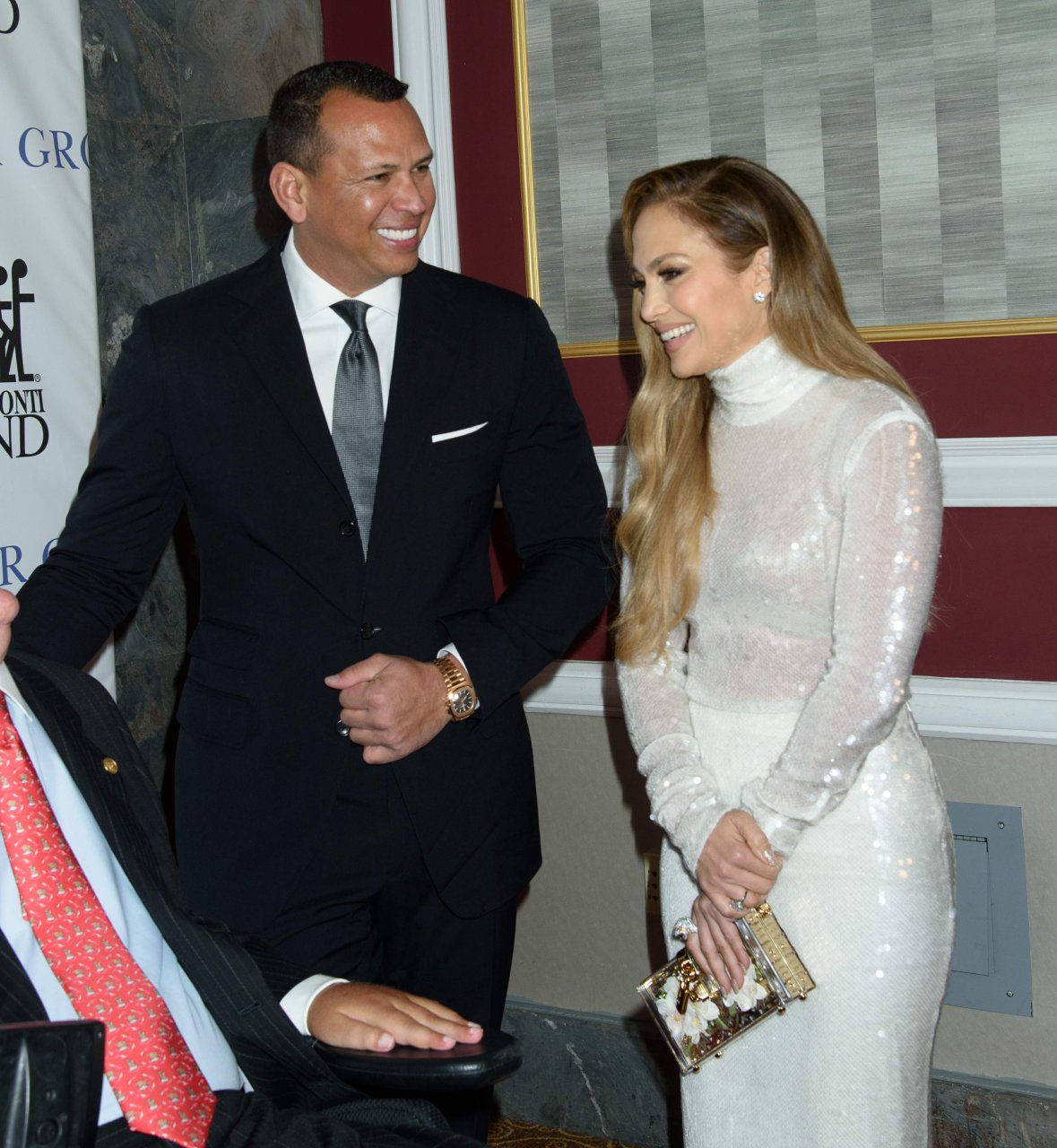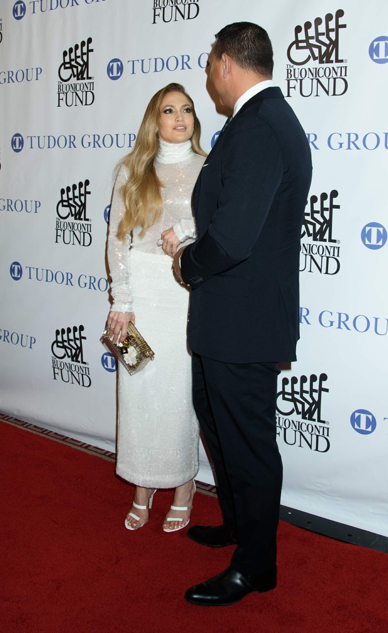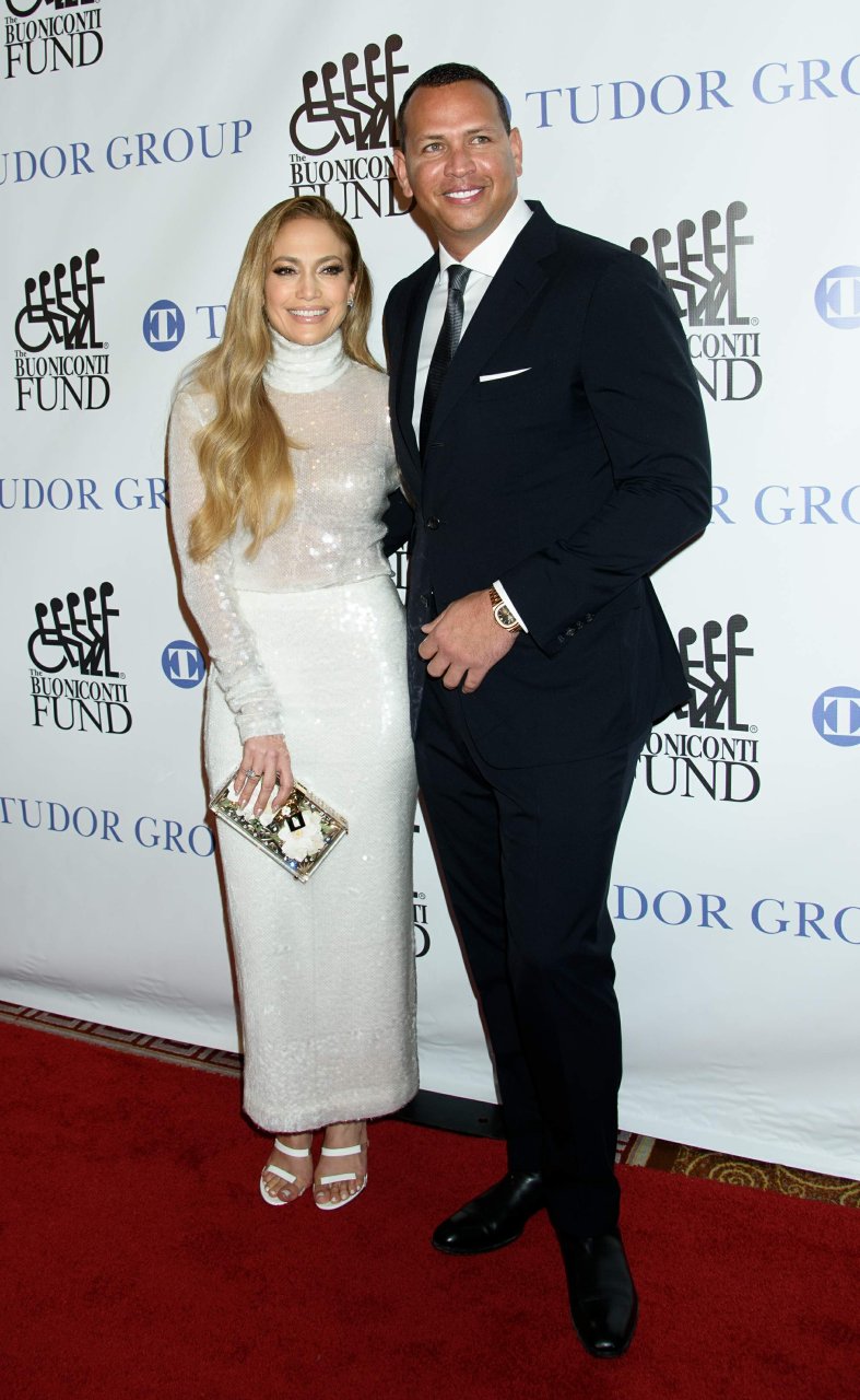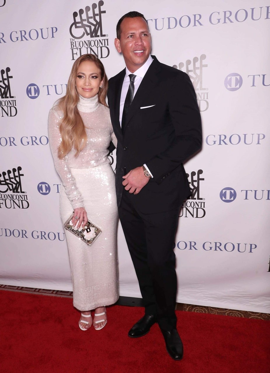 Superestrella Jennifer Lopez (49) posa en la alfombra roja con su novio Alex Rodriguez en la 33ª Cena Anual de Grandes Leyendas del Deporte en la ciudad de Nueva York, 24/09/2018.
