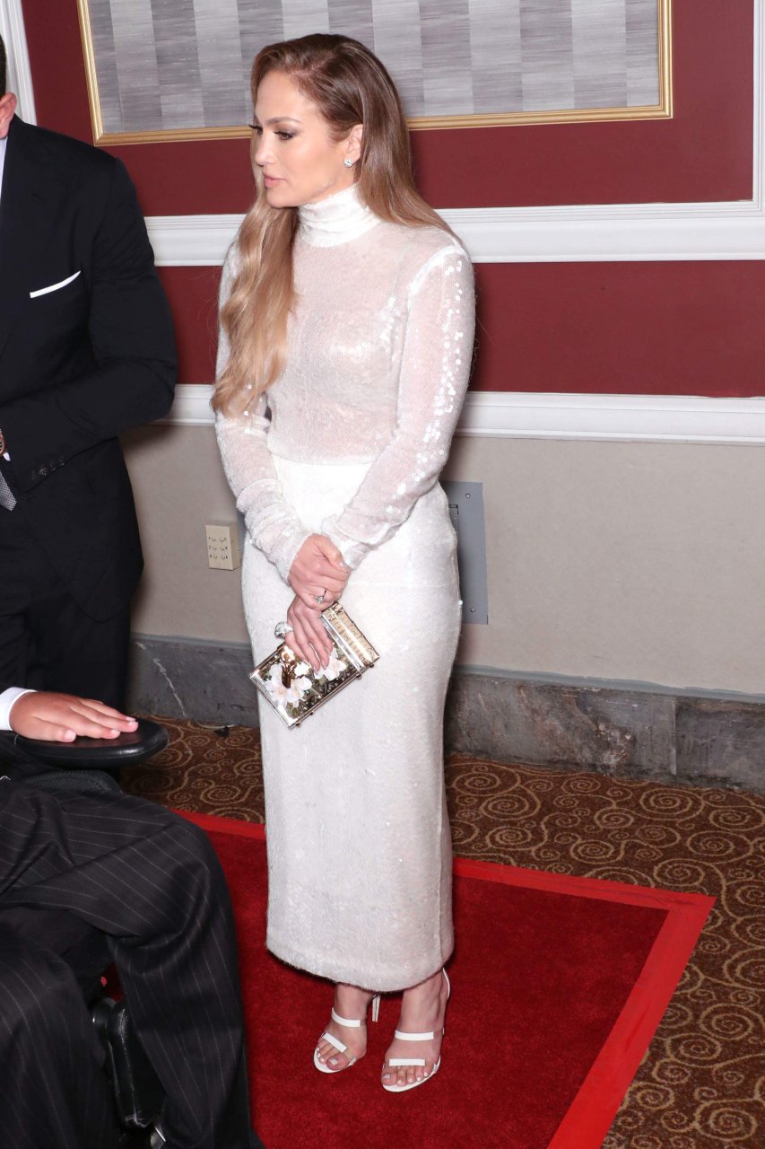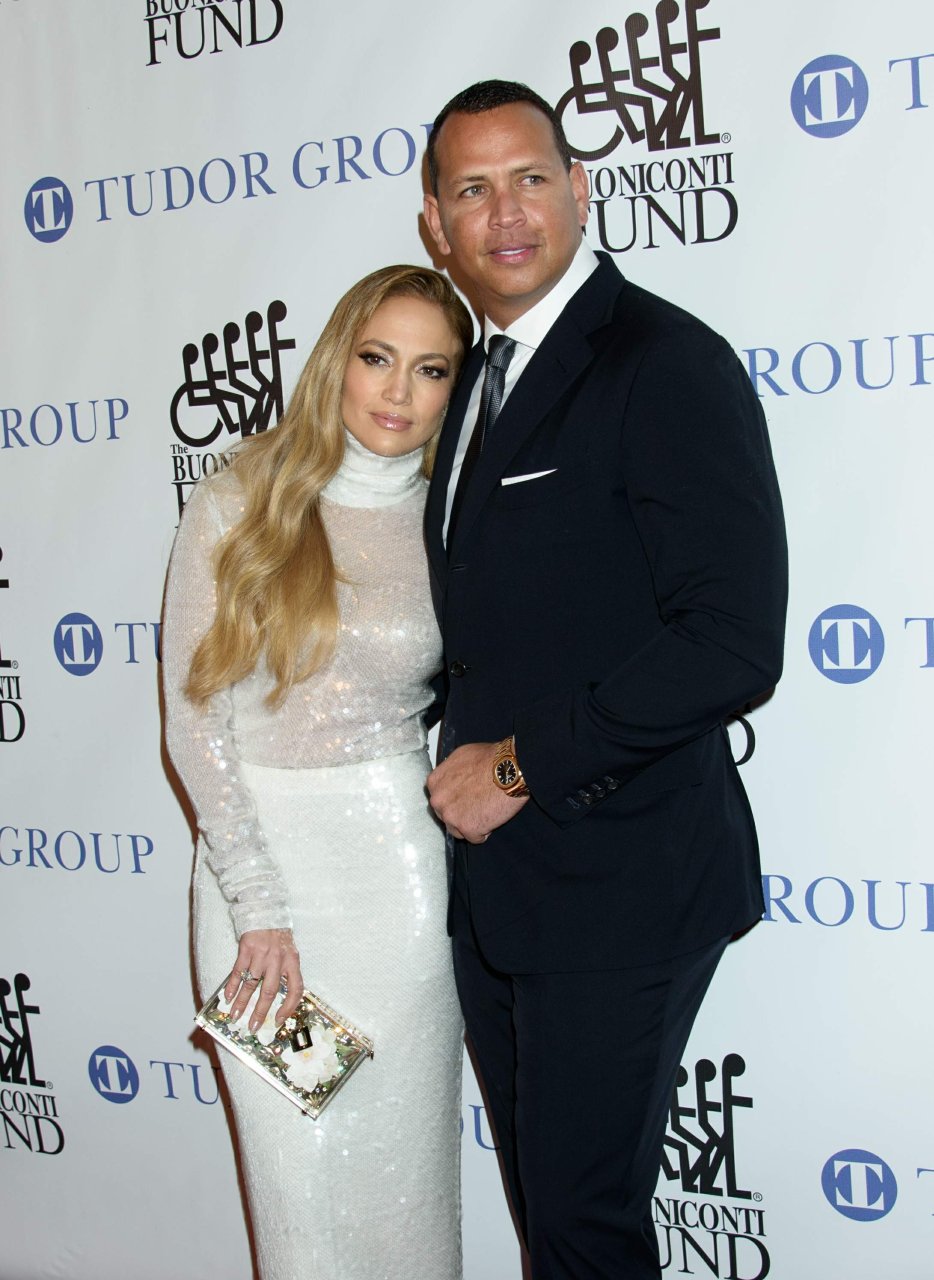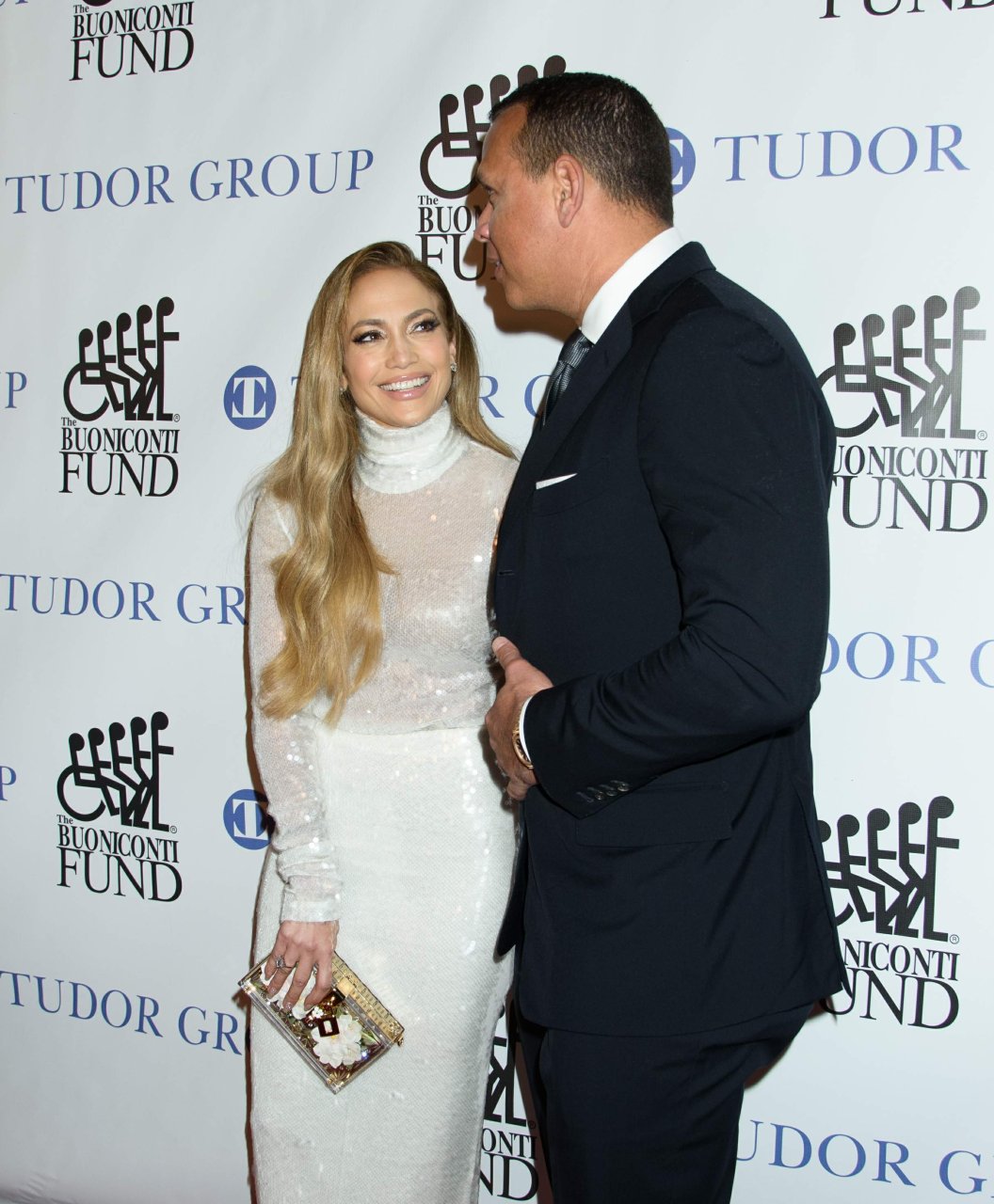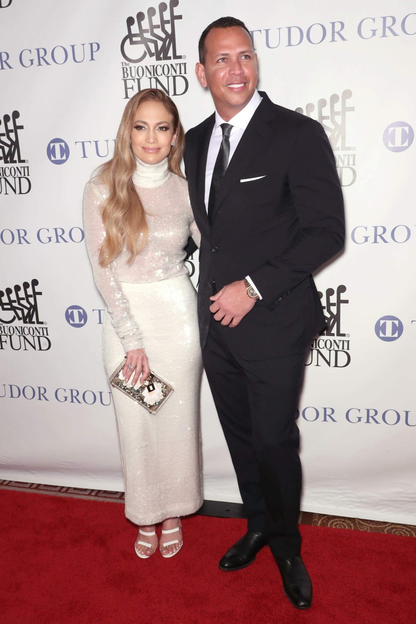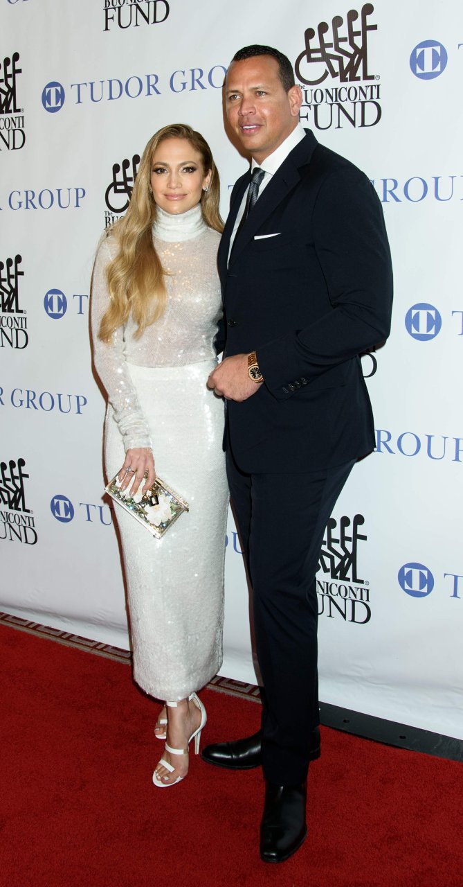 Superestrella Jennifer Lopez (49) posa en la alfombra roja con su novio Alex Rodriguez en la 33ª Cena Anual de Grandes Leyendas del Deporte en la ciudad de Nueva York, 24/09/2018.