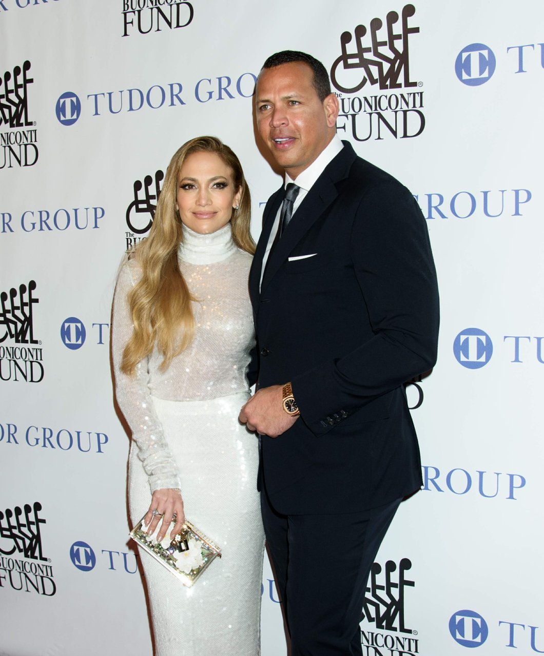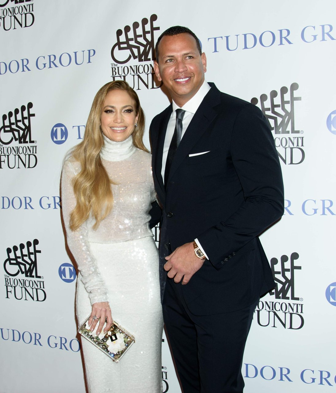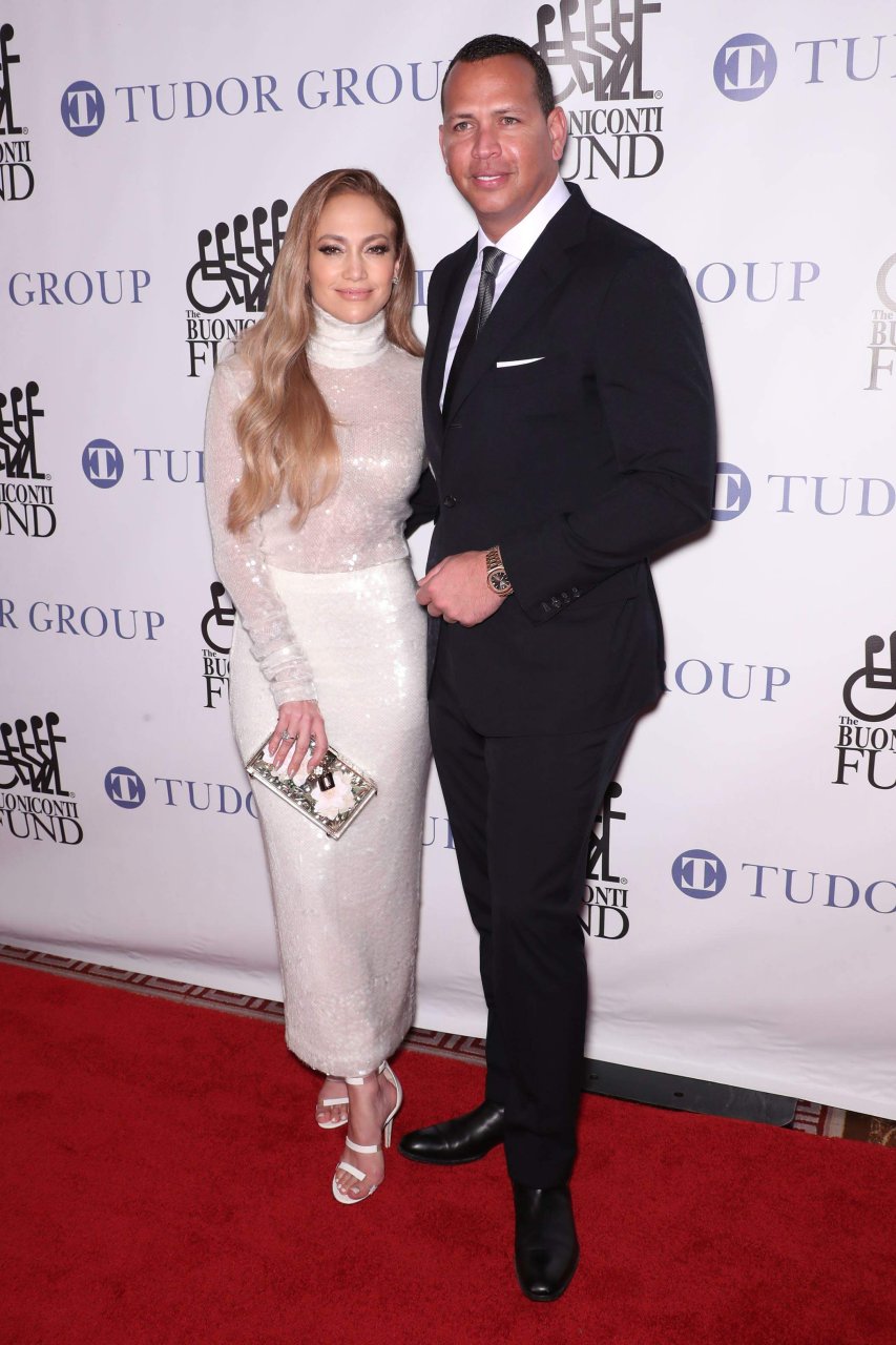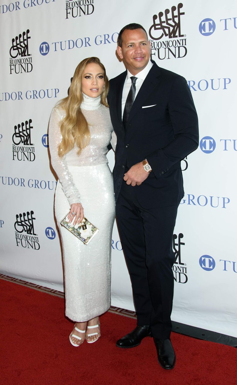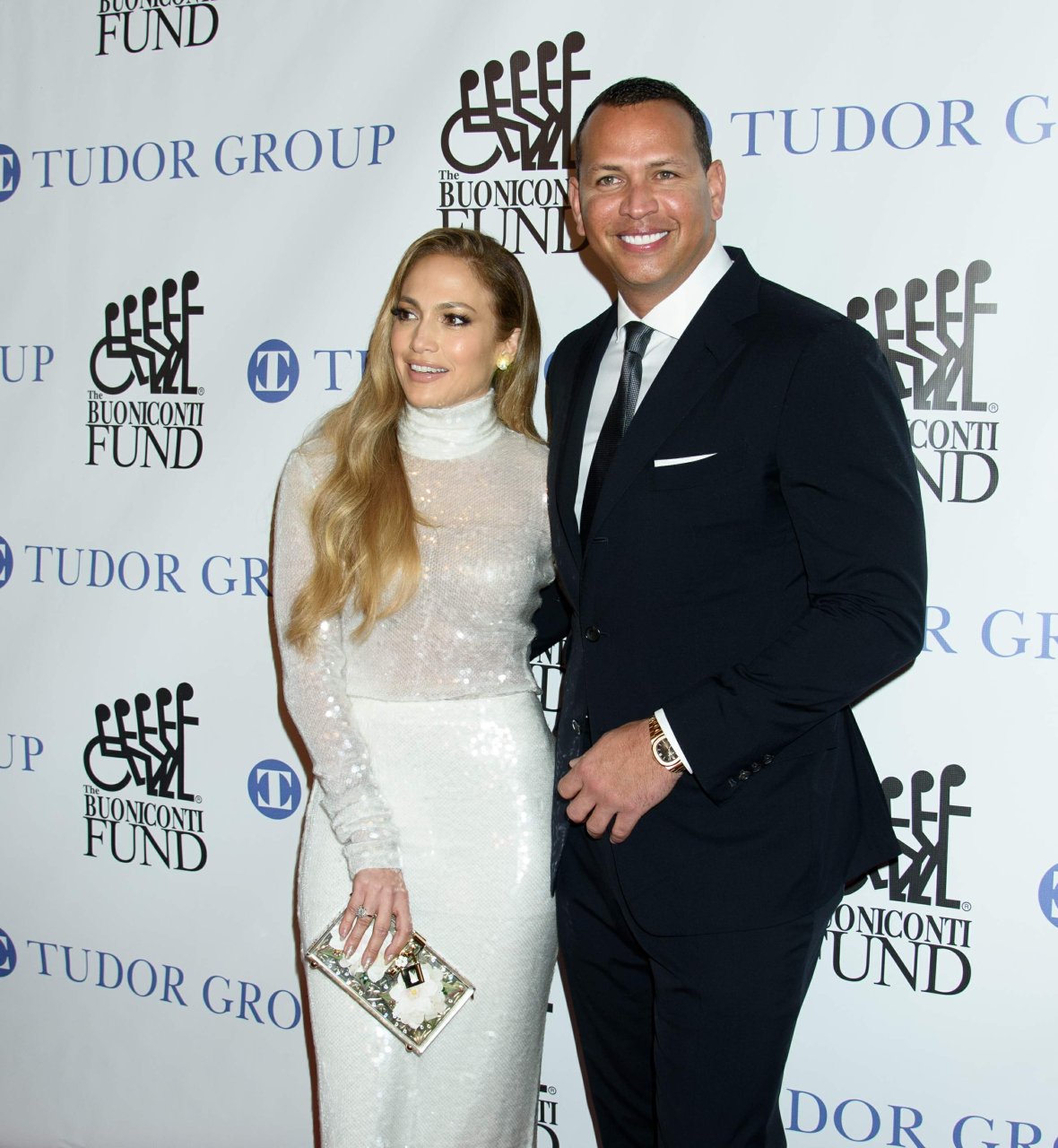 Superestrella Jennifer Lopez (49) posa en la alfombra roja con su novio Alex Rodriguez en la 33ª Cena Anual de Grandes Leyendas del Deporte en la ciudad de Nueva York, 24/09/2018.