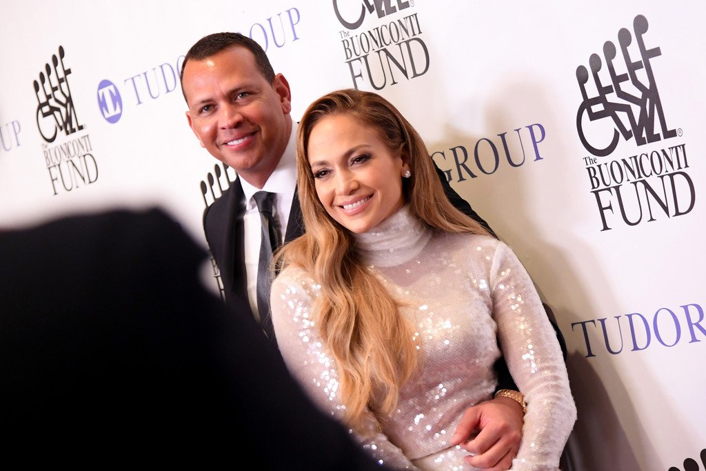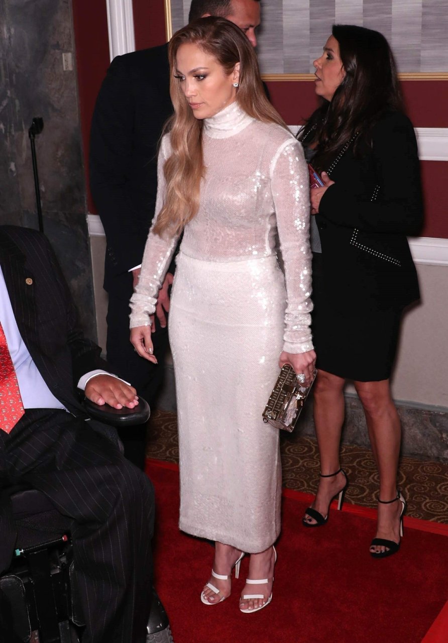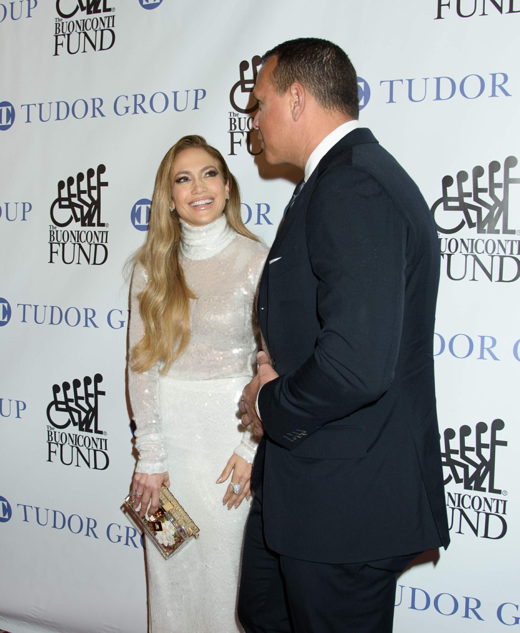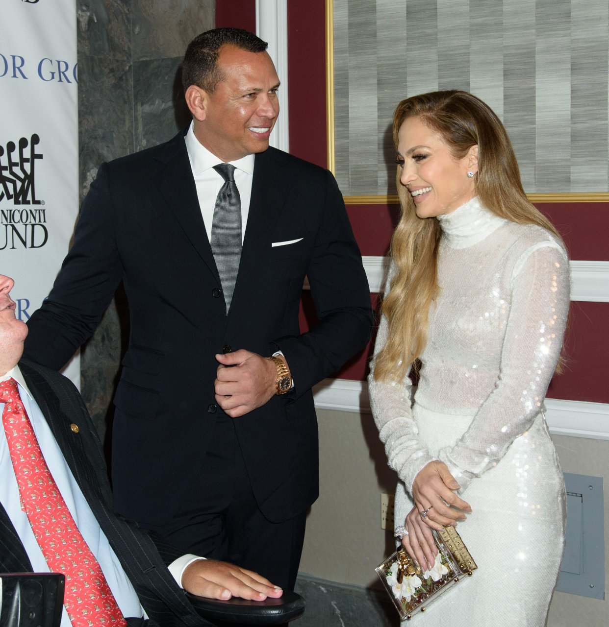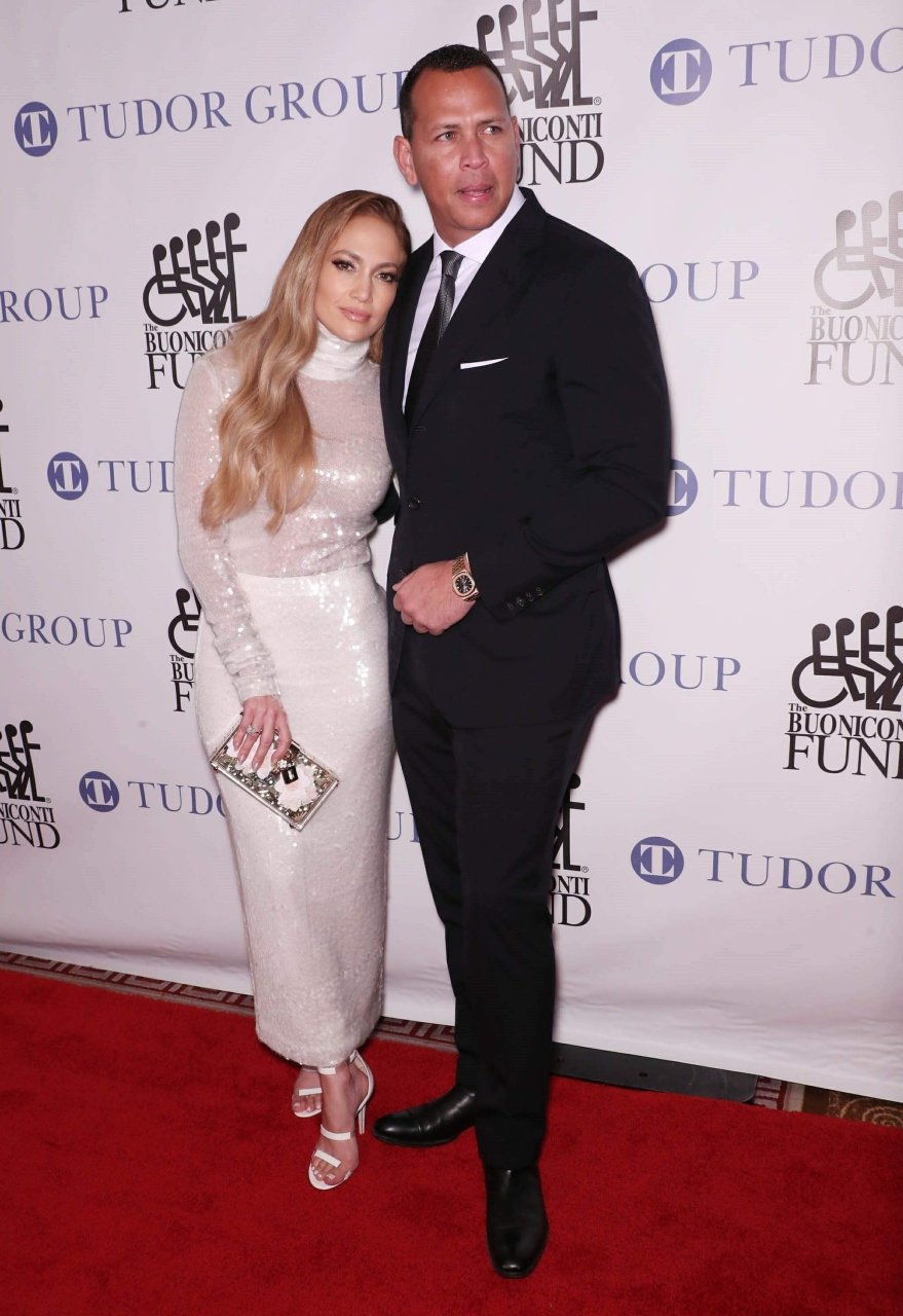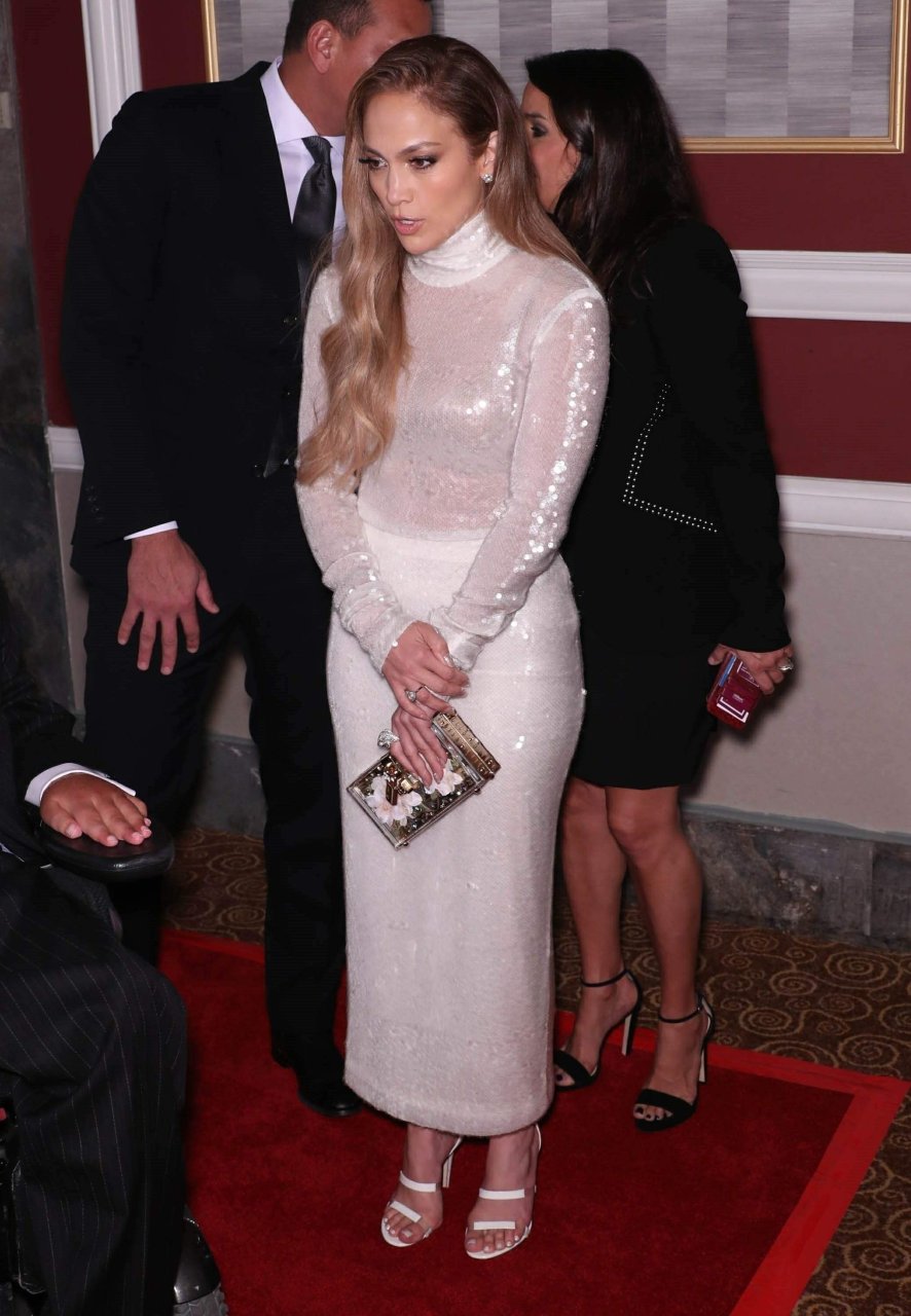 Superestrella Jennifer Lopez (49) posa en la alfombra roja con su novio Alex Rodriguez en la 33ª Cena Anual de Grandes Leyendas del Deporte en la ciudad de Nueva York, 24/09/2018.