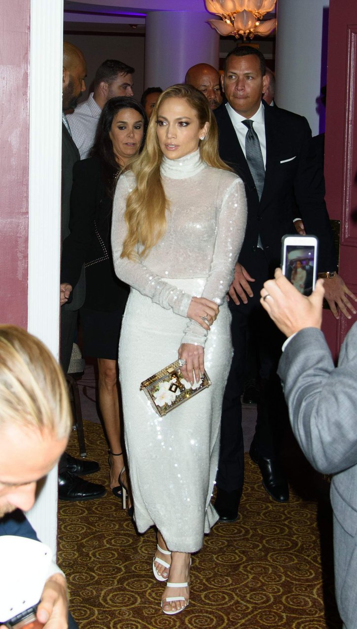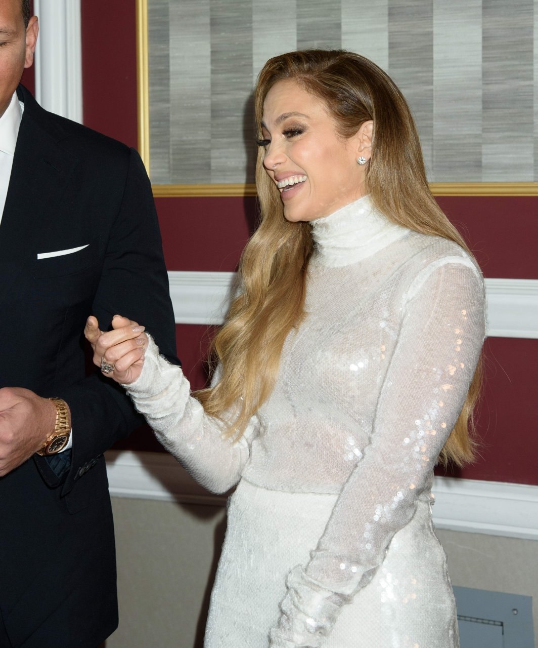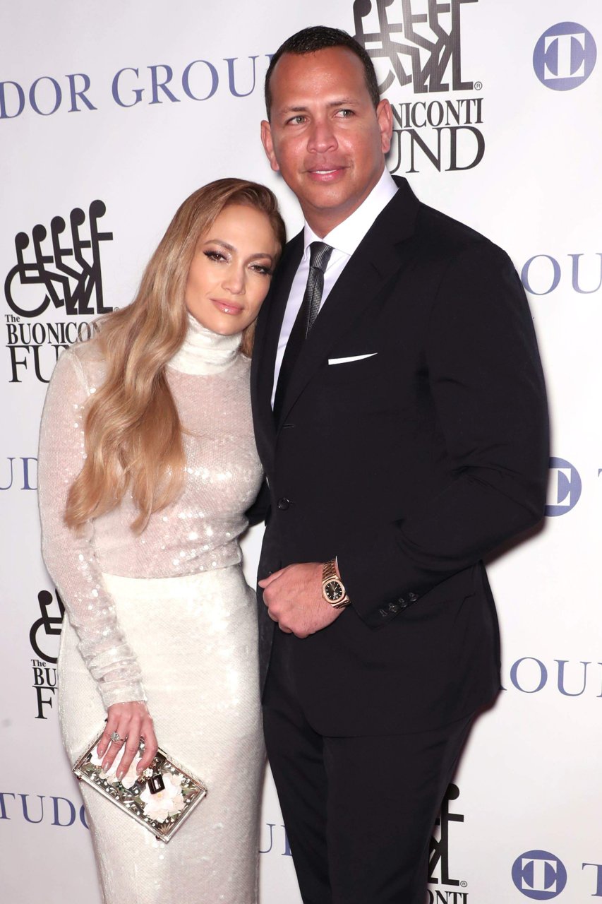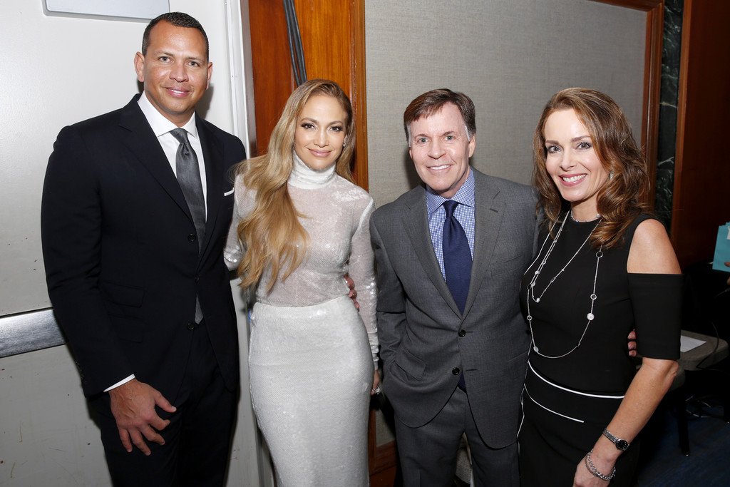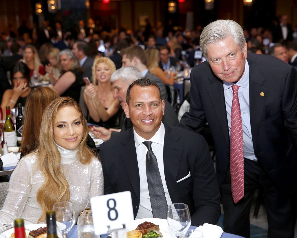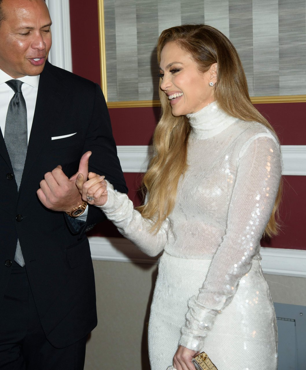 Superestrella Jennifer Lopez (49) posa en la alfombra roja con su novio Alex Rodriguez en la 33ª Cena Anual de Grandes Leyendas del Deporte en la ciudad de Nueva York, 24/09/2018.