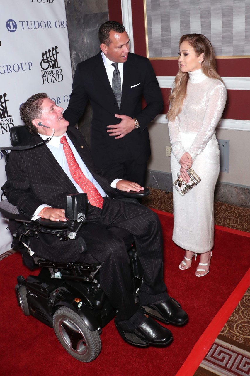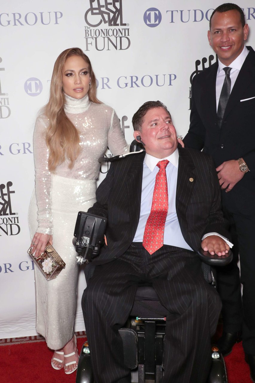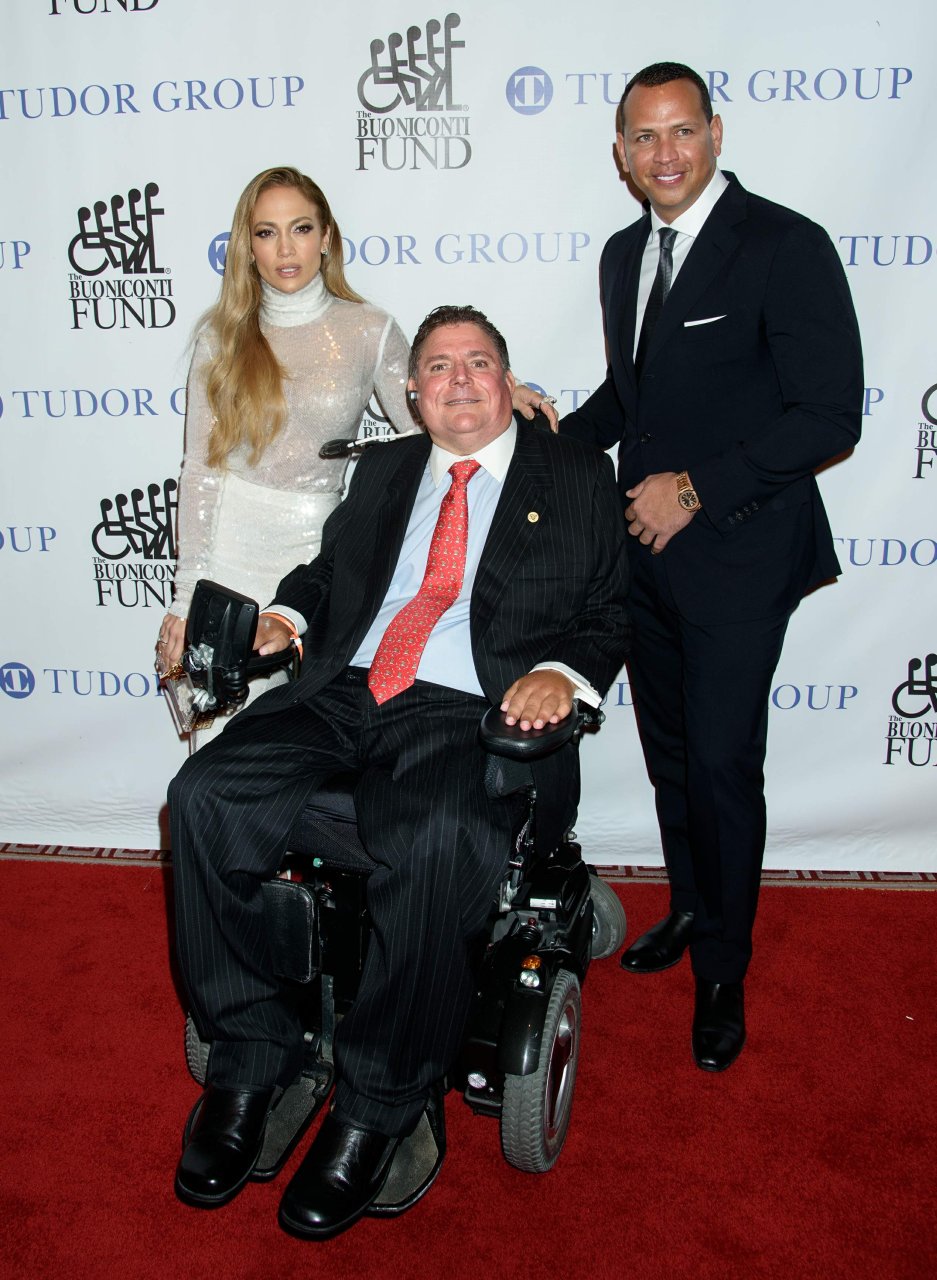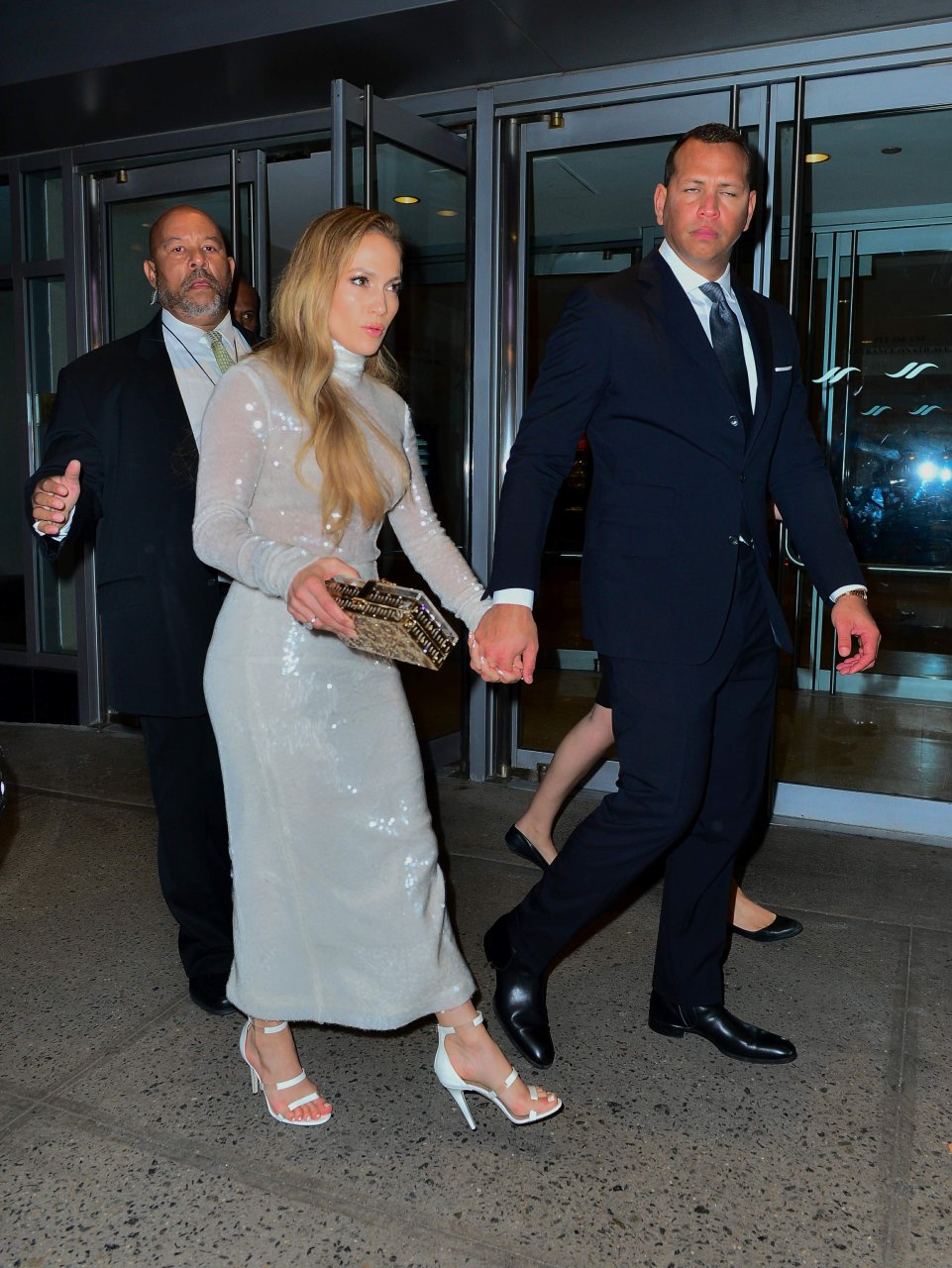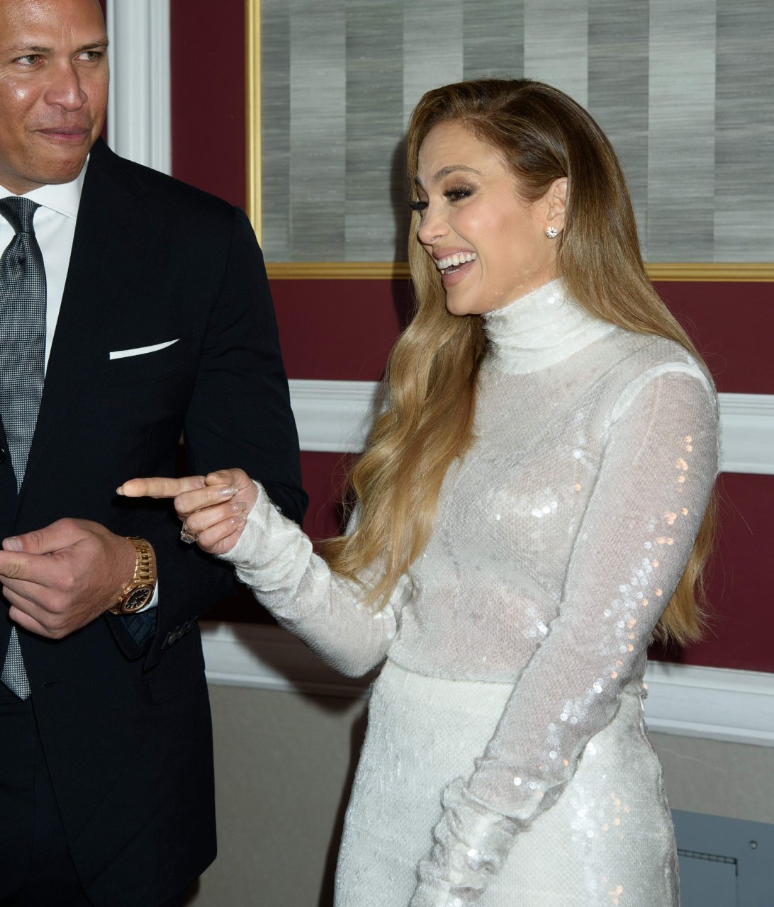 Superestrella Jennifer Lopez (49) posa en la alfombra roja con su novio Alex Rodriguez en la 33ª Cena Anual de Grandes Leyendas del Deporte en la ciudad de Nueva York, 24/09/2018.