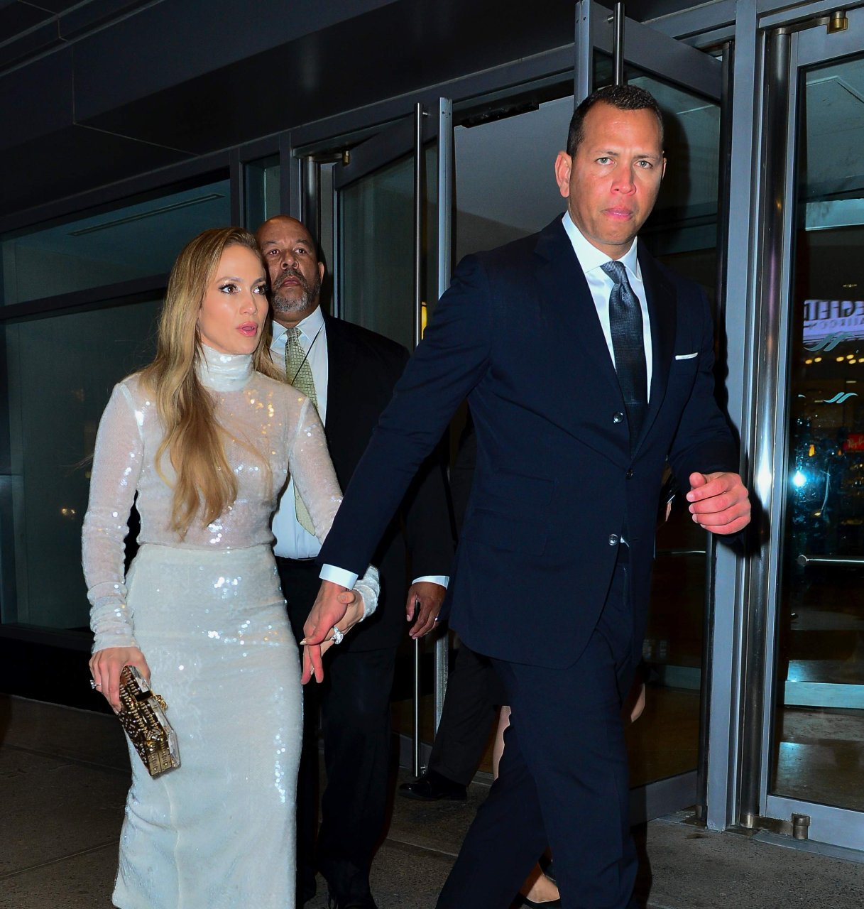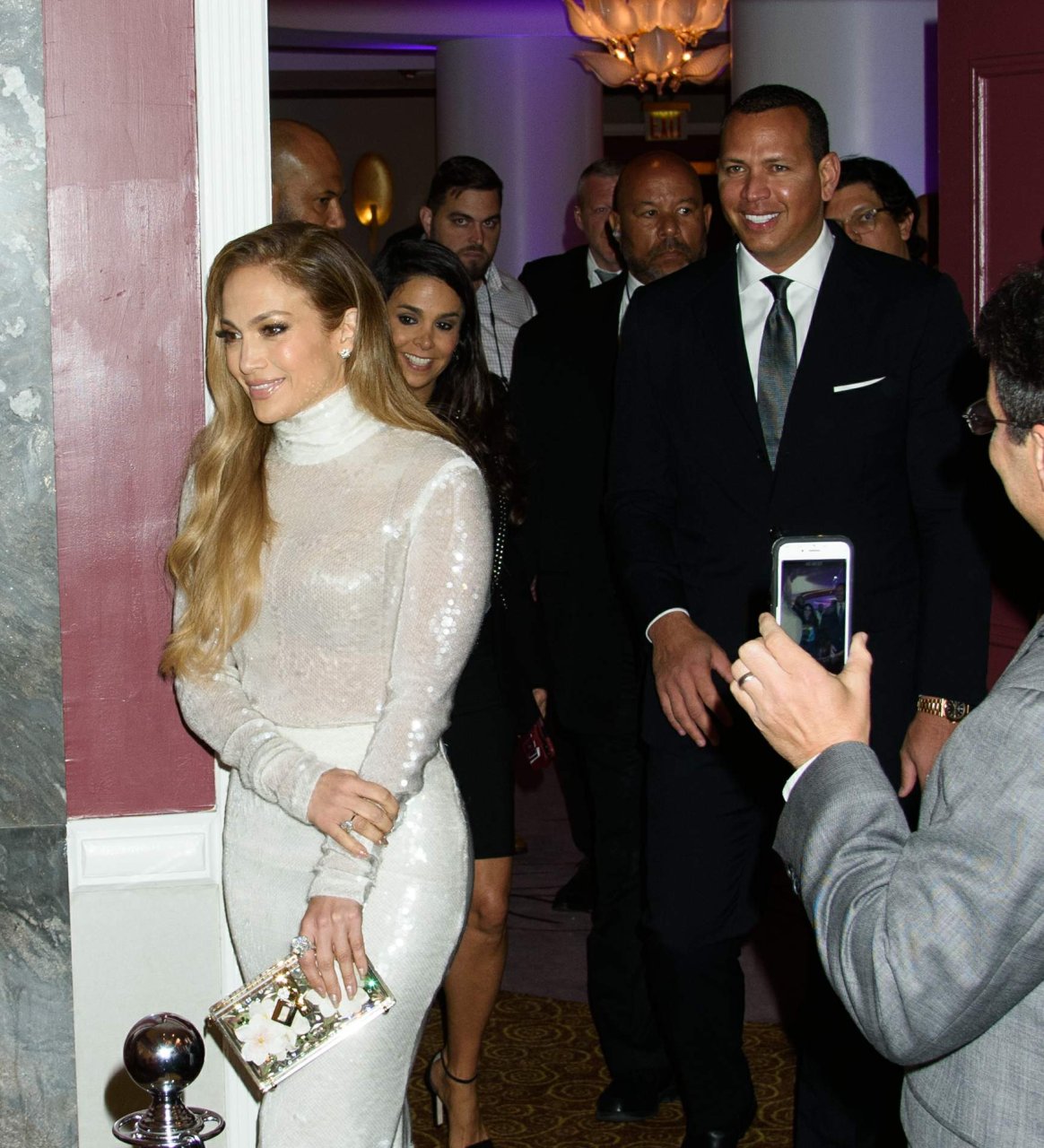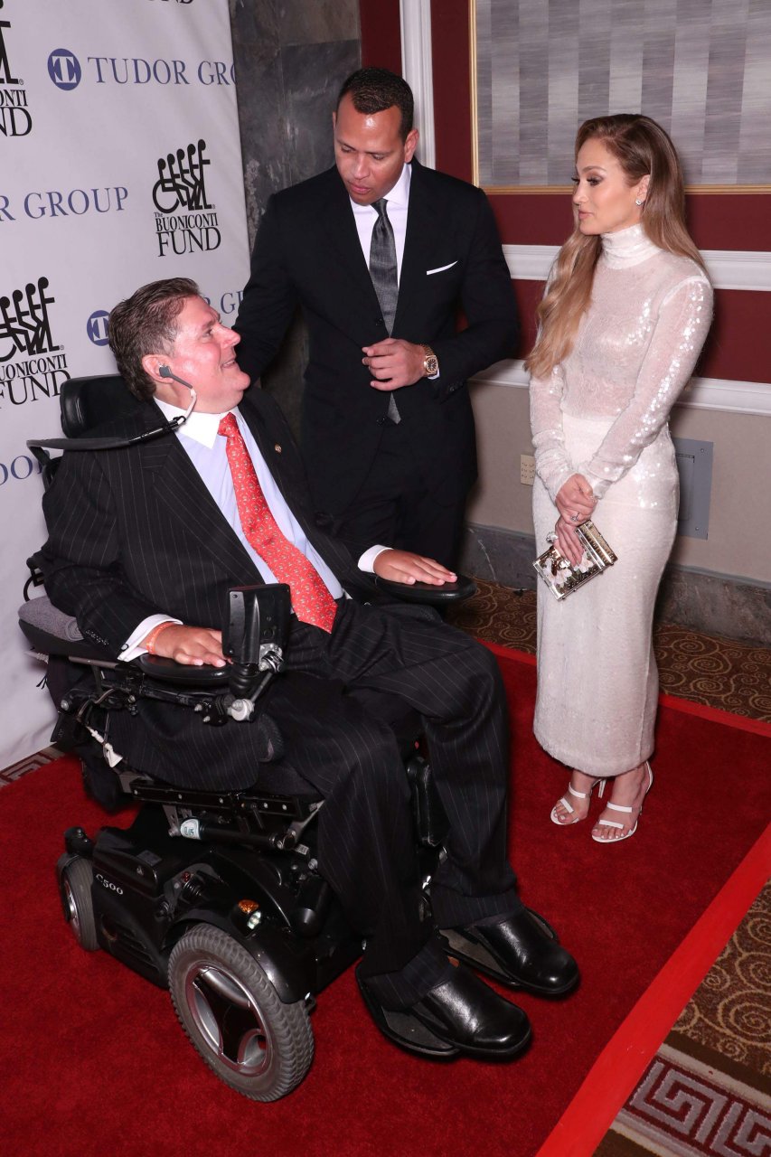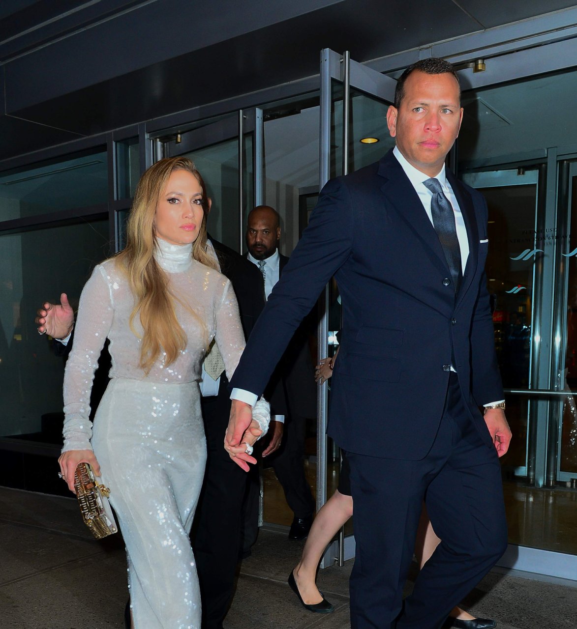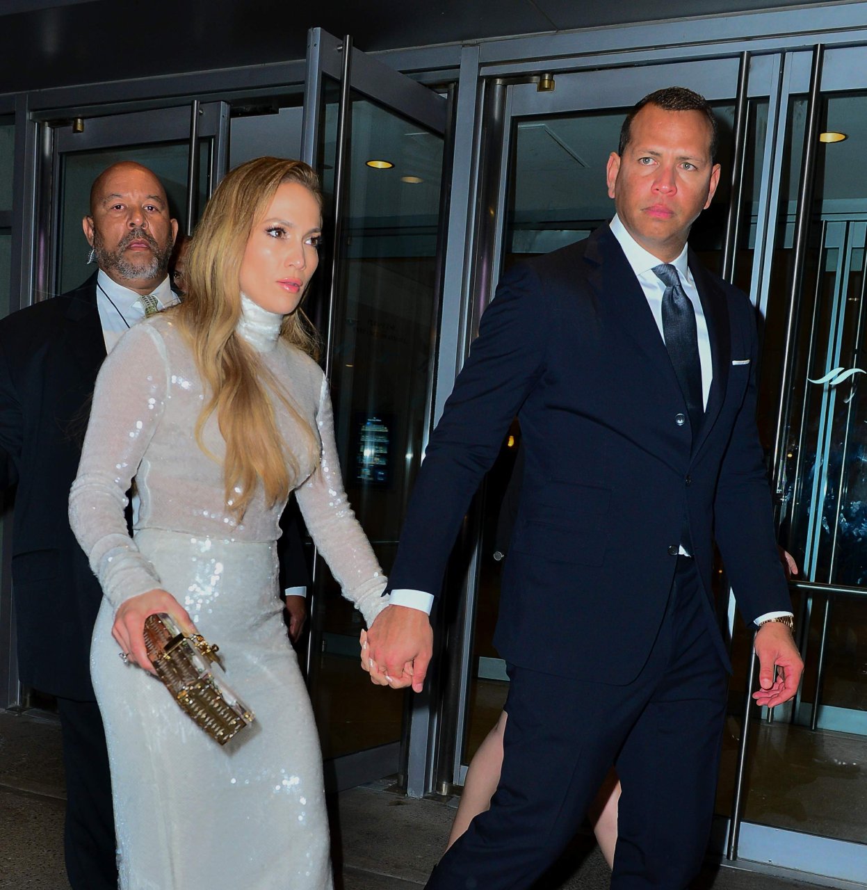 Superestrella Jennifer Lopez (49) posa en la alfombra roja con su novio Alex Rodriguez en la 33ª Cena Anual de Grandes Leyendas del Deporte en la ciudad de Nueva York, 24/09/2018.