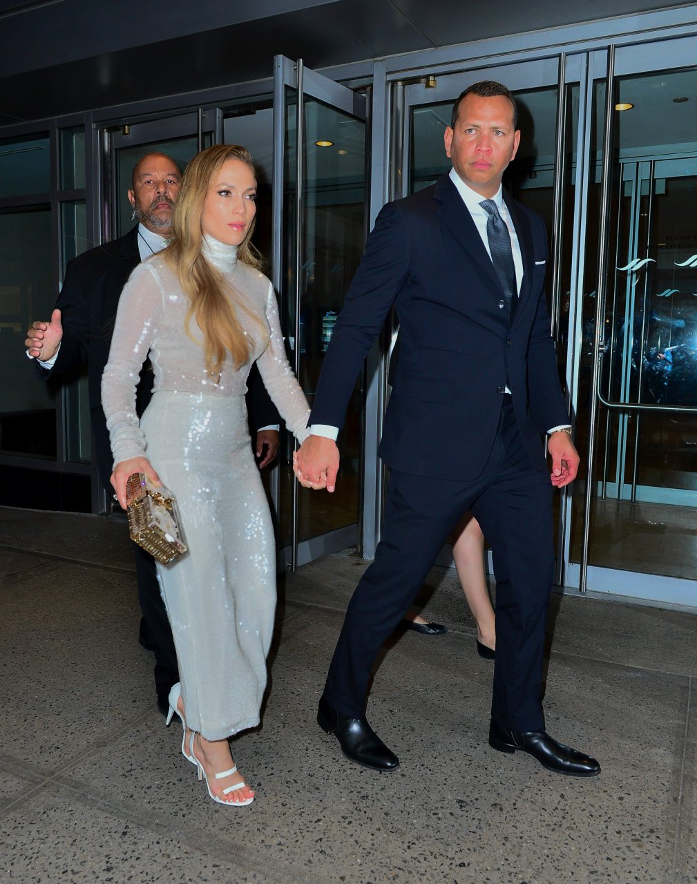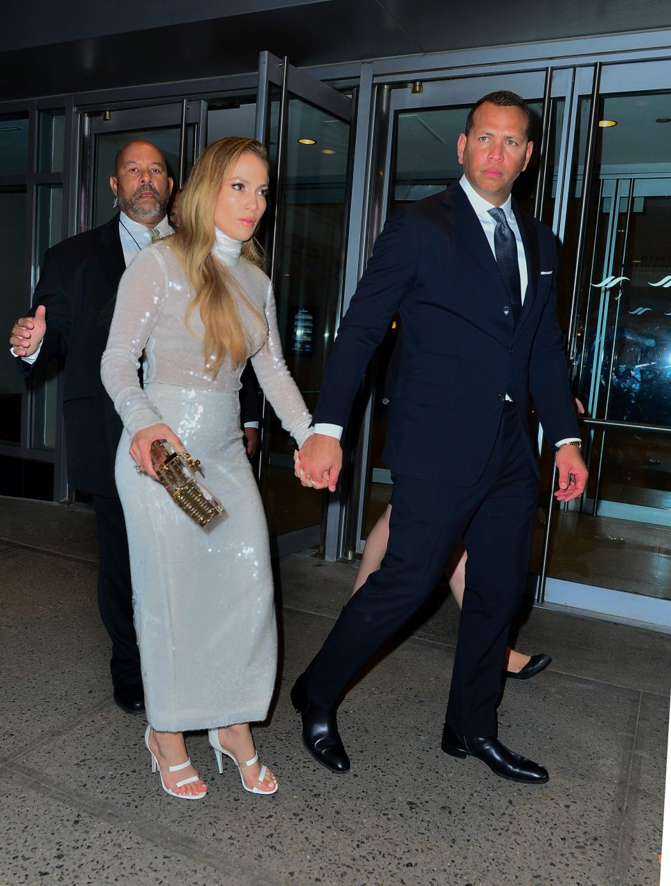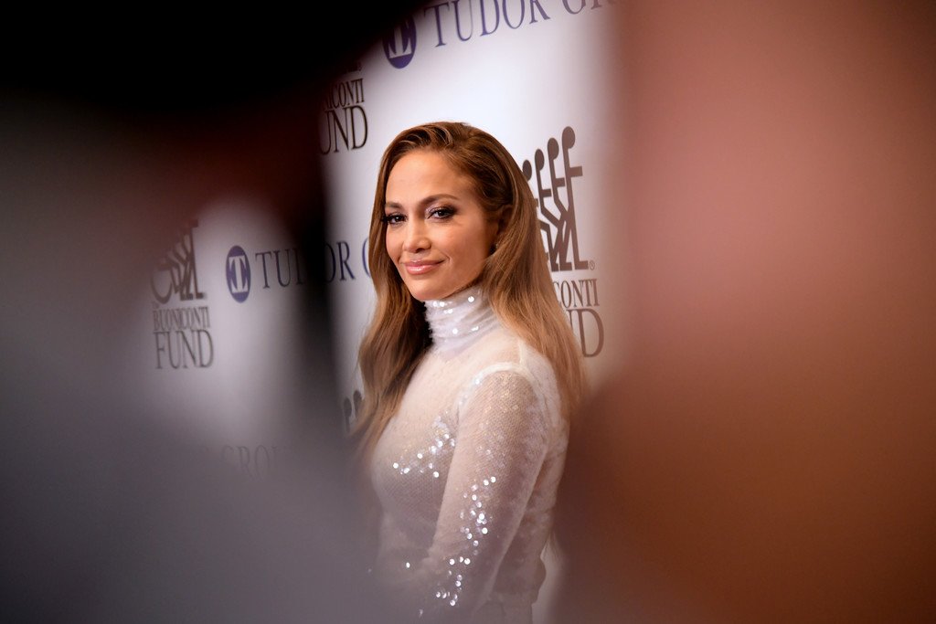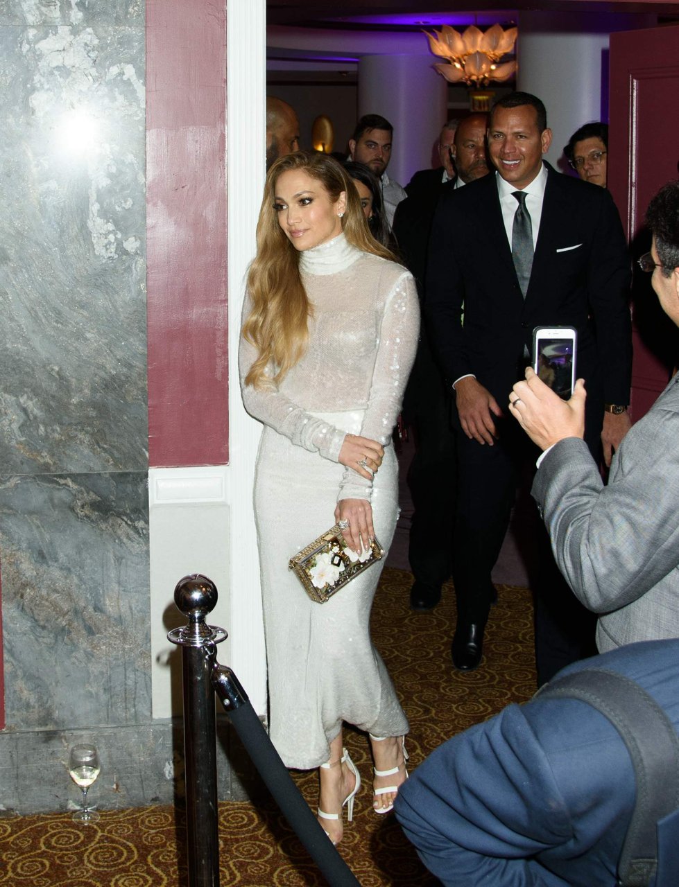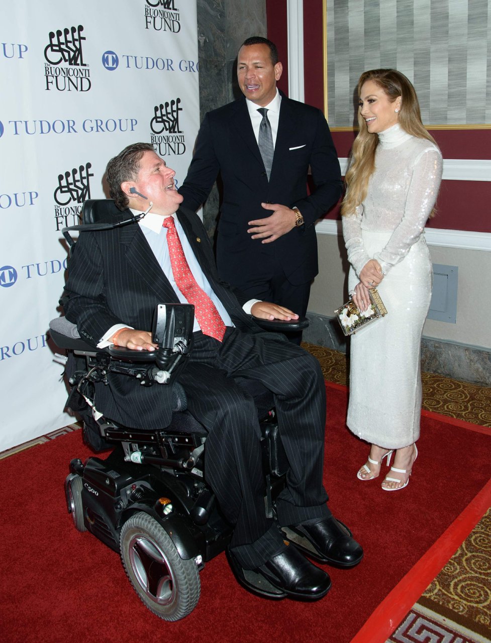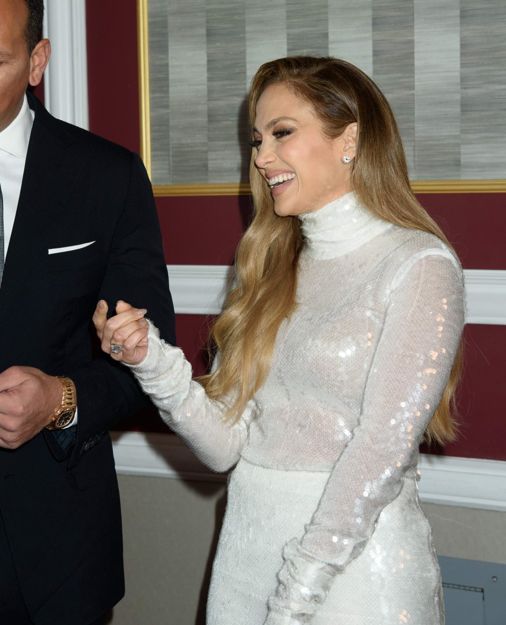 Superestrella Jennifer Lopez (49) posa en la alfombra roja con su novio Alex Rodriguez en la 33ª Cena Anual de Grandes Leyendas del Deporte en la ciudad de Nueva York, 24/09/2018.