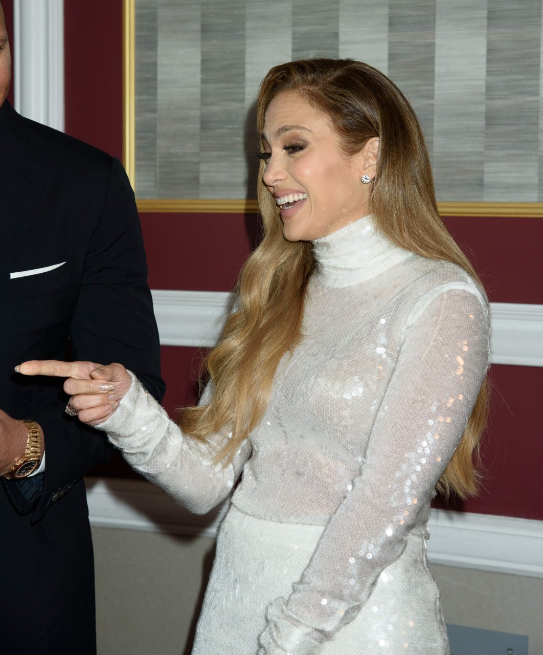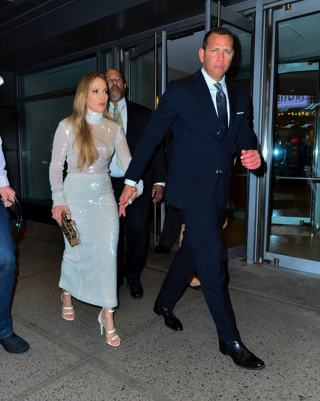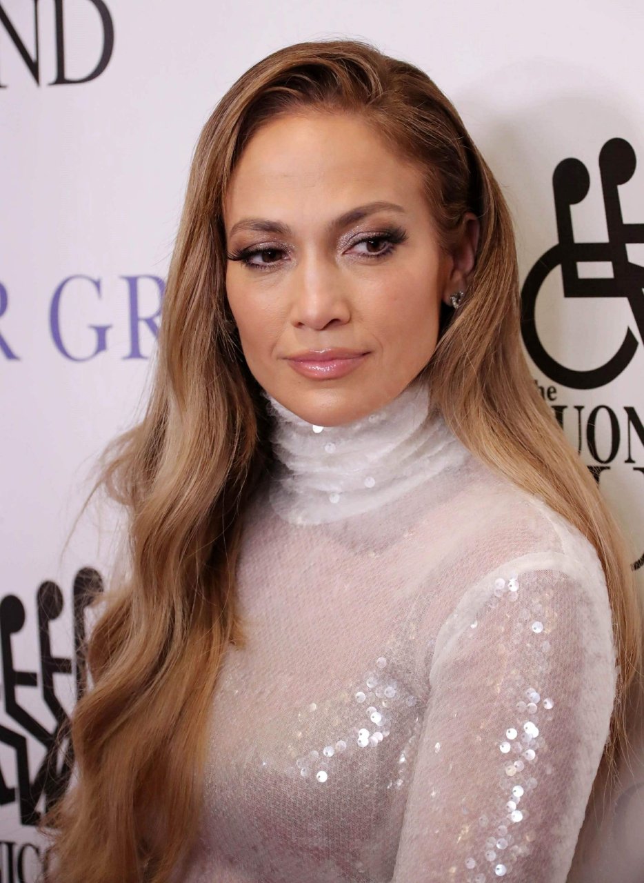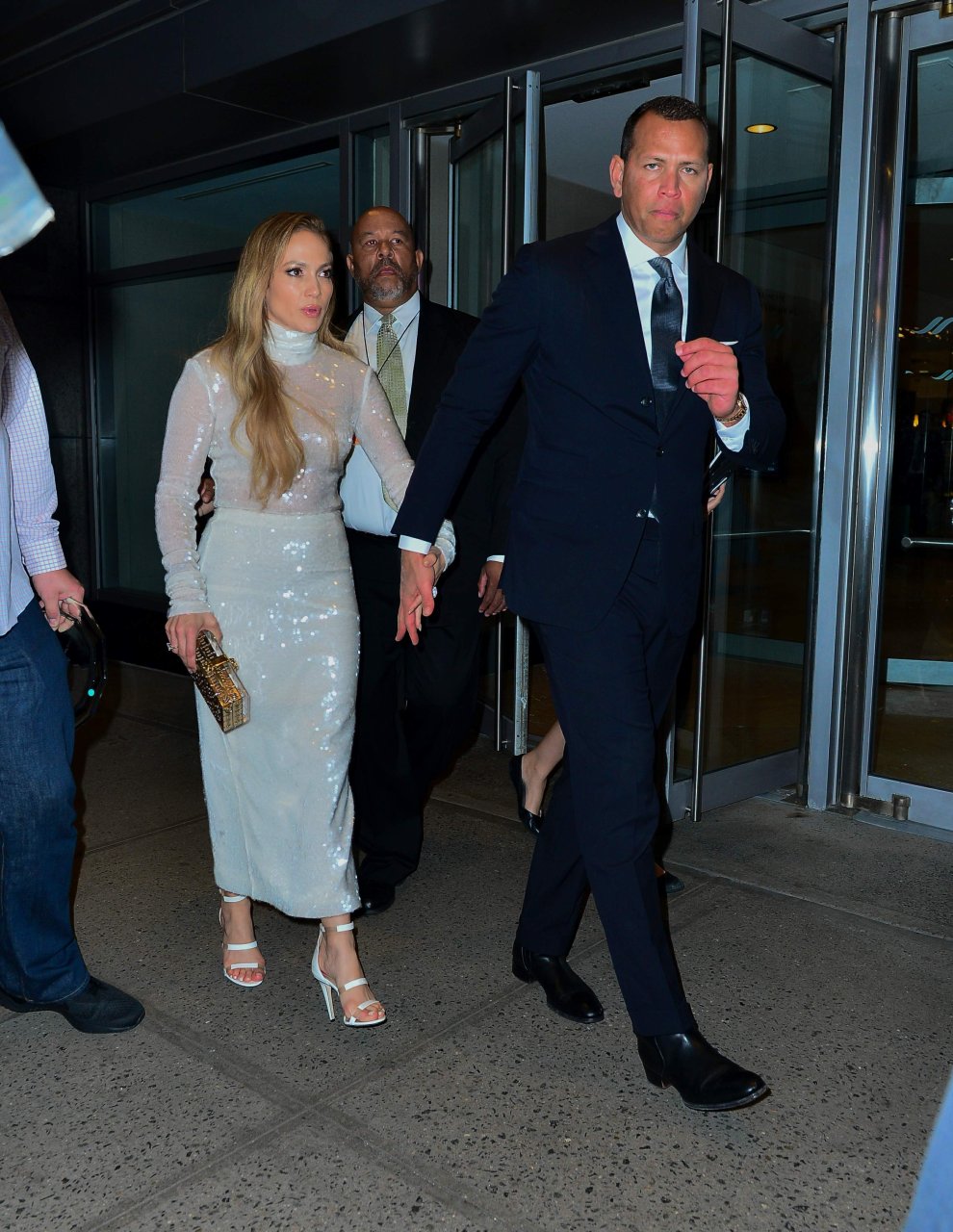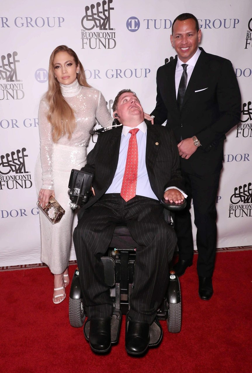 Superestrella Jennifer Lopez (49) posa en la alfombra roja con su novio Alex Rodriguez en la 33ª Cena Anual de Grandes Leyendas del Deporte en la ciudad de Nueva York, 24/09/2018.