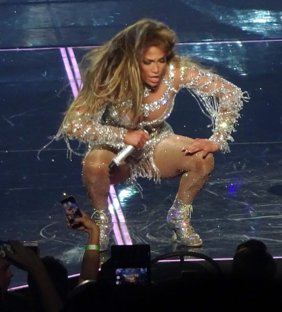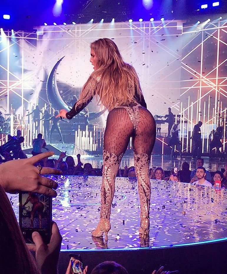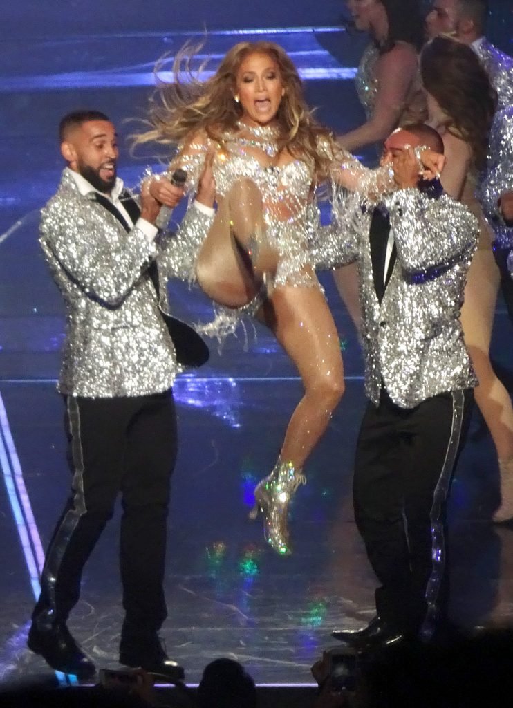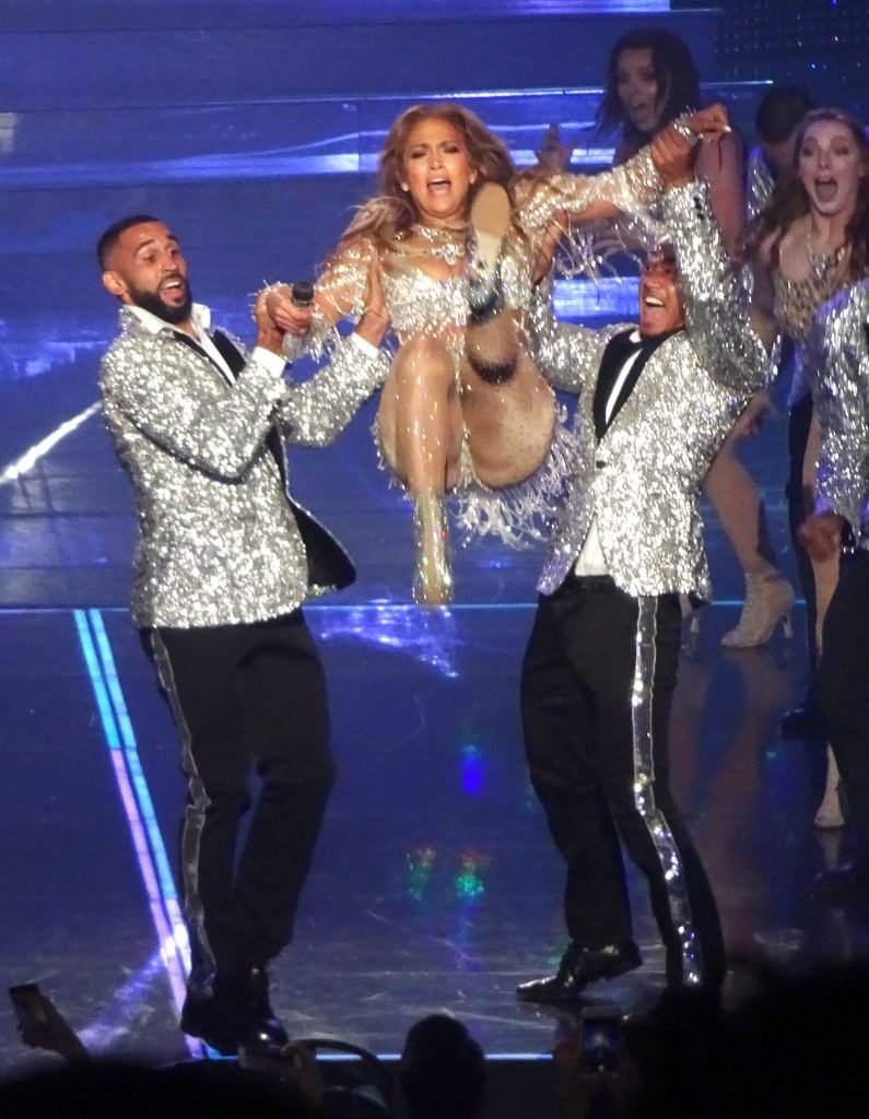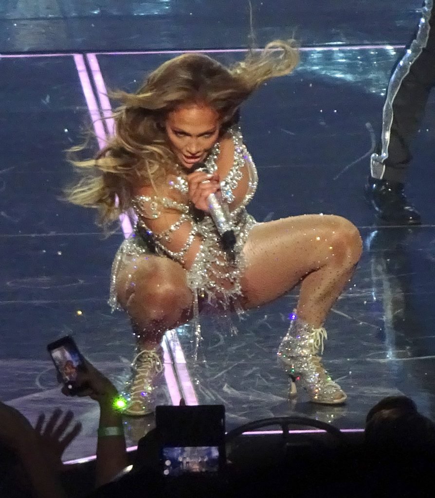 Singer Jennifer Lopez, 48, muestra su flexibilidad en el escenario en Las Vegas, 07/09/2017.