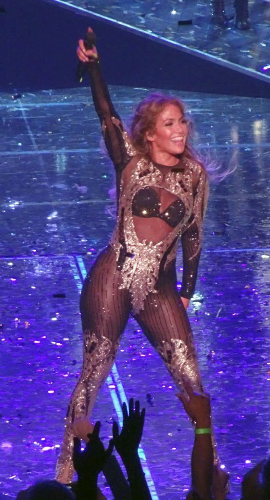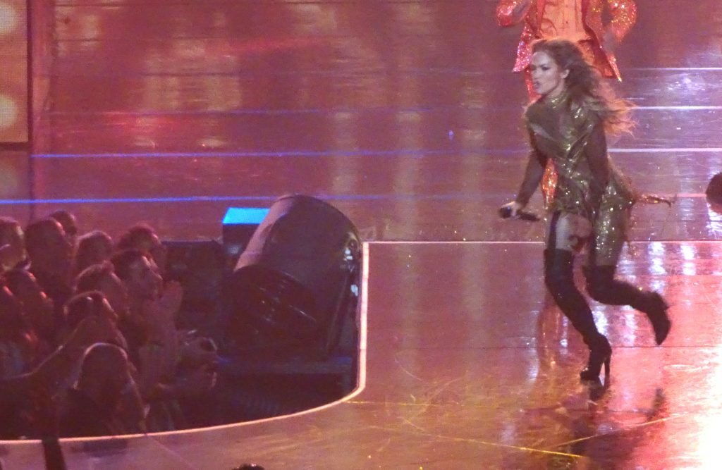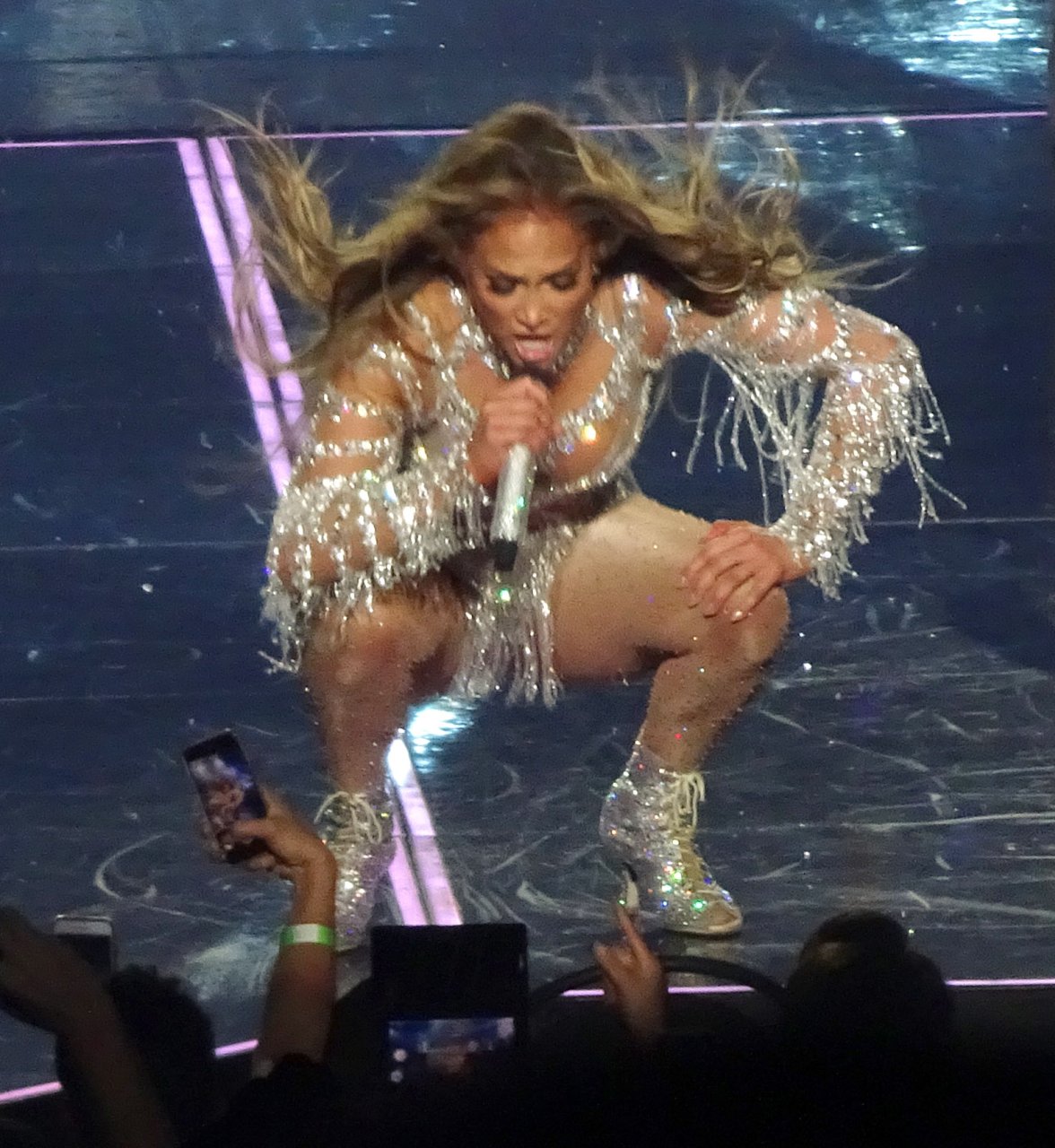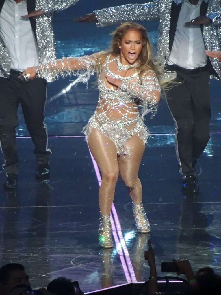 Singer Jennifer Lopez, 48, muestra su flexibilidad en el escenario en Las Vegas, 07/09/2017.