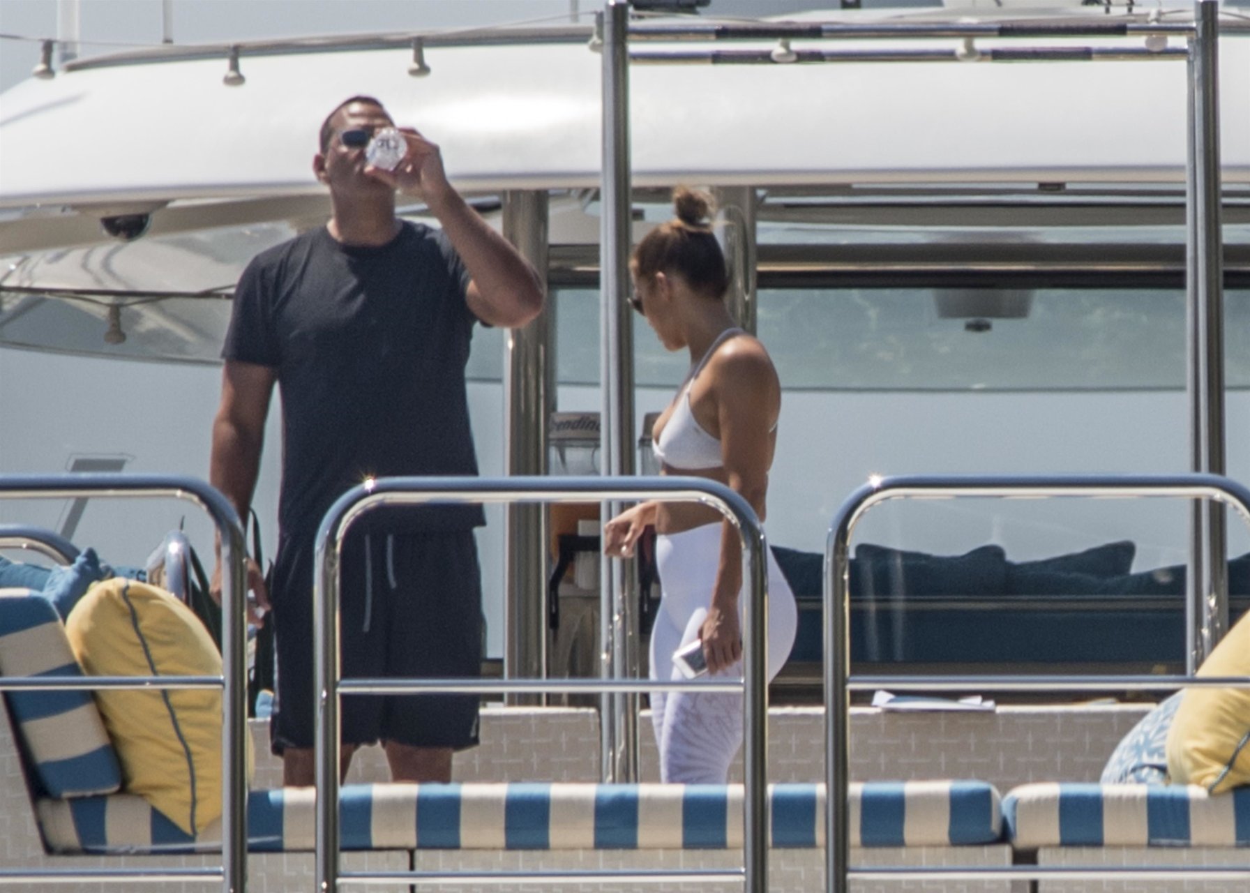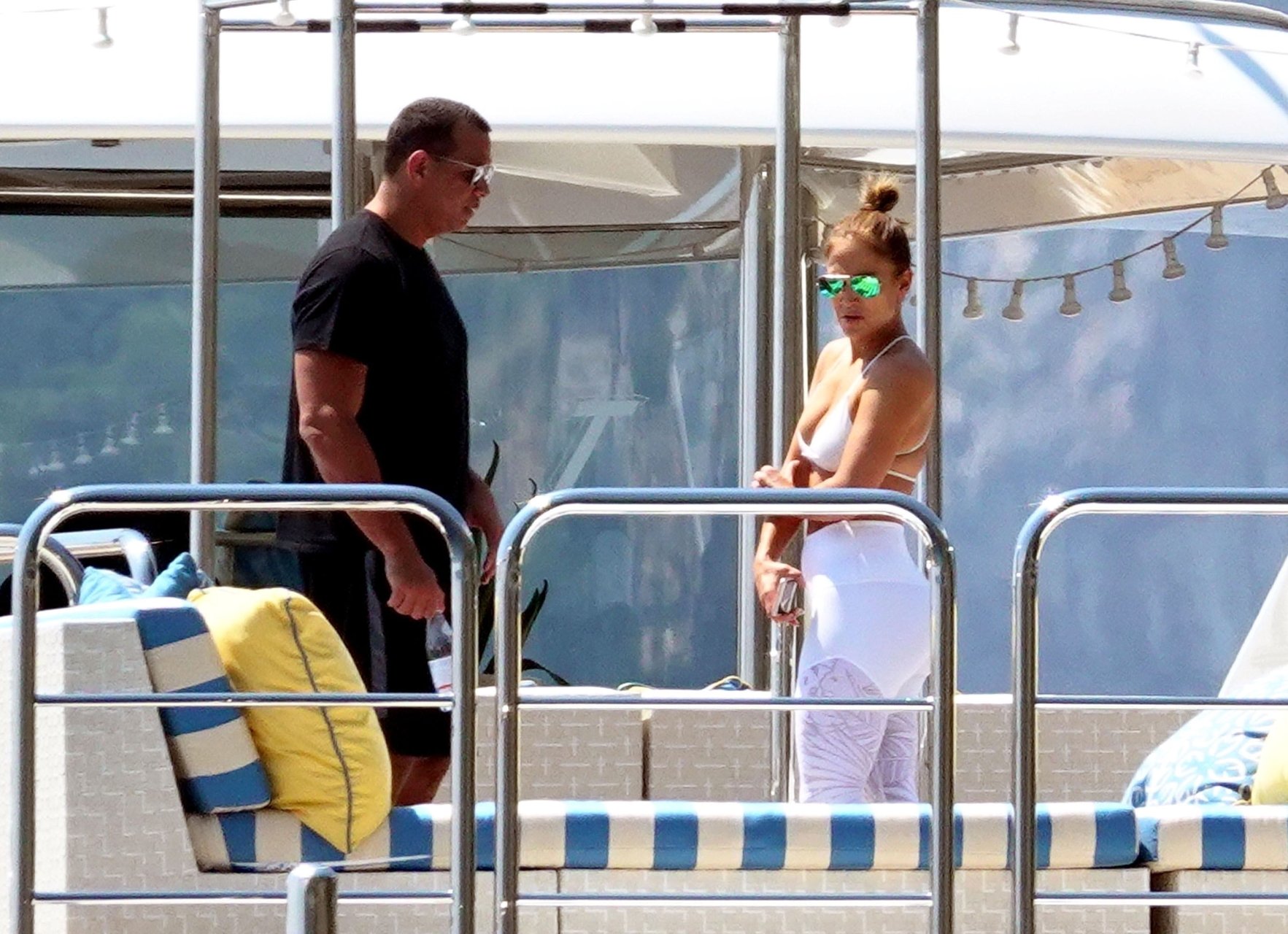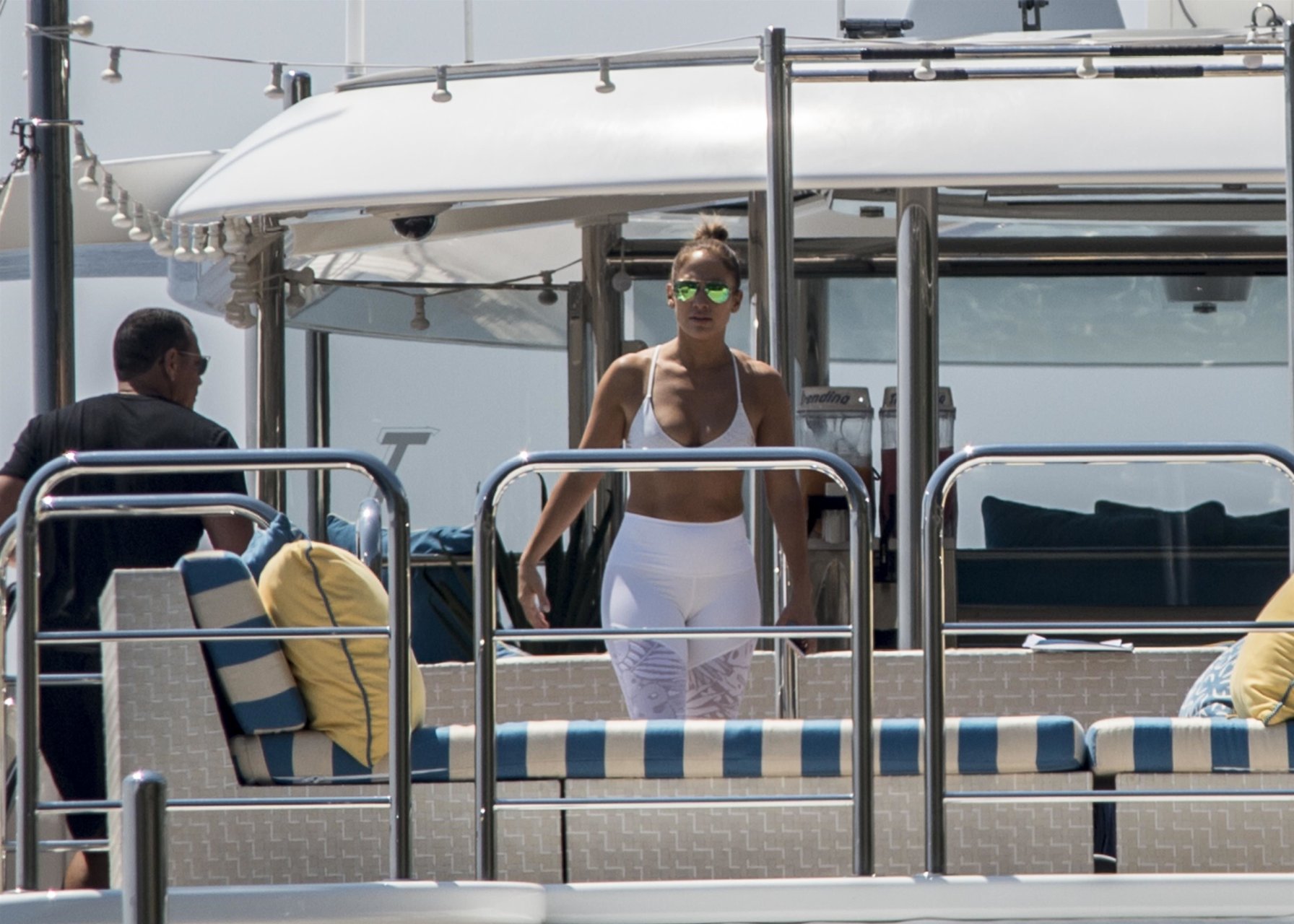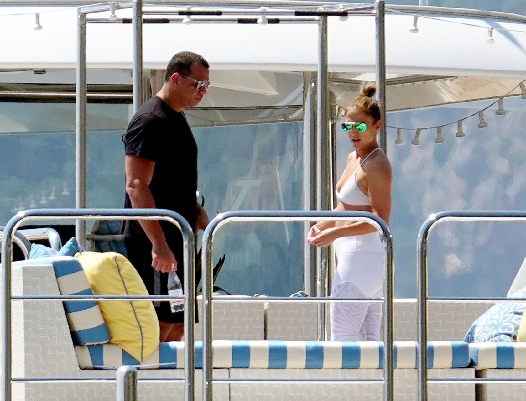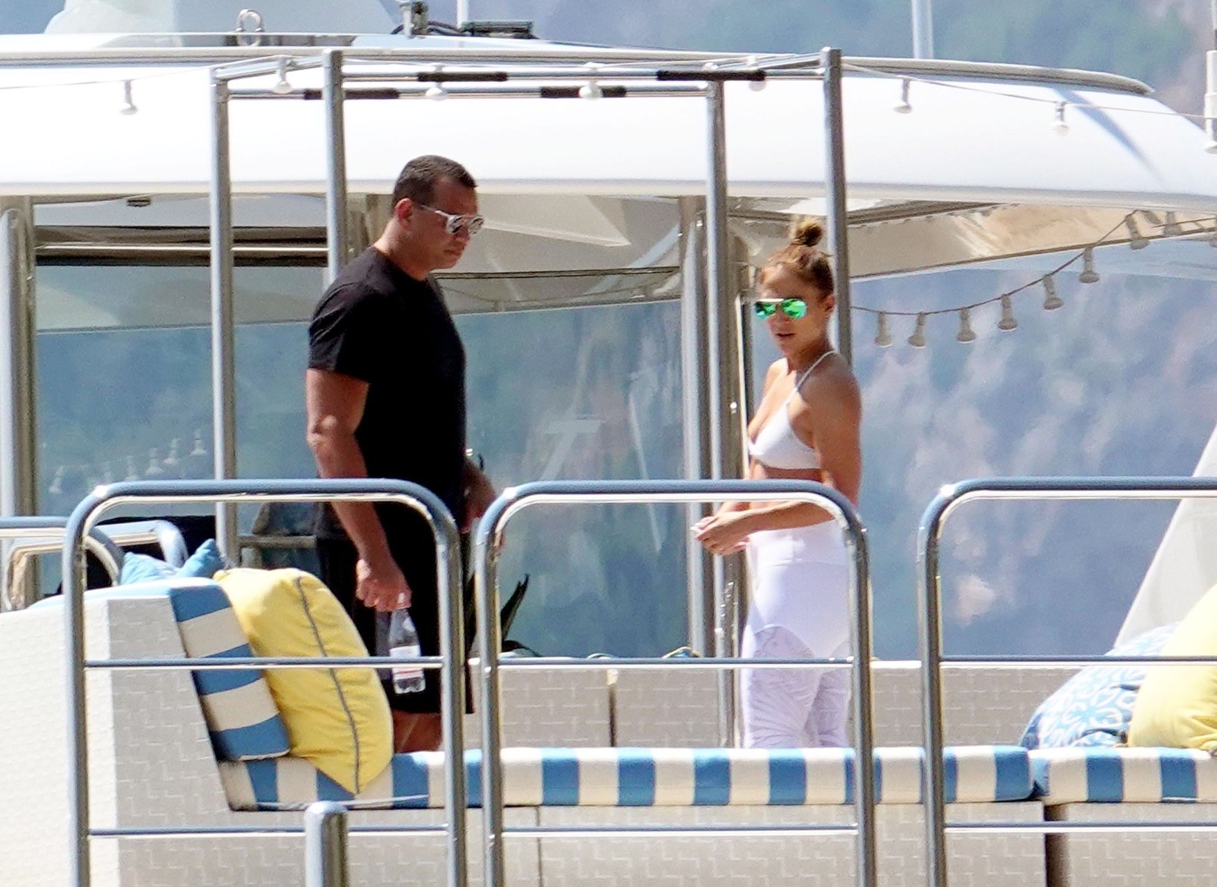 JLo fue vista con su novio, Alex Rodriguez, en su yate de lujo junto con el productor musical y manager de Jennifer, Benny Medina. El grupo está de vacaciones en su yate de lujo en Positano, 08/07/2018.
