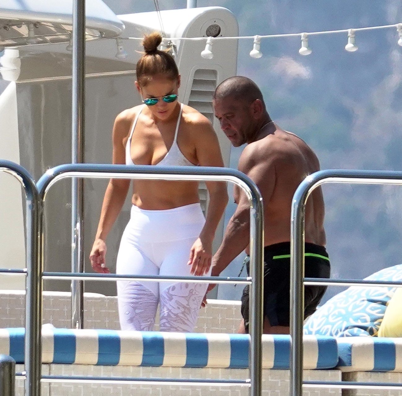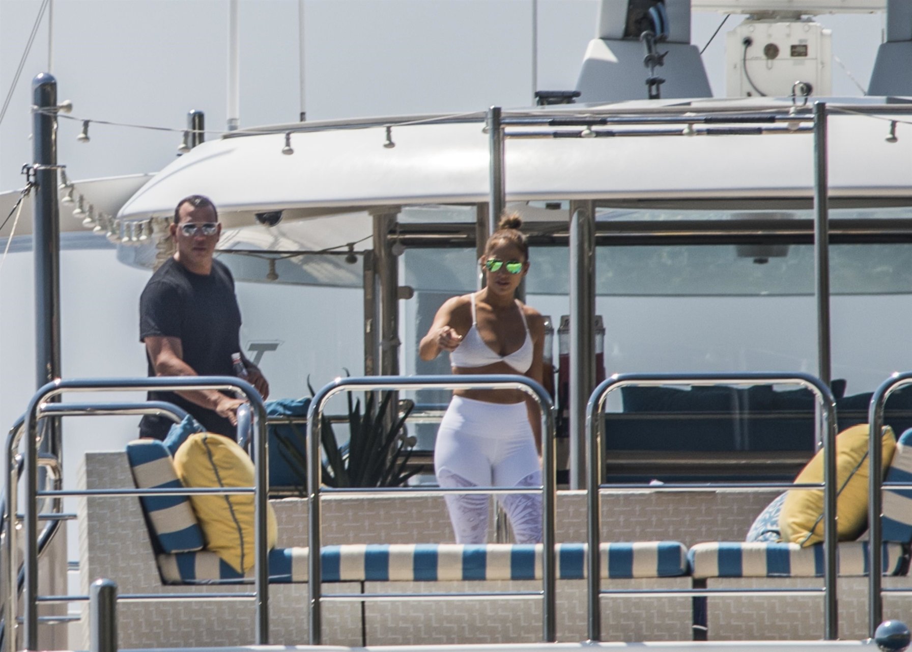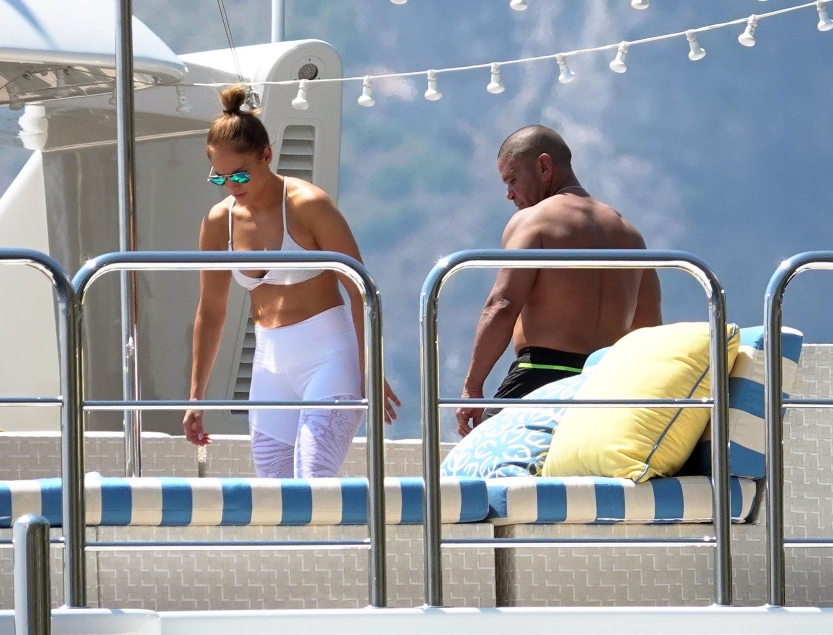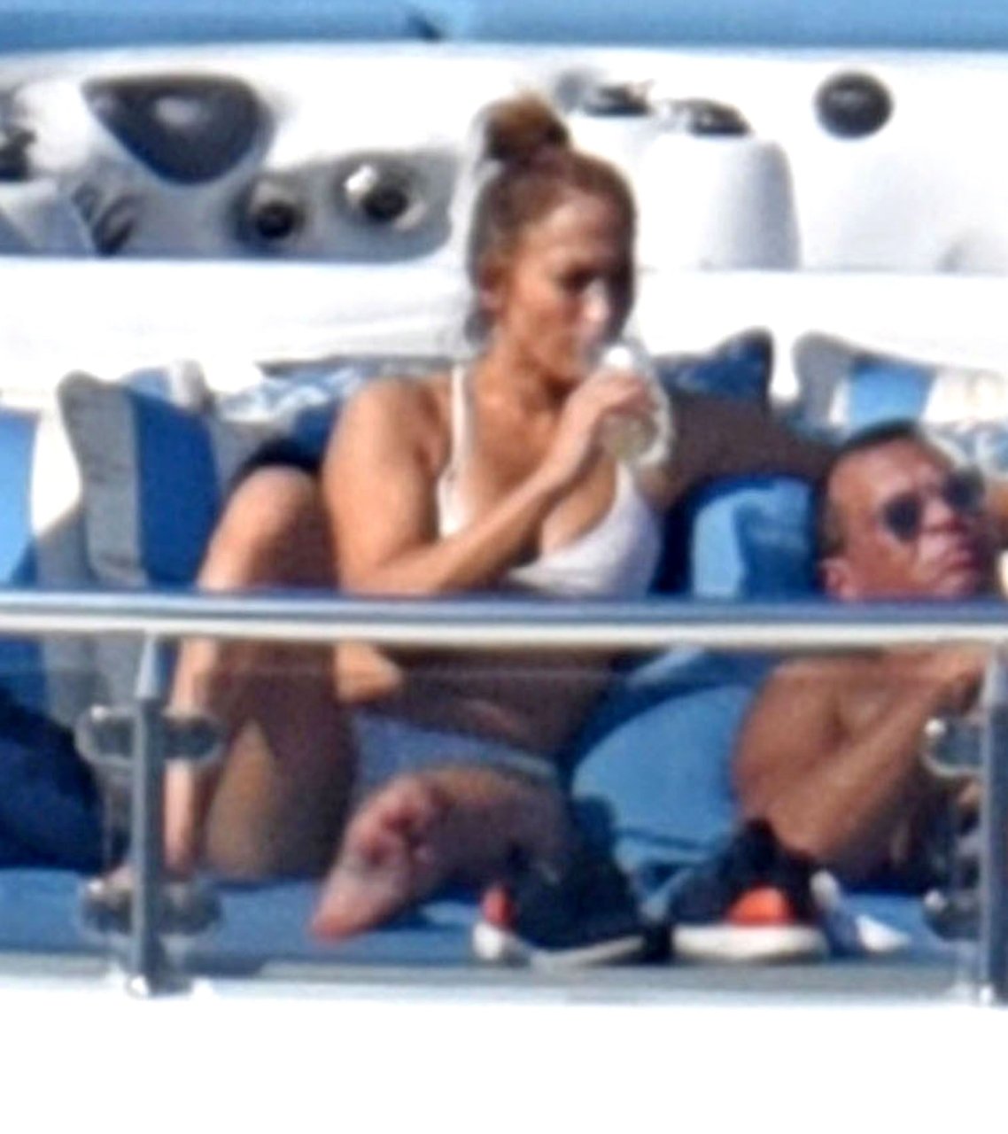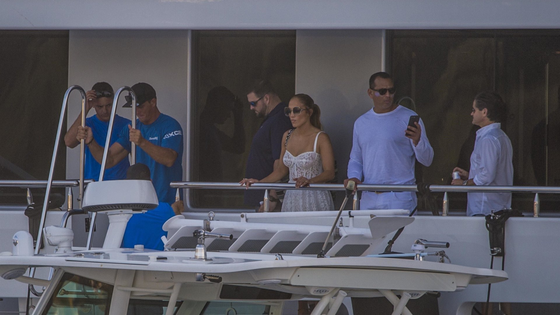 JLo fue vista con su novio, Alex Rodriguez, en su yate de lujo junto con el productor musical y manager de Jennifer, Benny Medina. El grupo está de vacaciones en su yate de lujo en Positano, 08/07/2018.