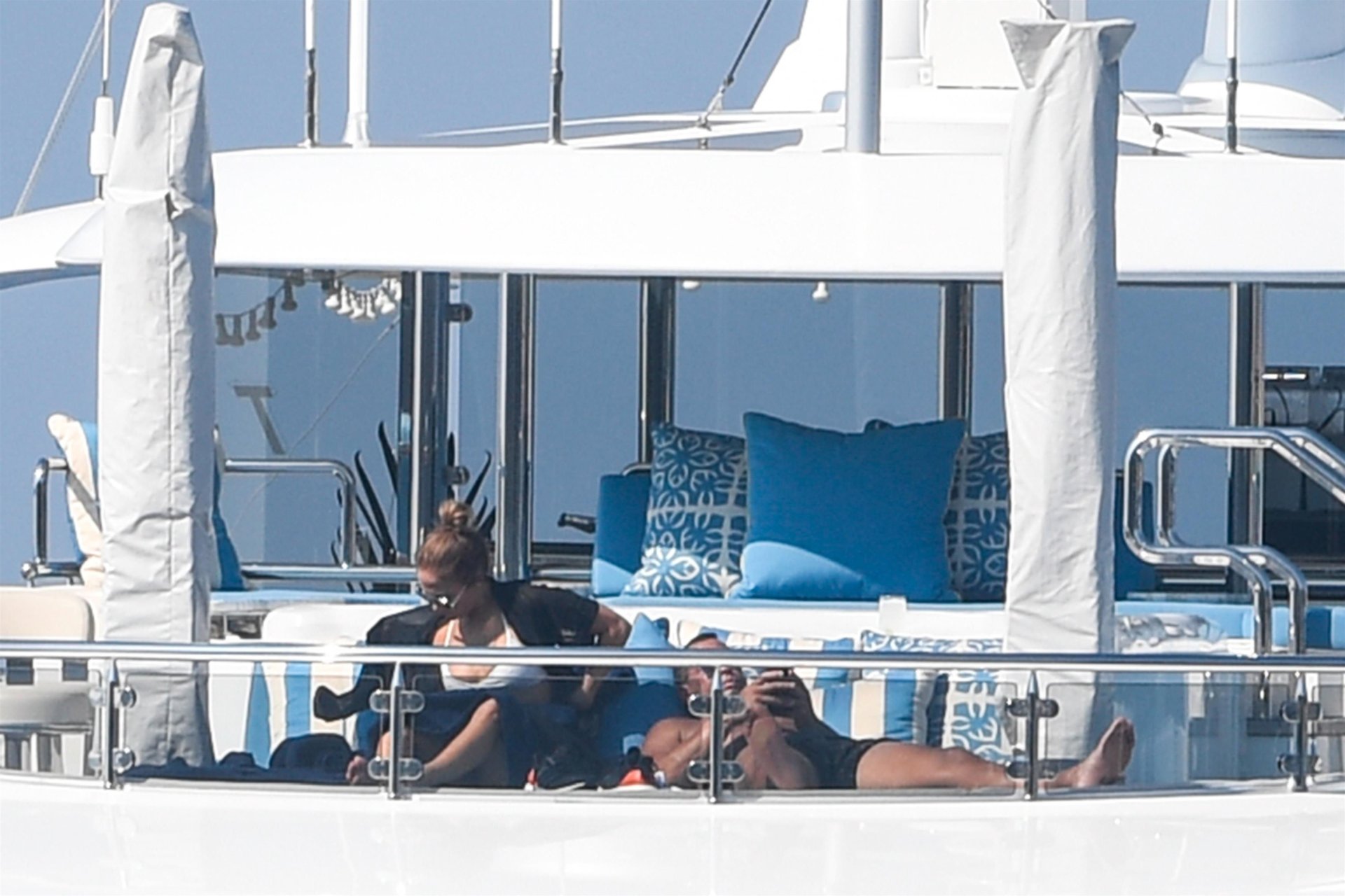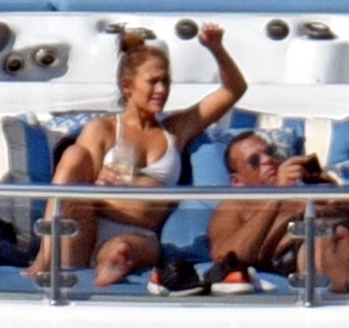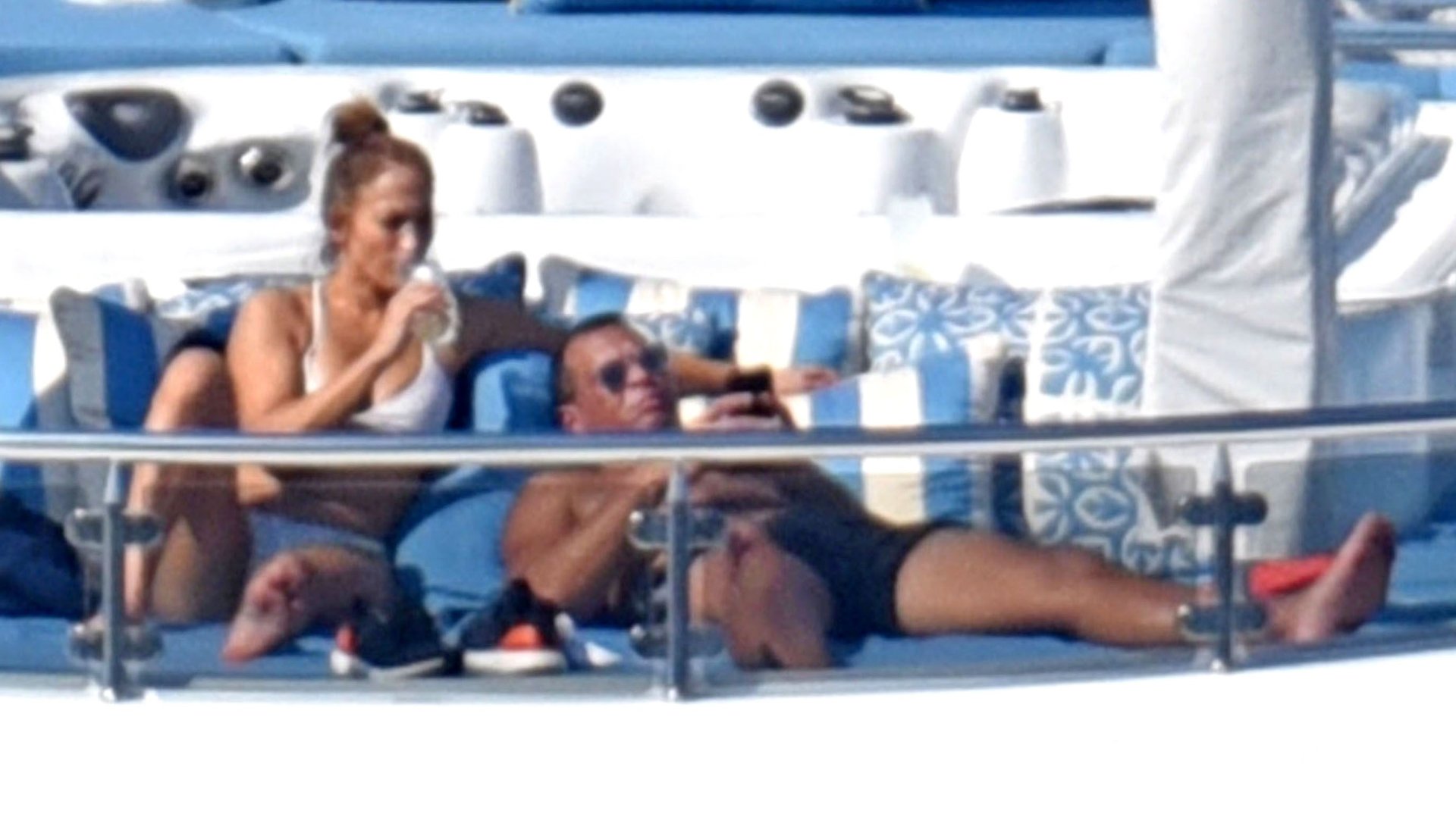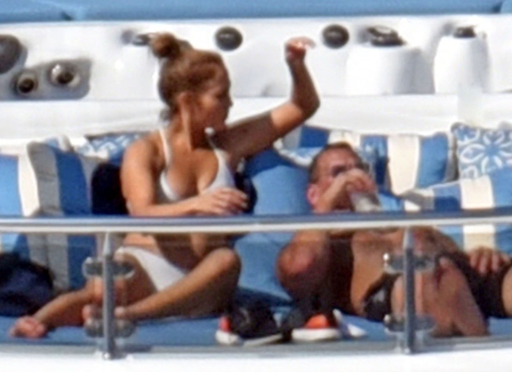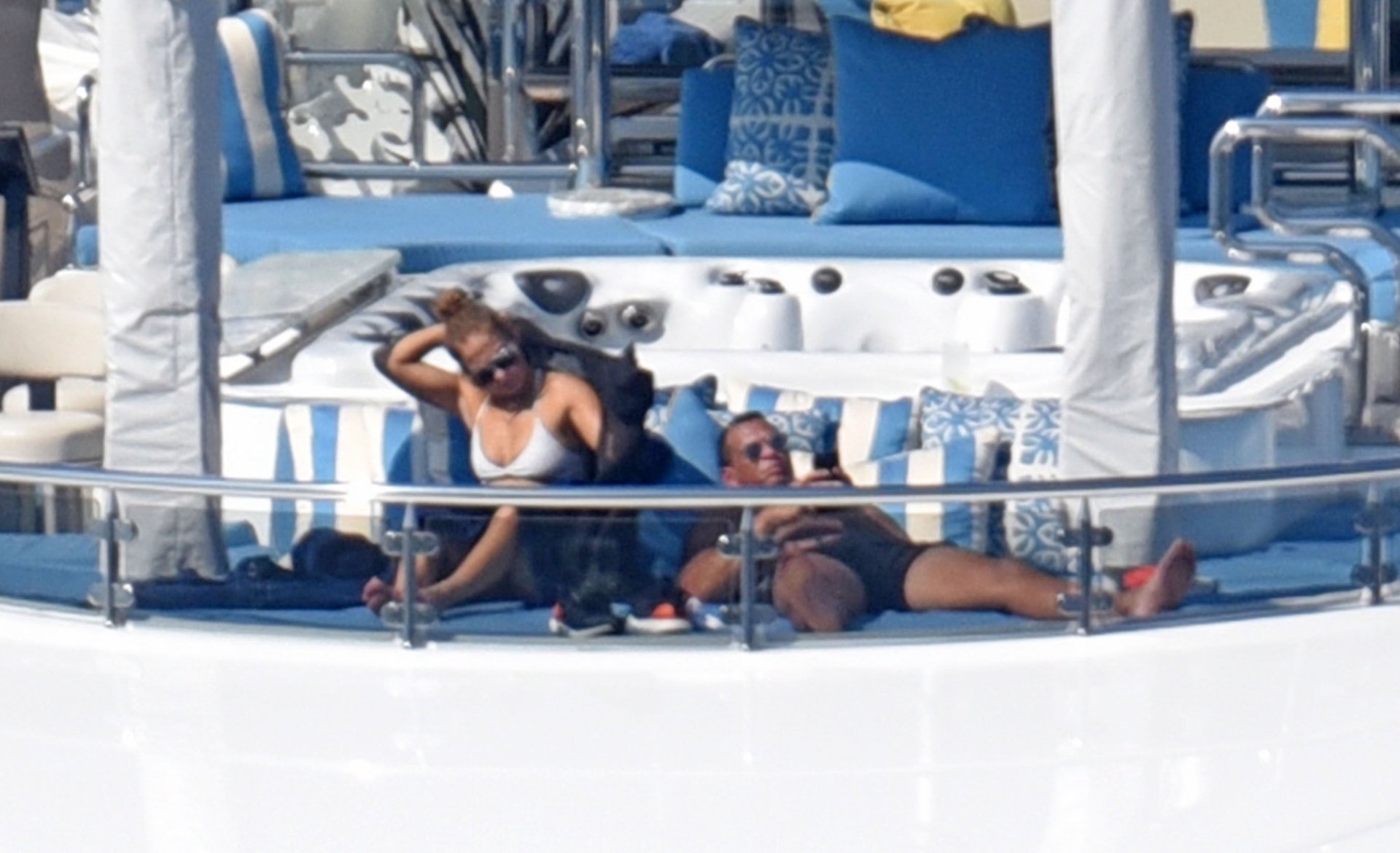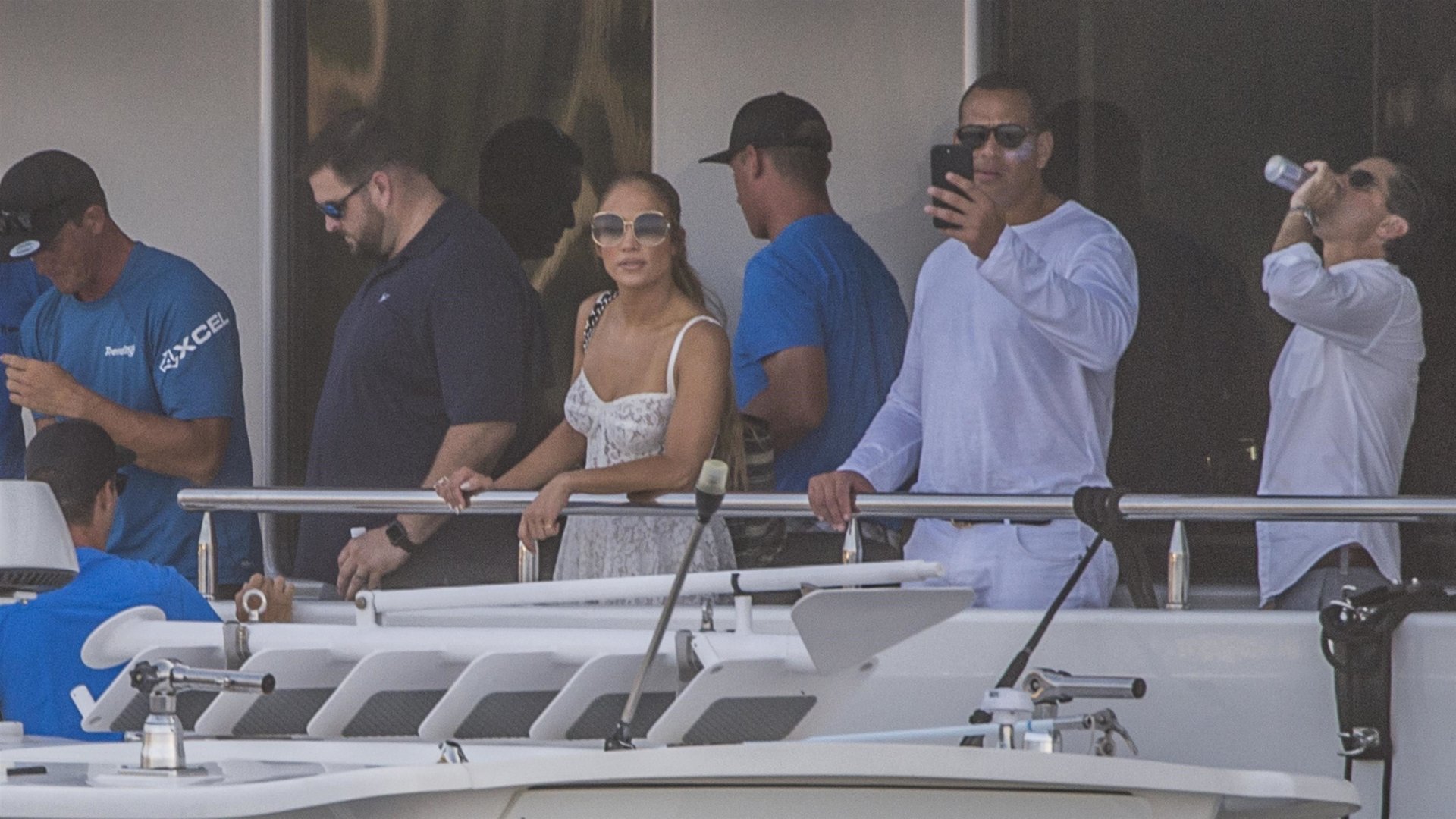 JLo fue vista con su novio, Alex Rodriguez, en su yate de lujo junto con el productor musical y manager de Jennifer, Benny Medina. El grupo está de vacaciones en su yate de lujo en Positano, 08/07/2018.