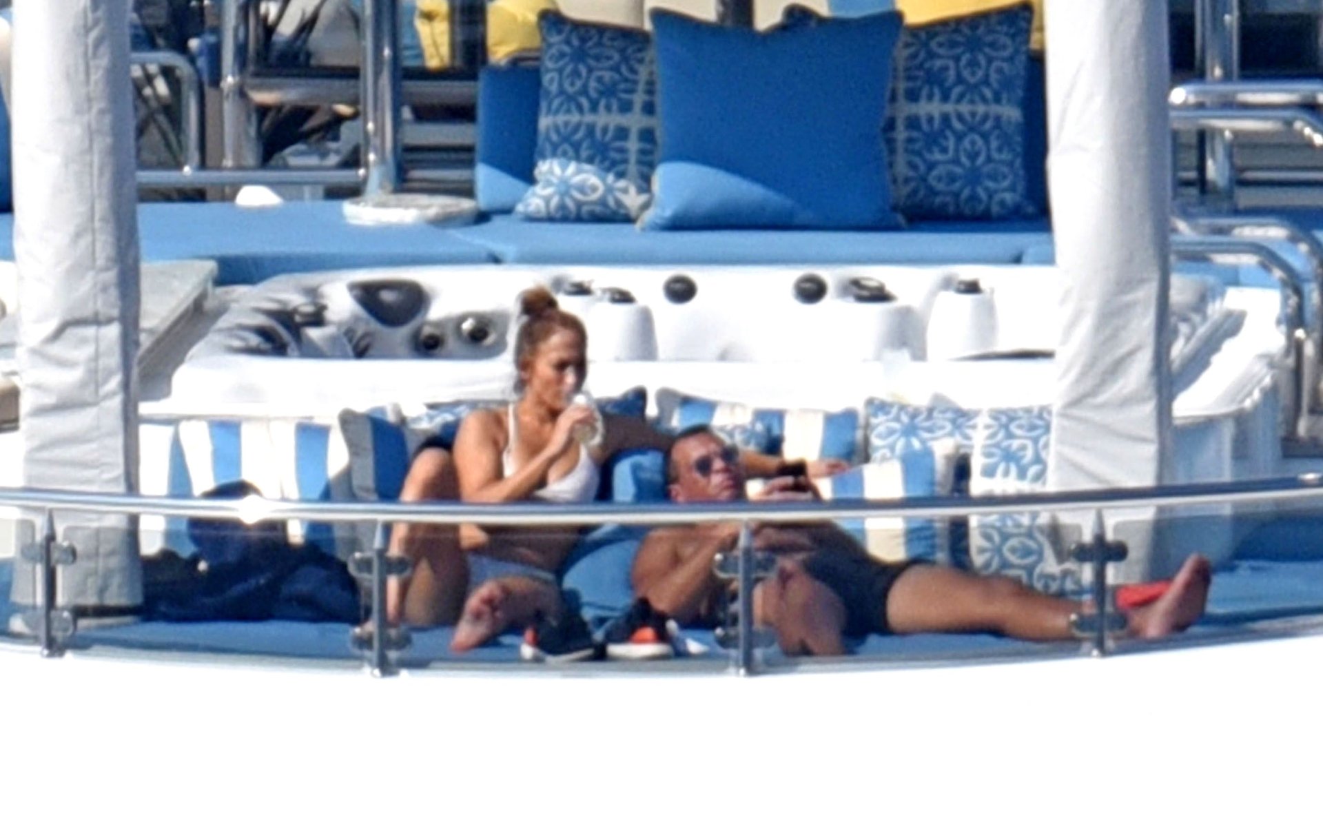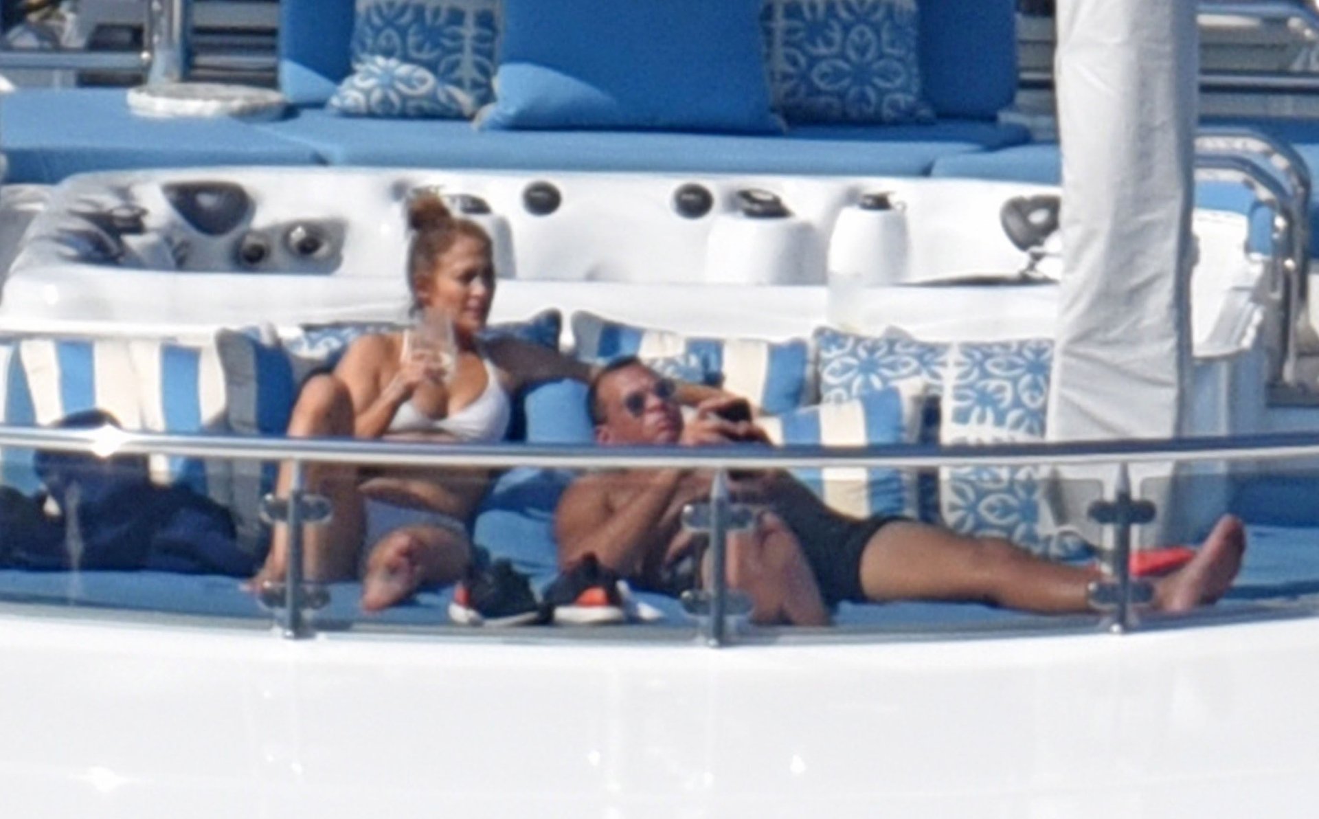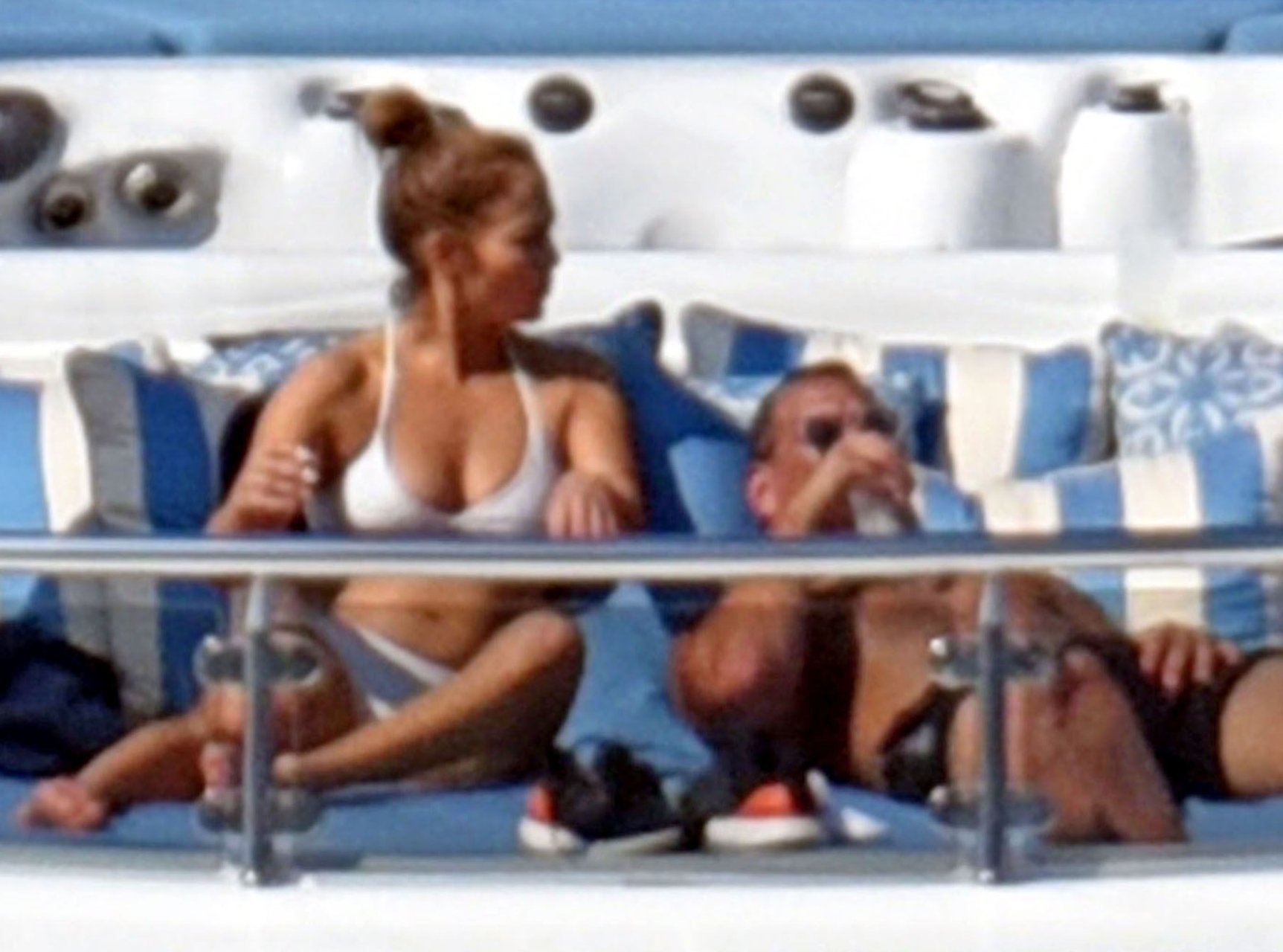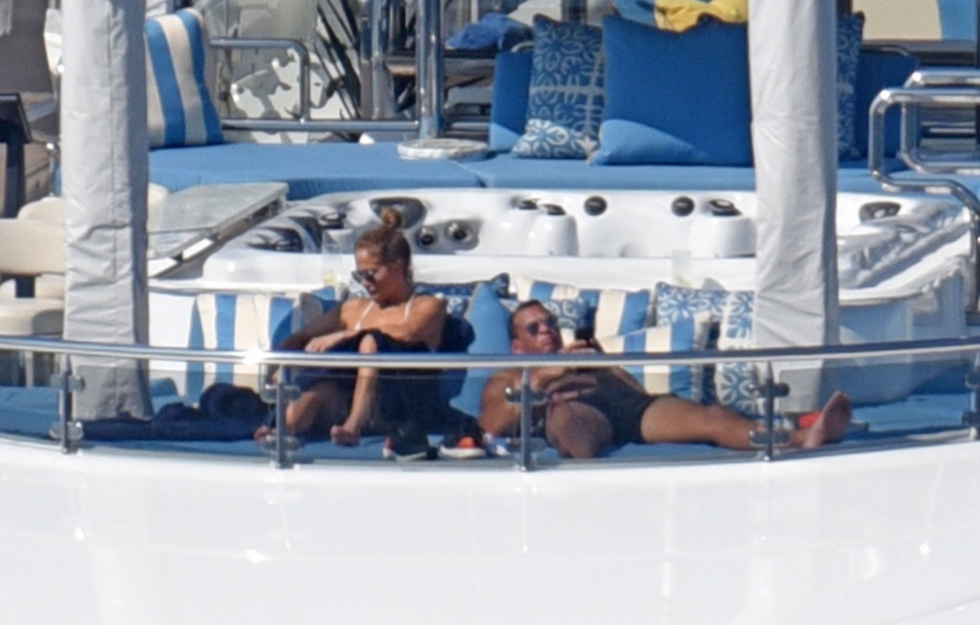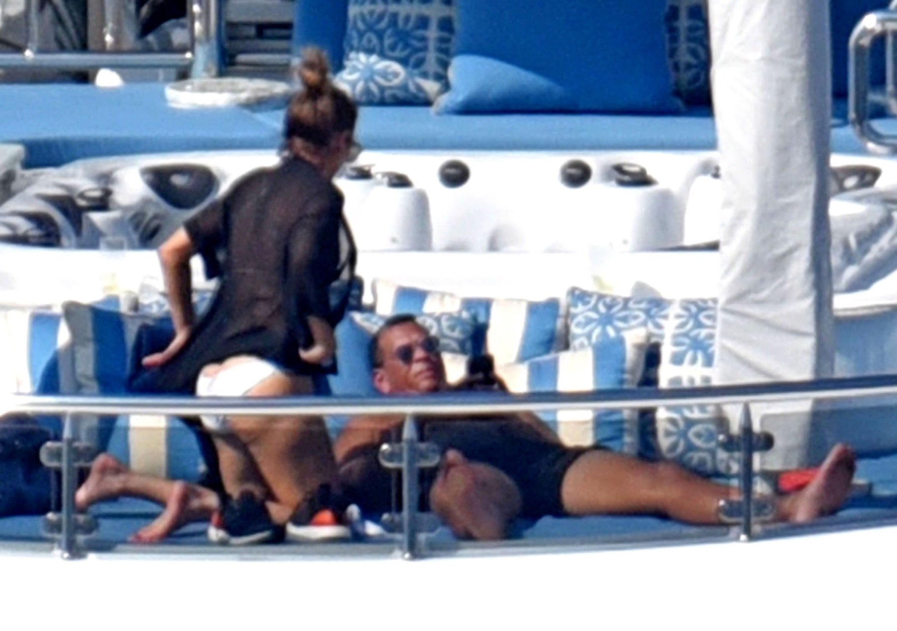 JLo fue vista con su novio, Alex Rodriguez, en su yate de lujo junto con el productor musical y manager de Jennifer, Benny Medina. El grupo está de vacaciones en su yate de lujo en Positano, 08/07/2018.