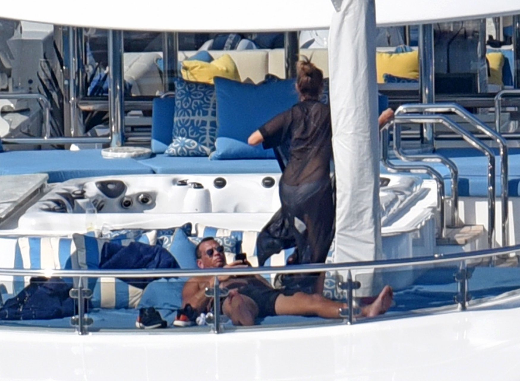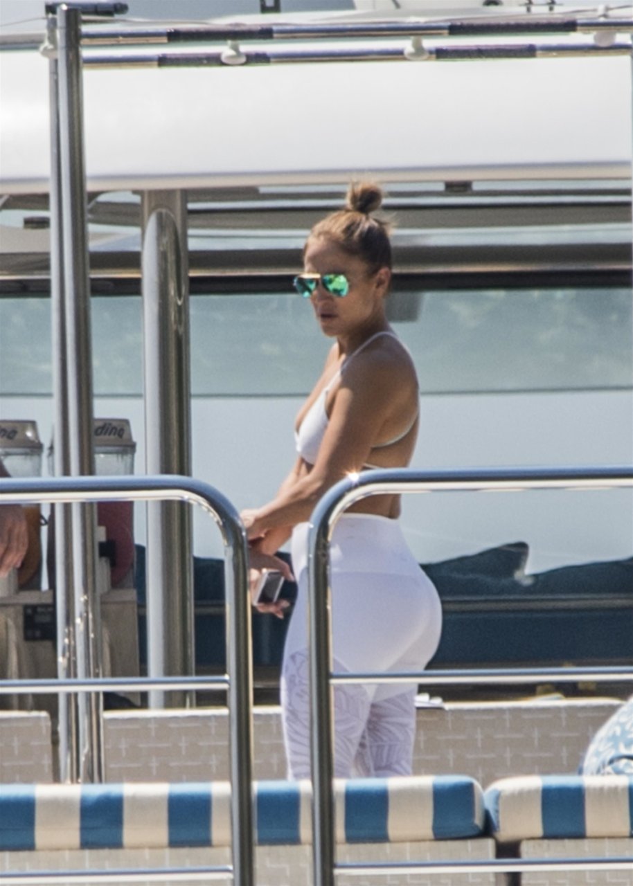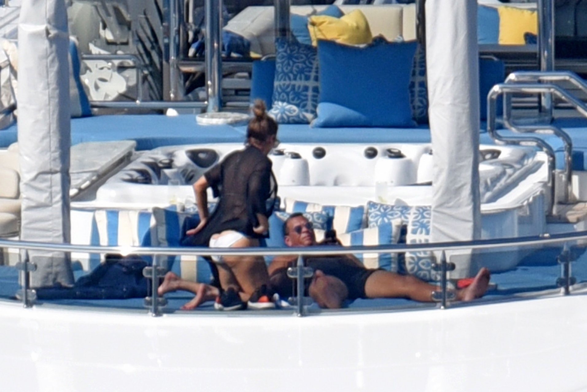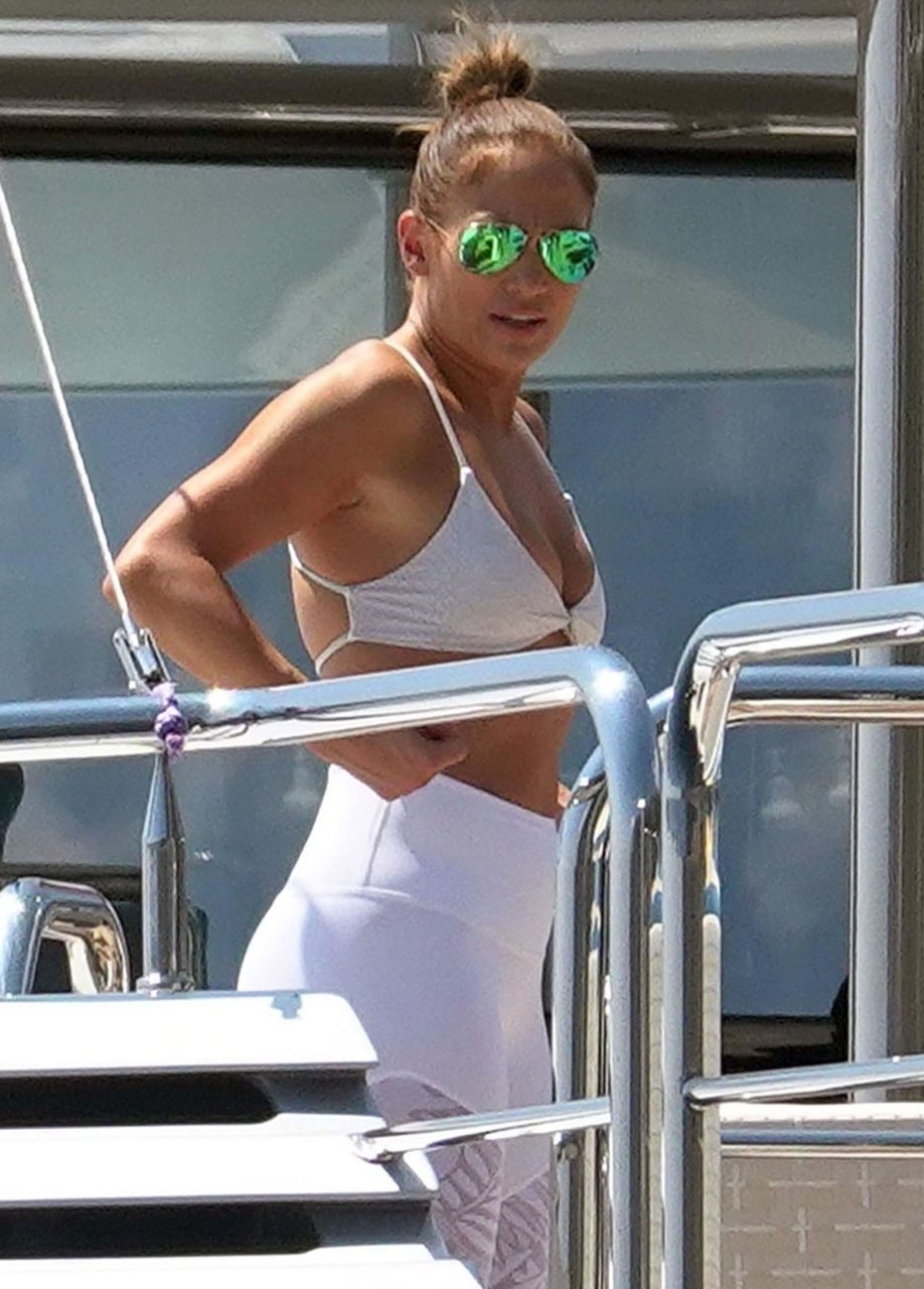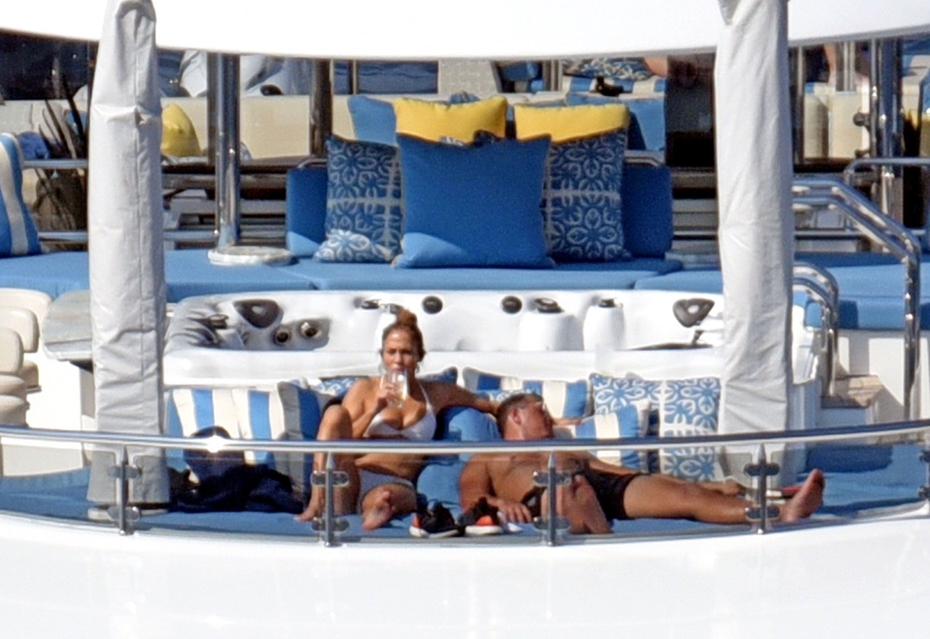JLo fue vista con su novio, Alex Rodriguez, en su yate de lujo junto con el productor musical y manager de Jennifer, Benny Medina. El grupo está de vacaciones en su yate de lujo en Positano, 08/07/2018.