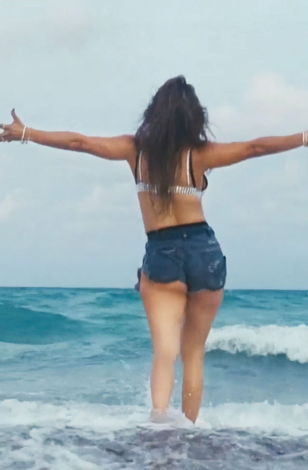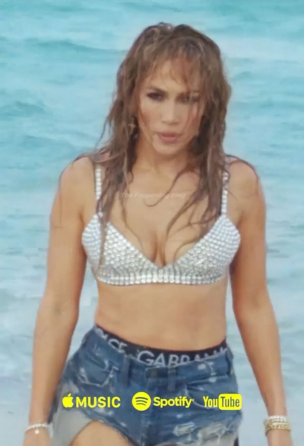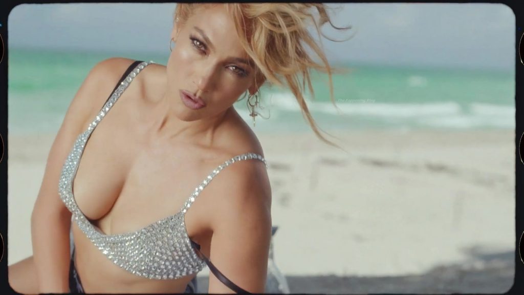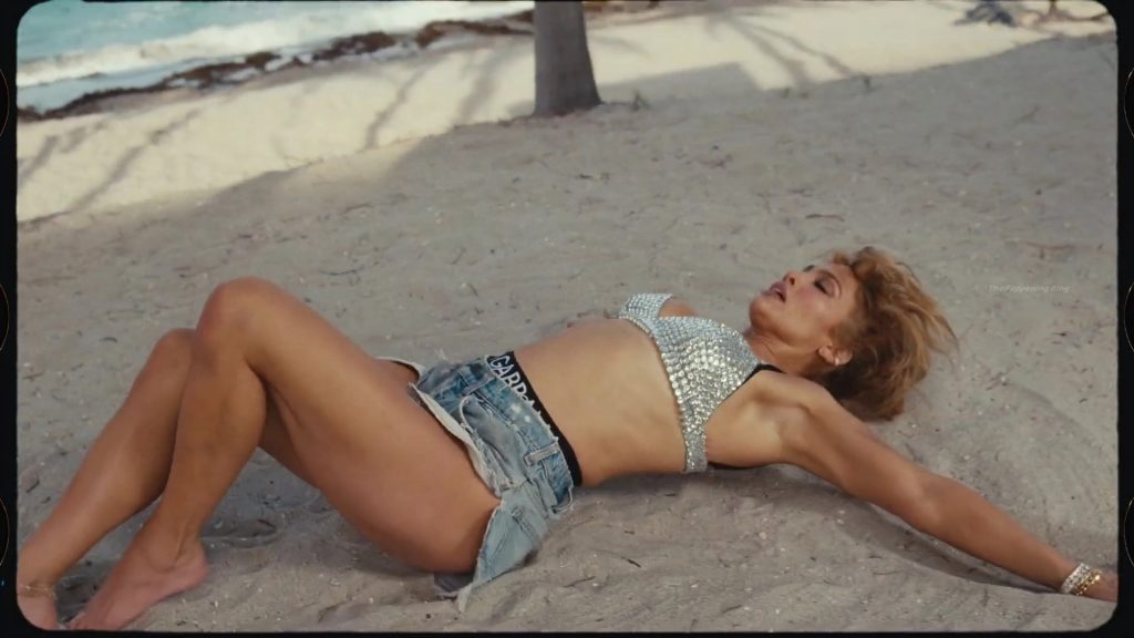 La cantante Jennifer Lopez muestra su escote y su famoso trasero en un bikini y shorts, posando en una sesión de fotos promocional para su video musical ‘Cambia el Paso’ (2021). Aquí también hay algunas capturas de pantalla calientes.