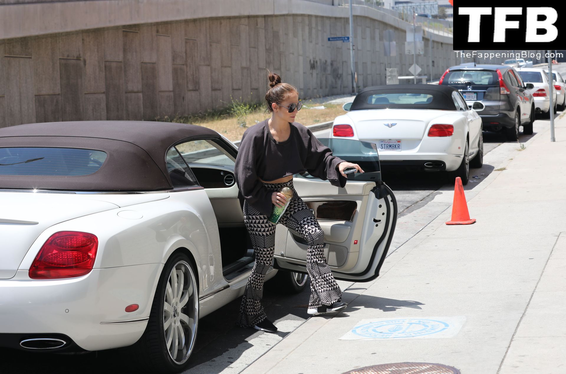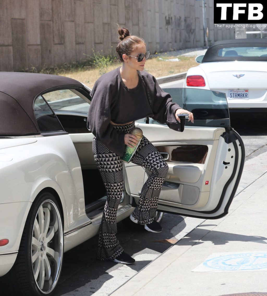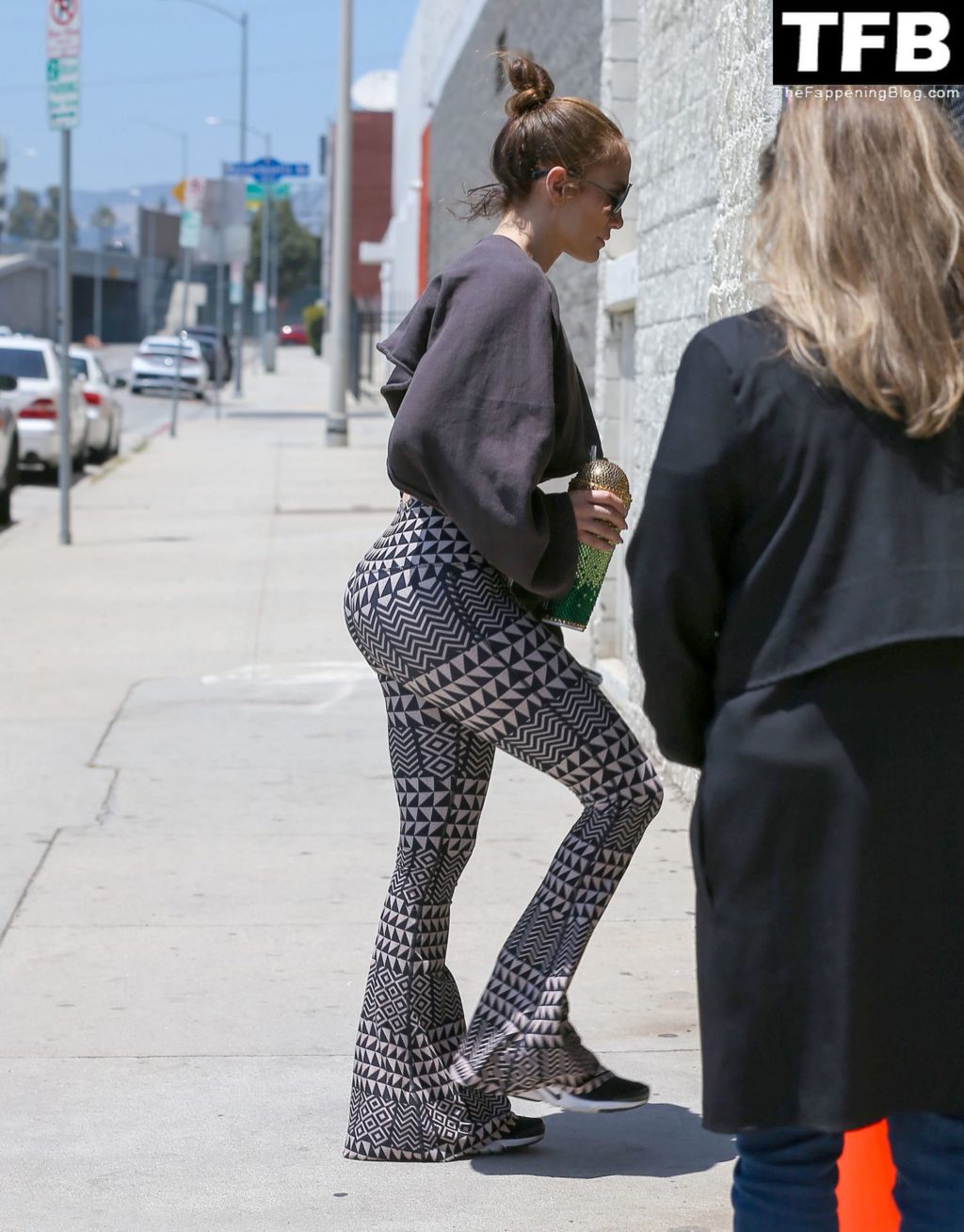 Jennifer Lopez llega al estudio de baile en Los Ángeles con leggings retro y una sudadera corta, 16/07/2022.
