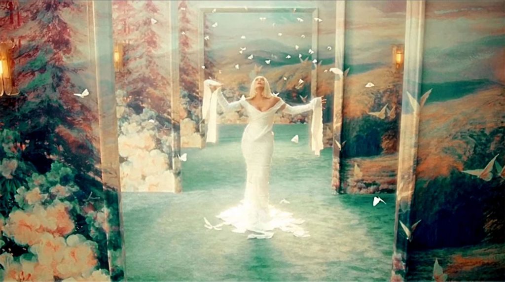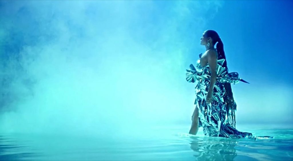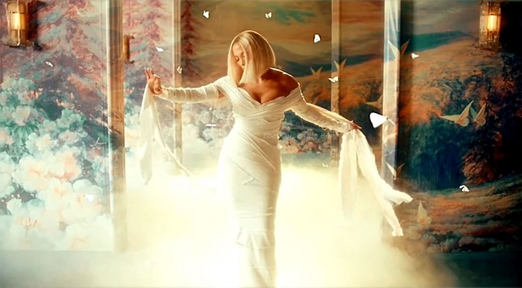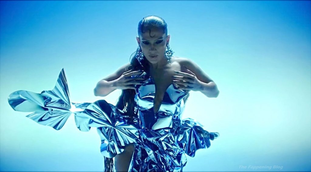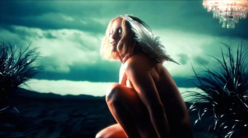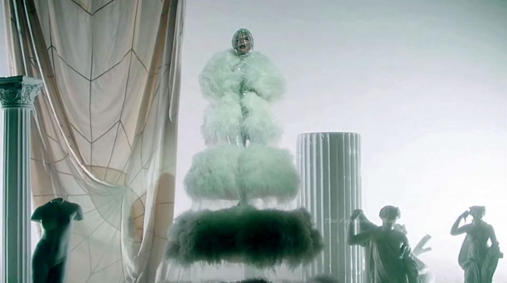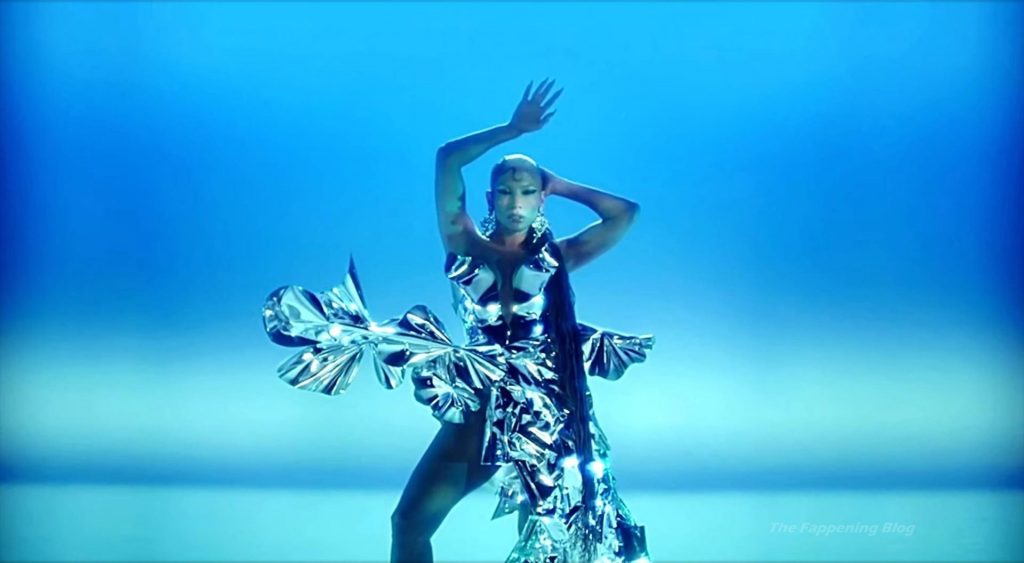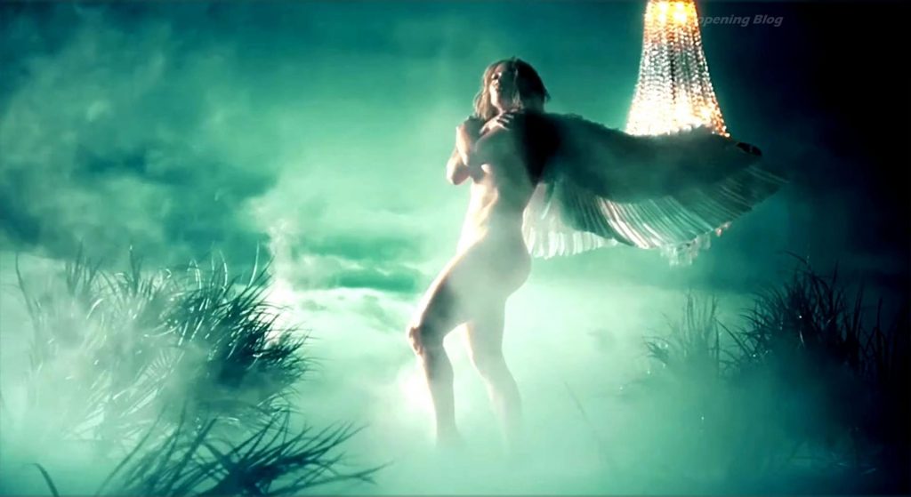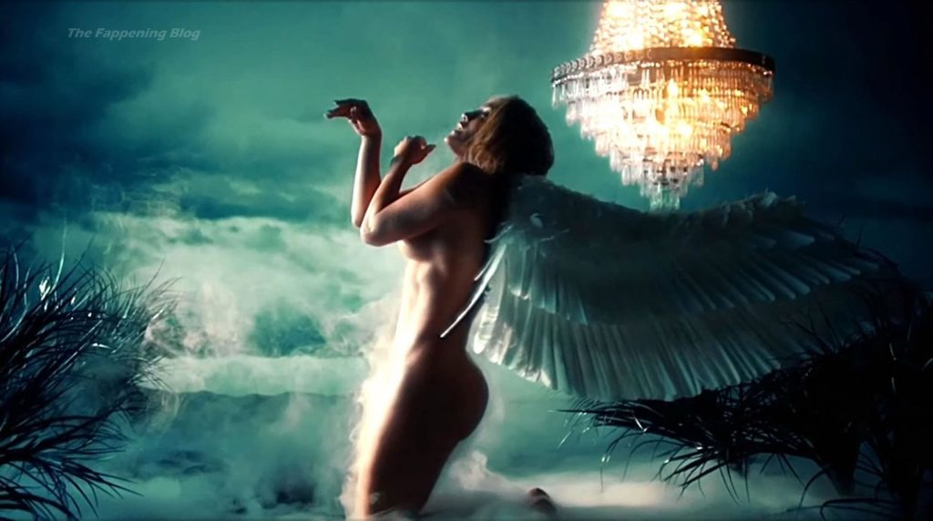 Sus impresionantes abdominales y figura musculosa se mostraron en las escenas desnudas, así como en varios otros looks etéreos que lució en el video.