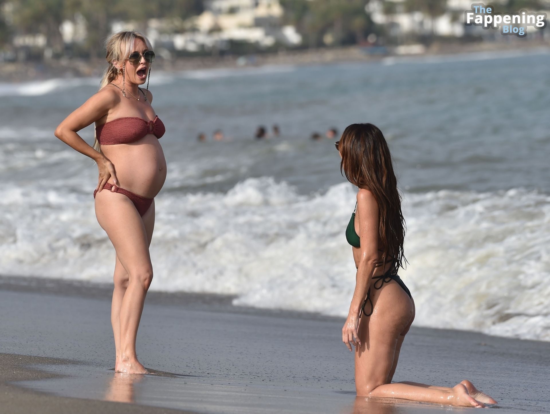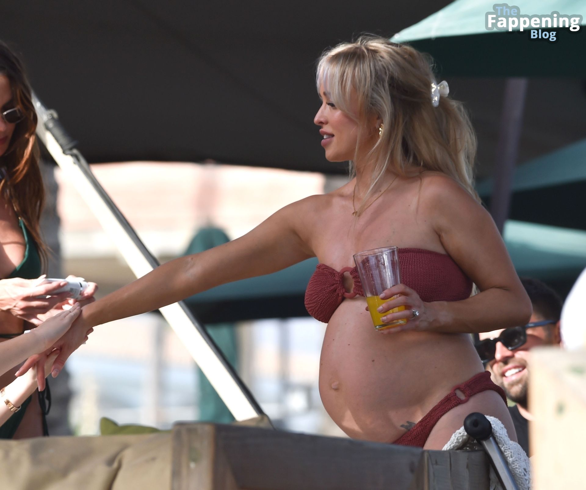 La actriz embarazada Jorgie, quien interpreta a Theresa McQueen, mostró su creciente barriguita después de anunciar que espera su segundo hijo con su pareja Ollie Piotrowski. Mientras tanto, Jennifer, quien interpreta a la atrevida Mercedes McQueen en la telenovela de Channel 4, lució su cuerpo tonificado en su diminuto bikini verde.