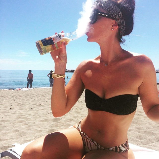 Vaca estúpida. Mucho beber y fumar = cara de cuero.