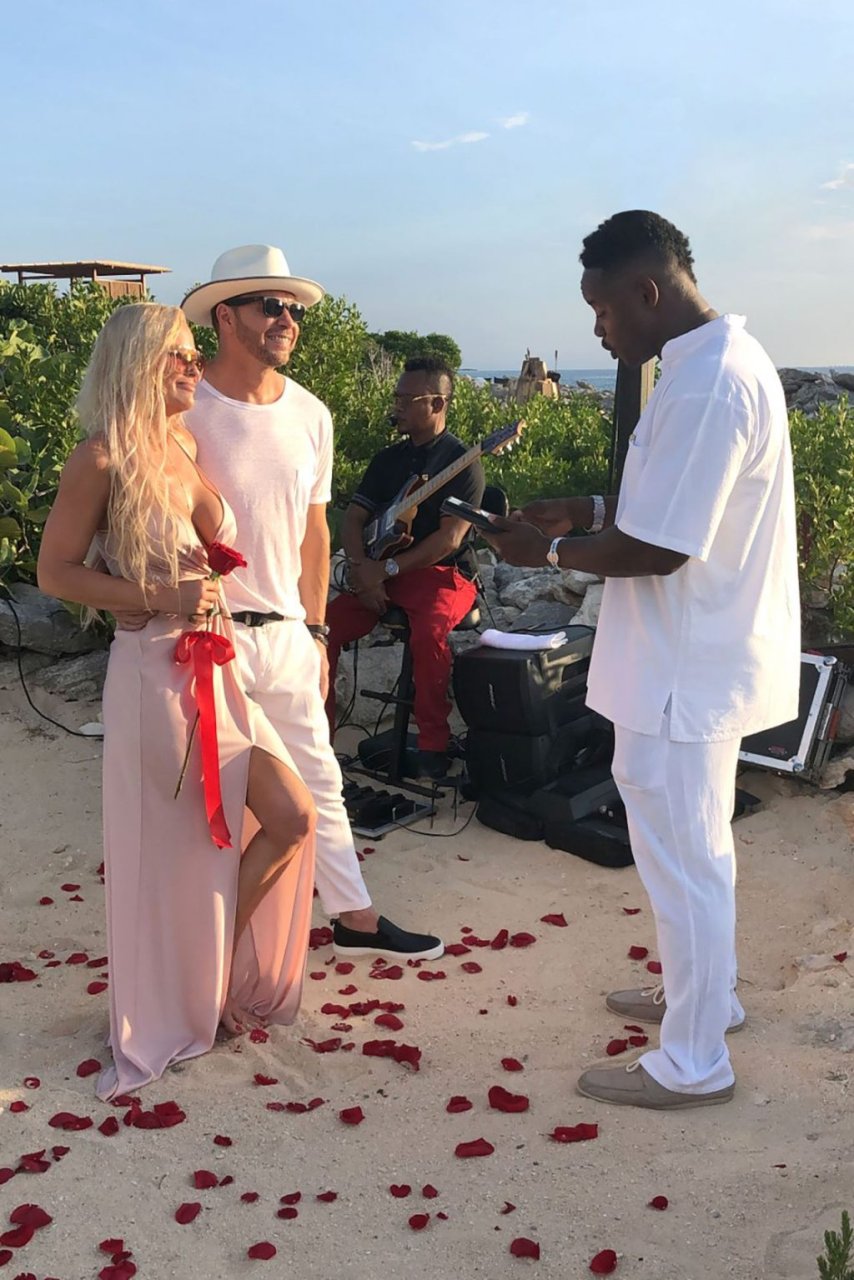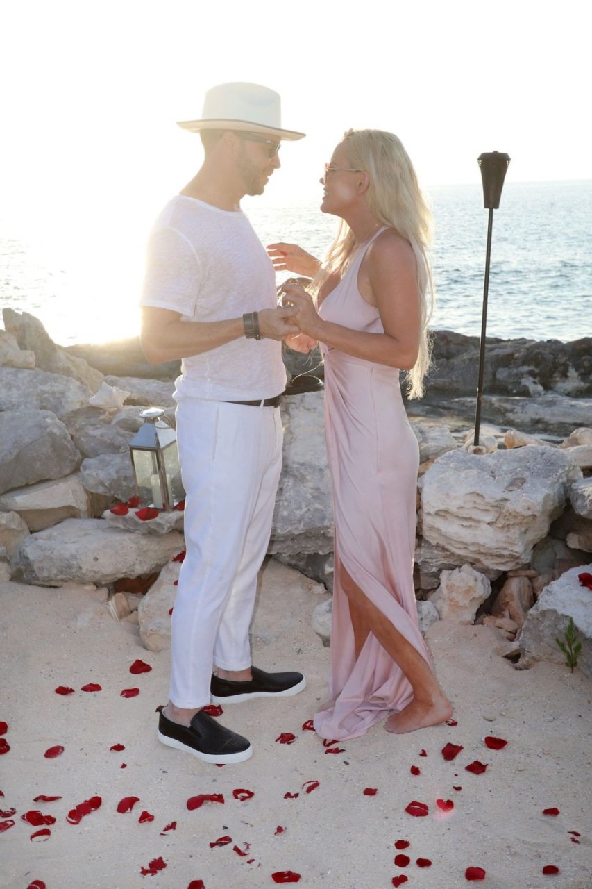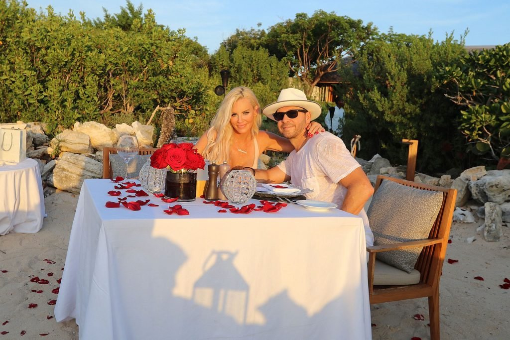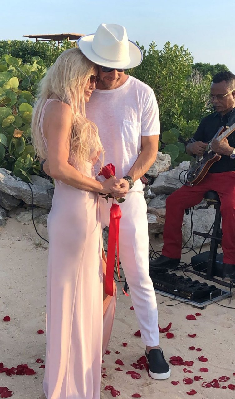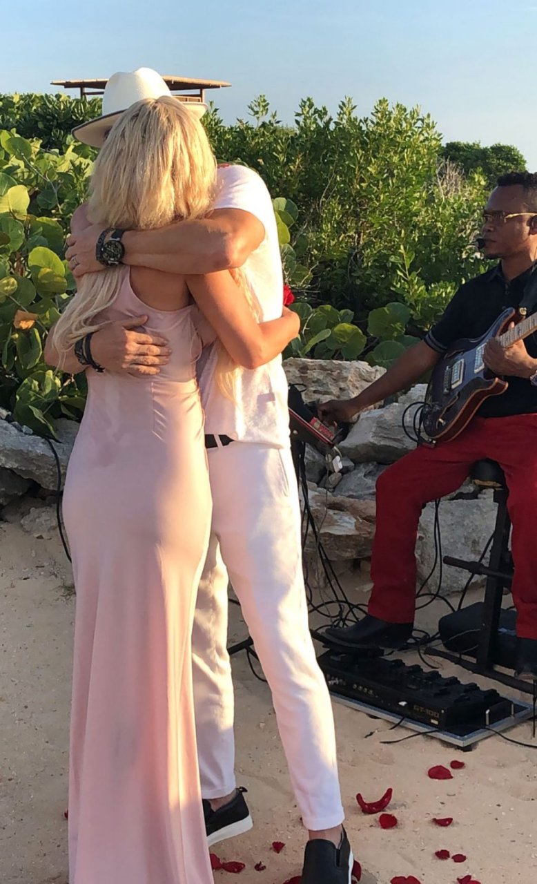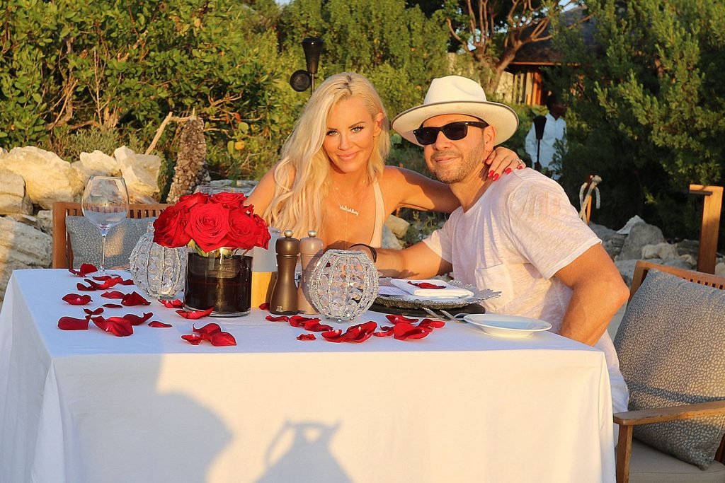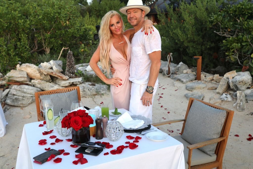 Jenny McCarthy y su esposo Donnie Wahlberg en Turks y Caicos para celebrar su 5º aniversario de bodas el 31 de agosto. Mientras estaban allí, Donnie sorprendió a Jenny con una ceremonia de renovación de votos.
