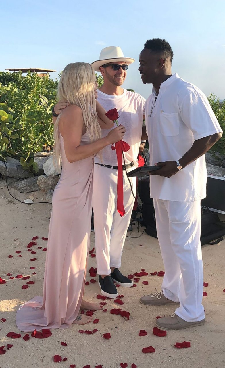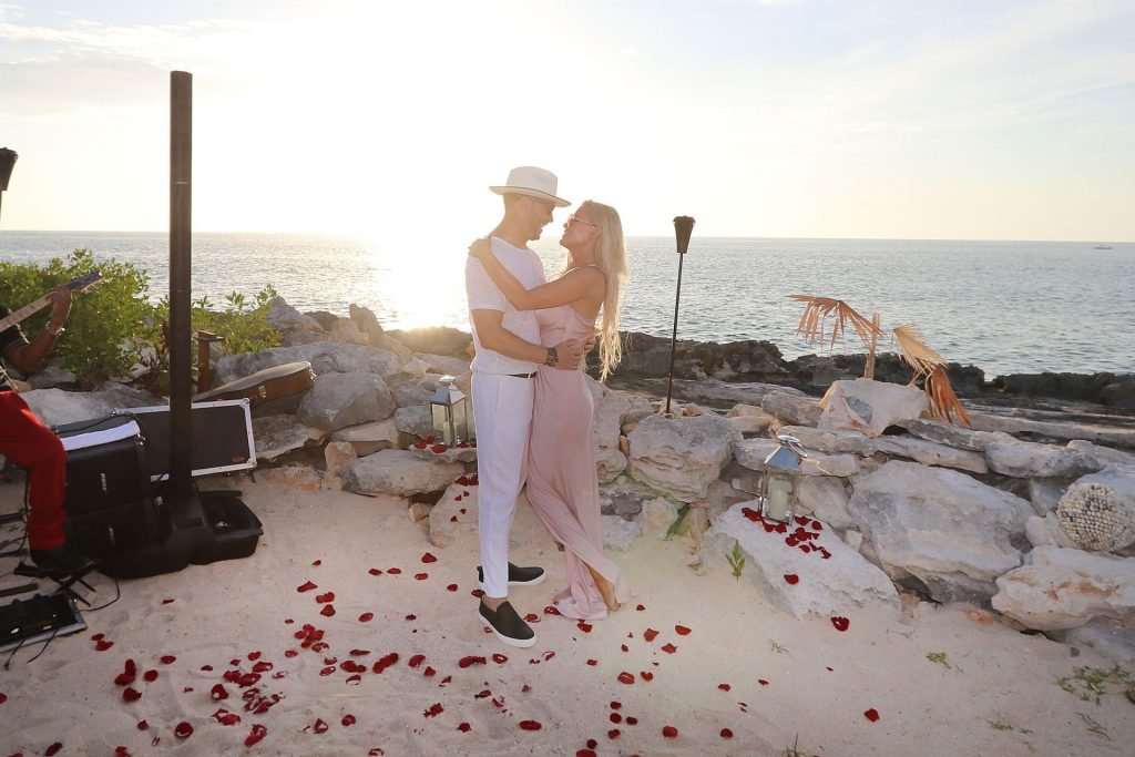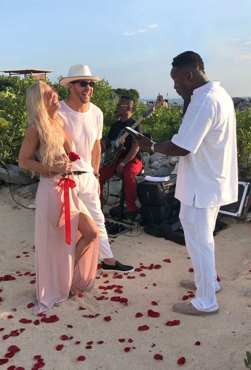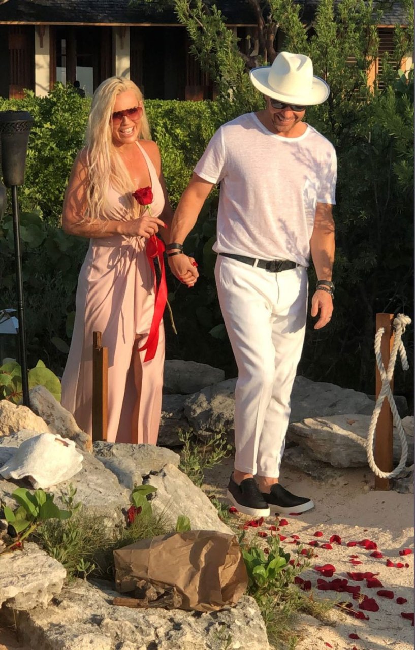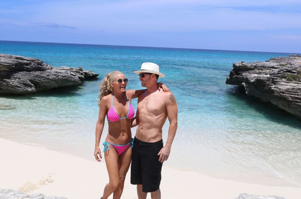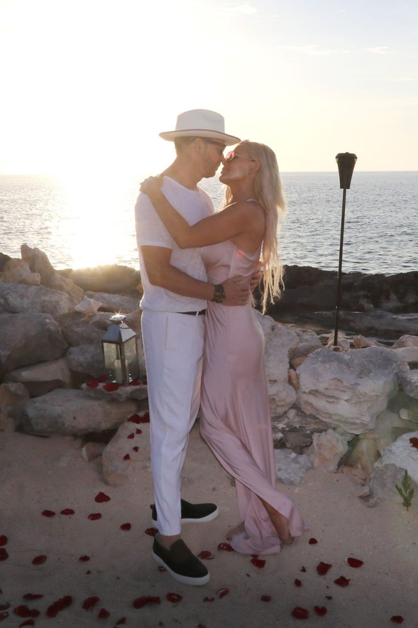 Jenny McCarthy y su esposo Donnie Wahlberg en Turks y Caicos para celebrar su 5º aniversario de bodas el 31 de agosto. Mientras estaban allí, Donnie sorprendió a Jenny con una ceremonia de renovación de votos.