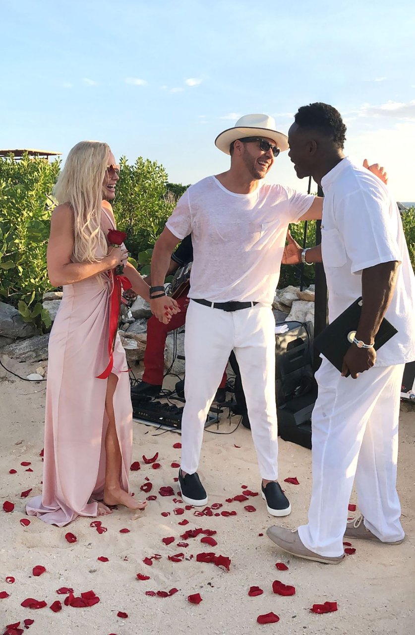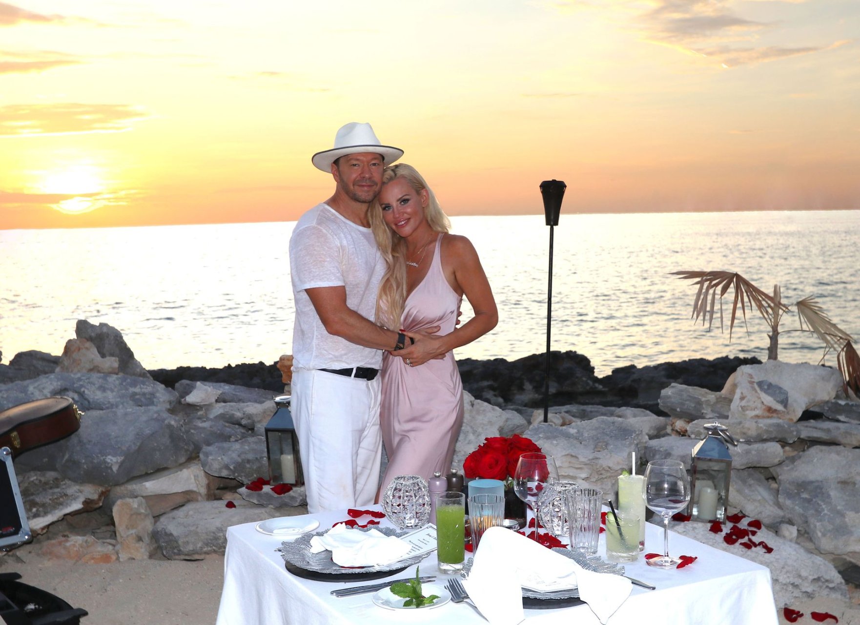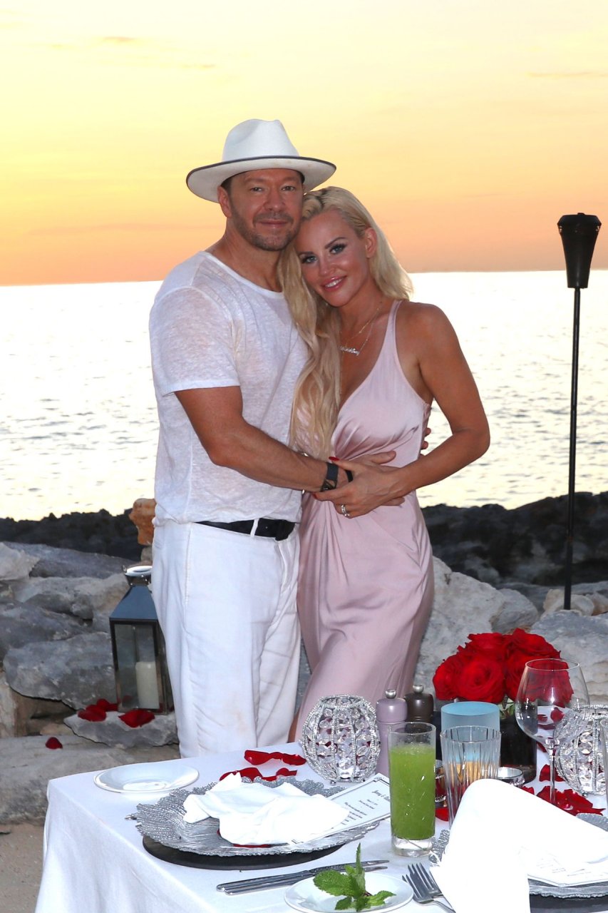 Jenny McCarthy y su esposo Donnie Wahlberg en Turks y Caicos para celebrar su 5º aniversario de bodas el 31 de agosto. Mientras estaban allí, Donnie sorprendió a Jenny con una ceremonia de renovación de votos.
