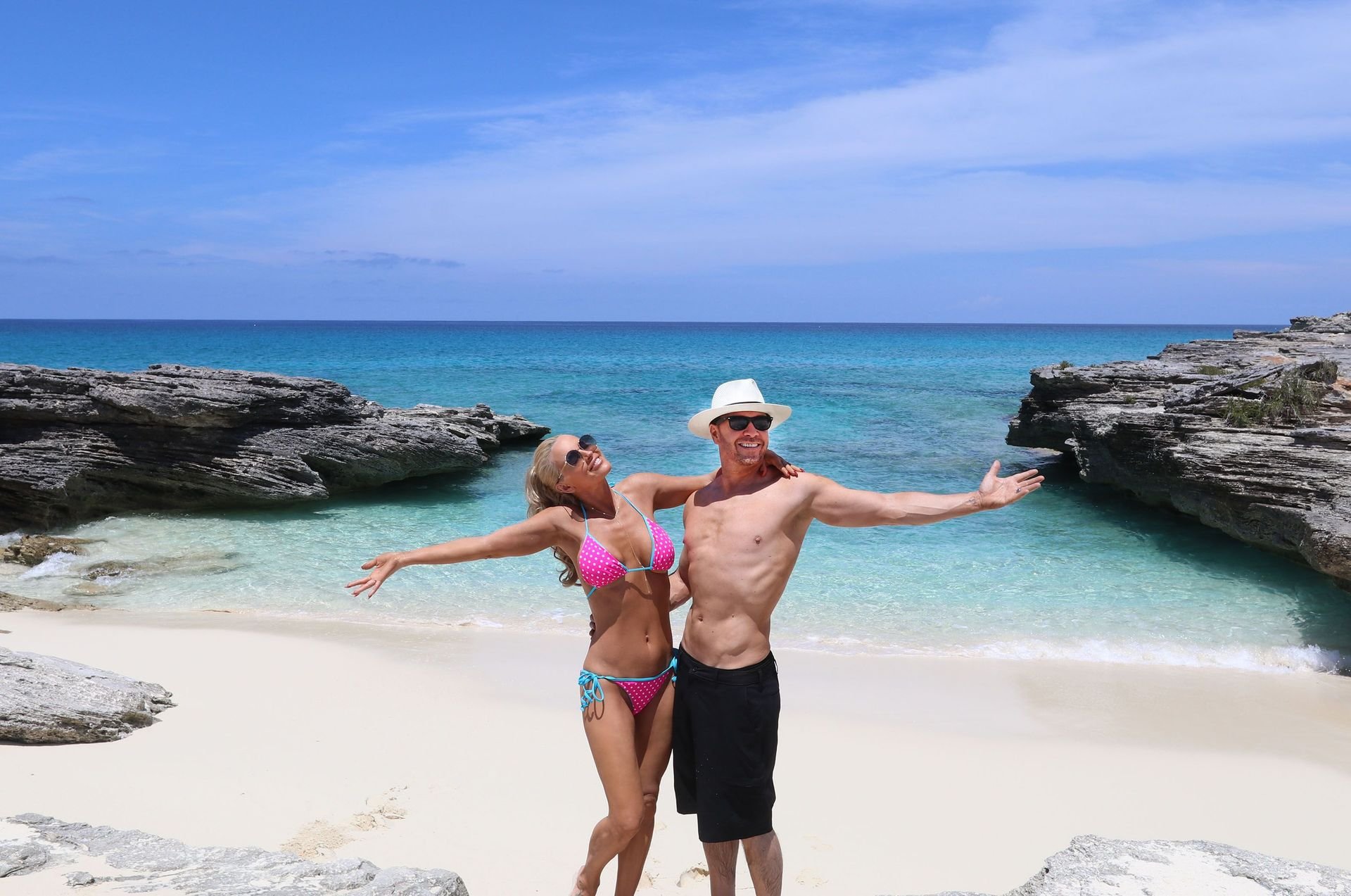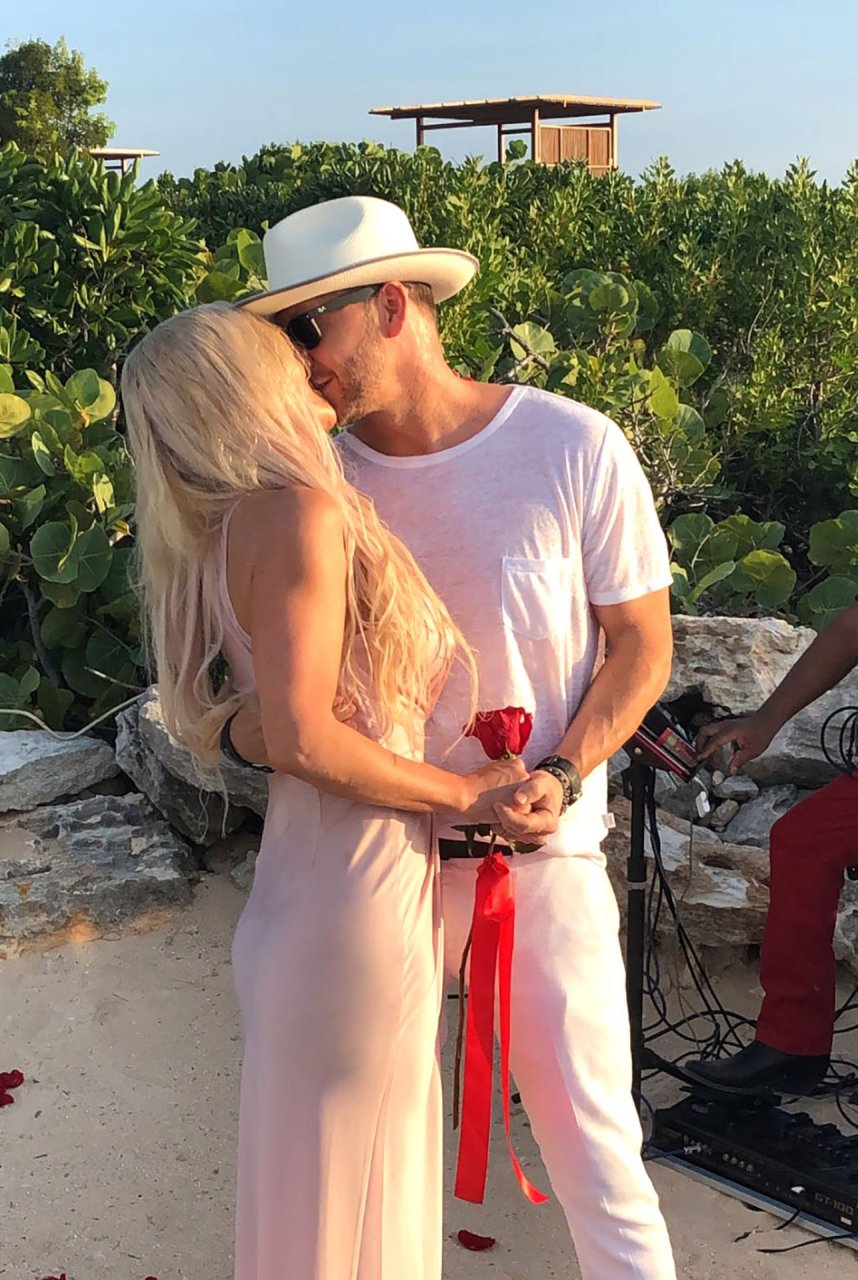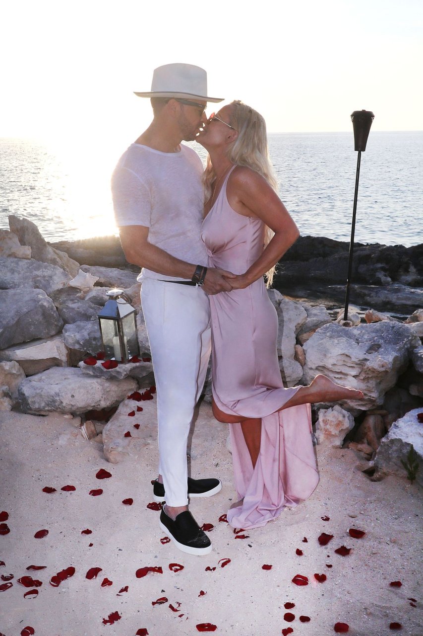 Jenny McCarthy y su esposo Donnie Wahlberg en Turks y Caicos para celebrar su 5º aniversario de bodas el 31 de agosto. Mientras estaban allí, Donnie sorprendió a Jenny con una ceremonia de renovación de votos.