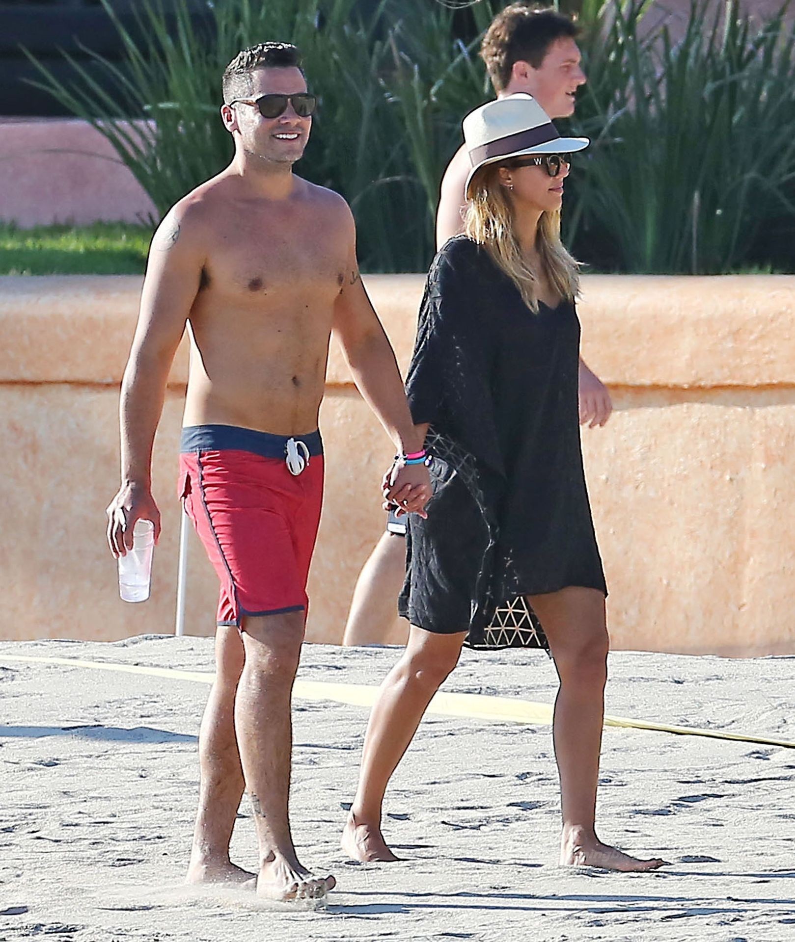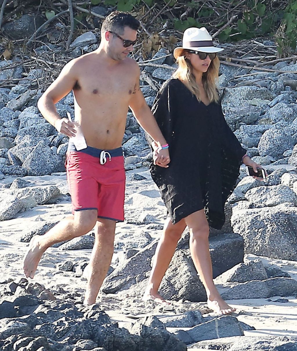 Actriz Jessica Alba y su esposo Cash Warren disfrutan el día de Año Nuevo en la playa y en la piscina mientras están de vacaciones en Cabo San Lucas, México, 01/01/2015.