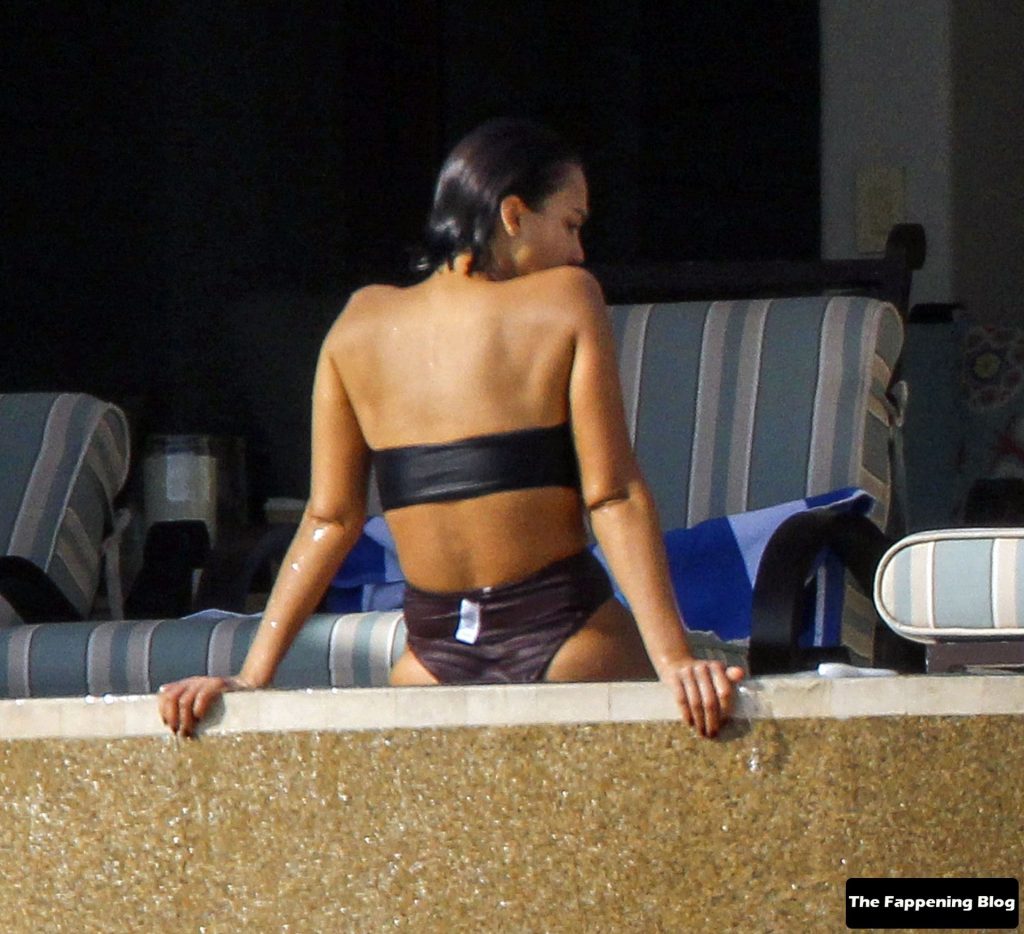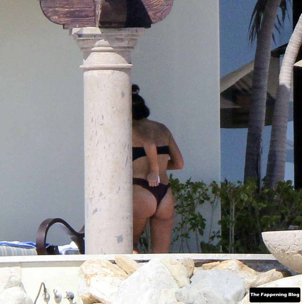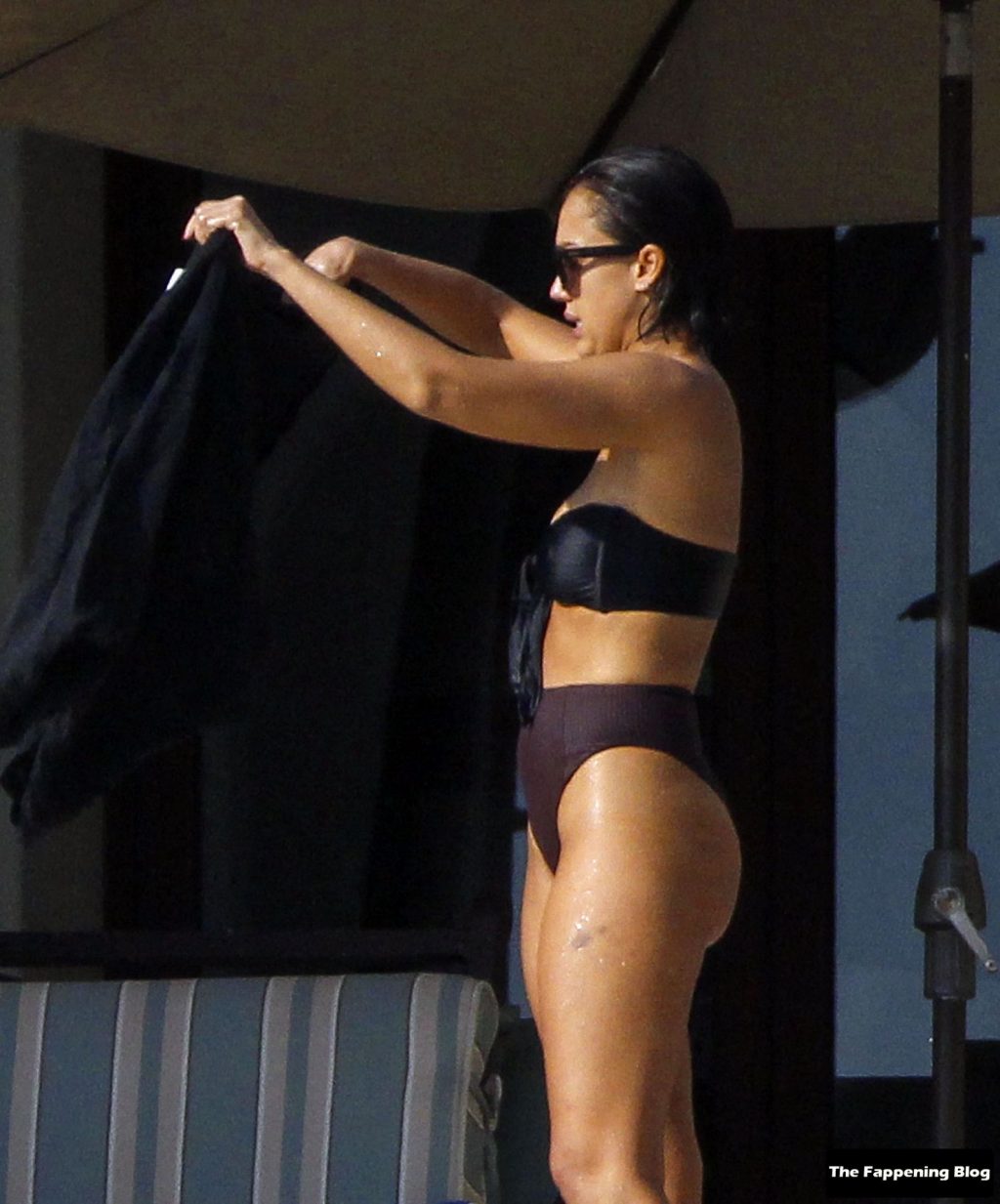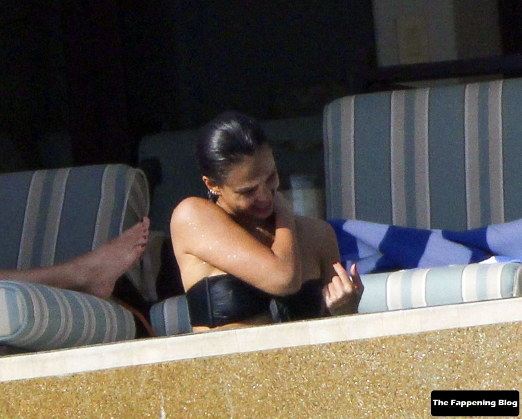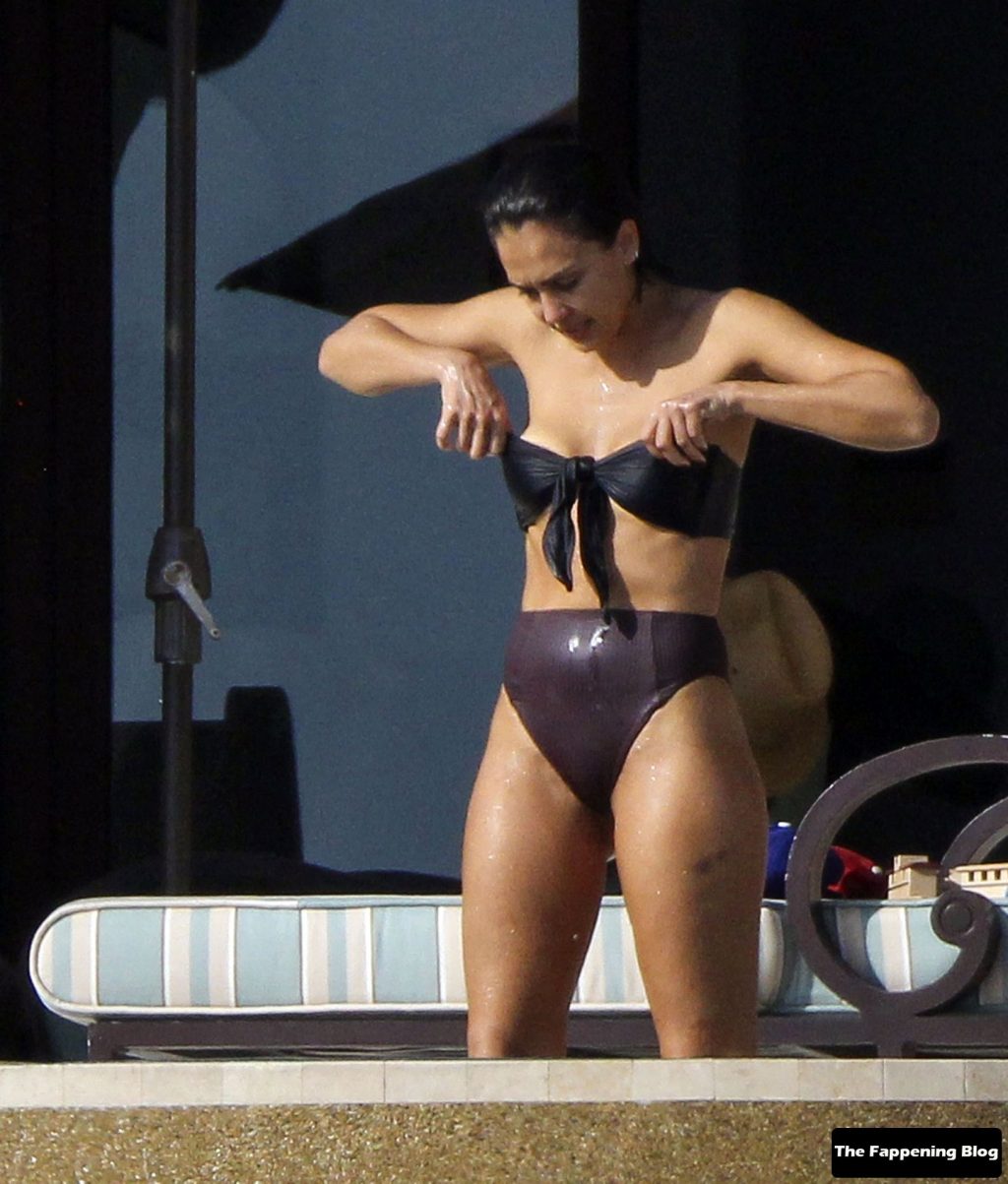 La impresionante actriz disfrutó de un descanso soleado en México durante la semana de Acción de Gracias. Tomó el sol en una villa de lujo con un bikini negro tipo bandeau y tanga, dándose un chapuzón en la piscina antes de secarse.