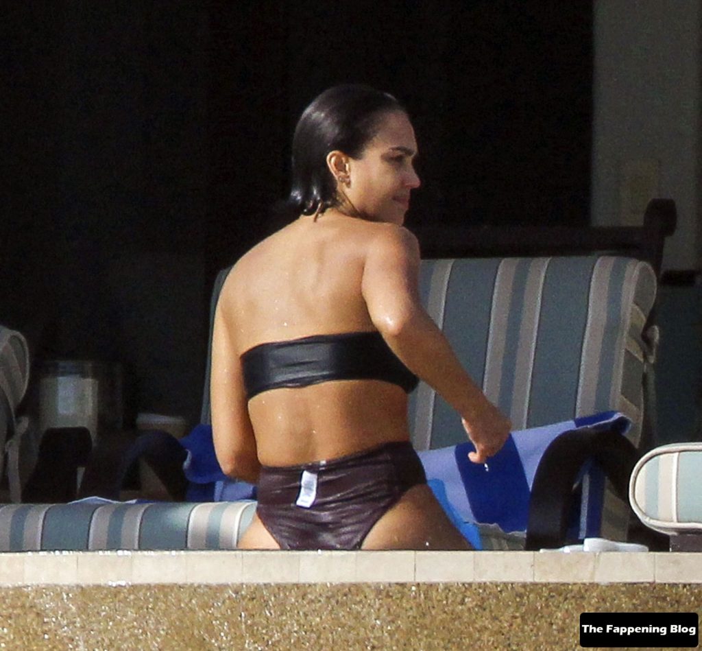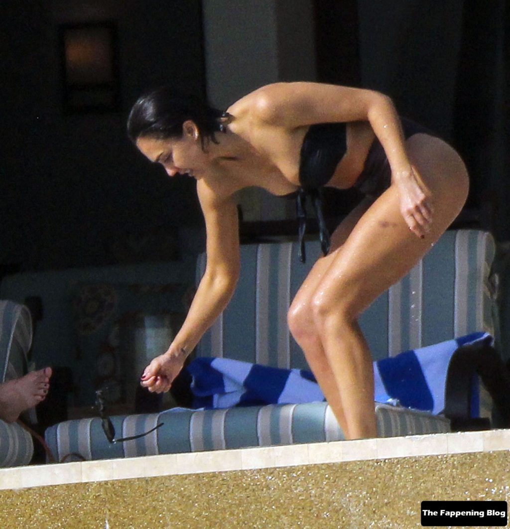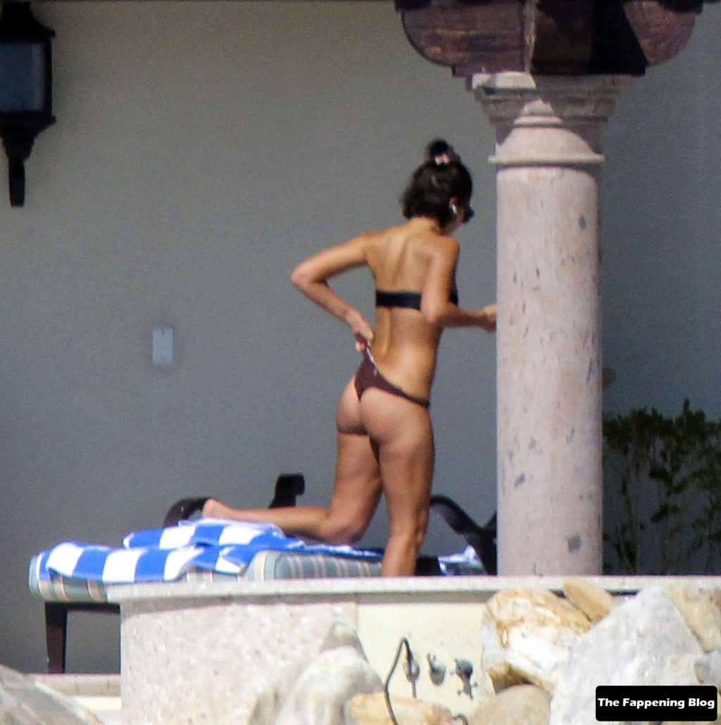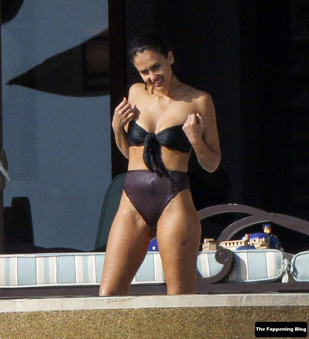 La impresionante actriz disfrutó de un descanso soleado en México durante la semana de Acción de Gracias. Tomó el sol en una villa de lujo con un bikini negro tipo bandeau y tanga, dándose un chapuzón en la piscina antes de secarse.