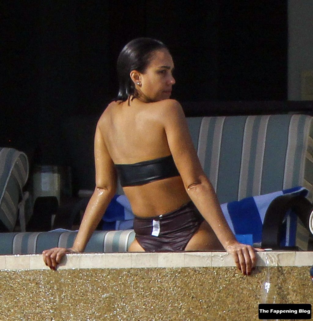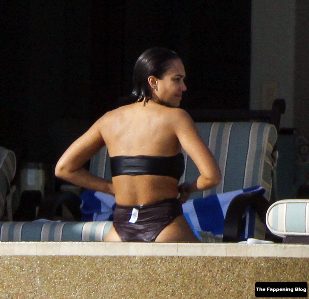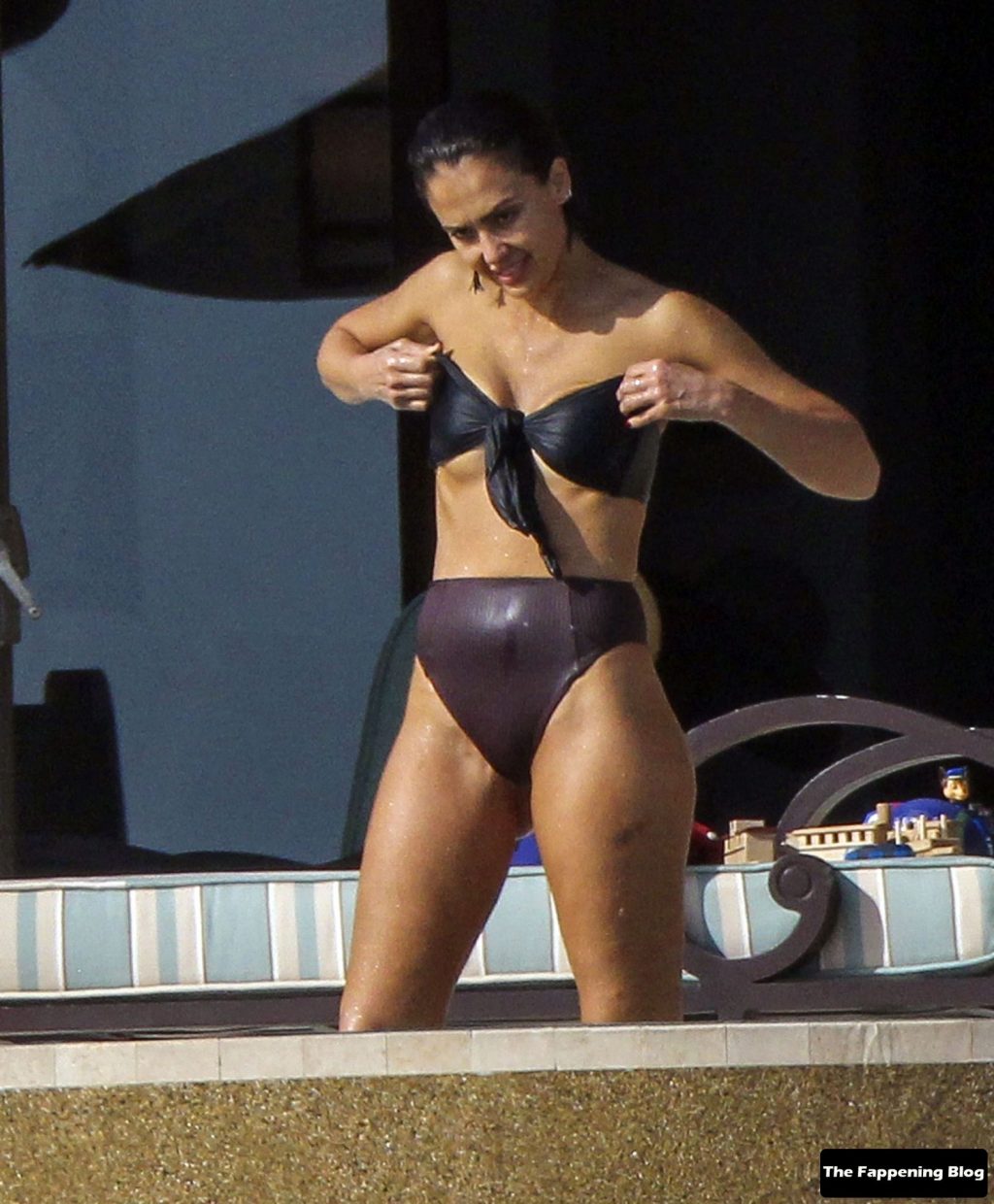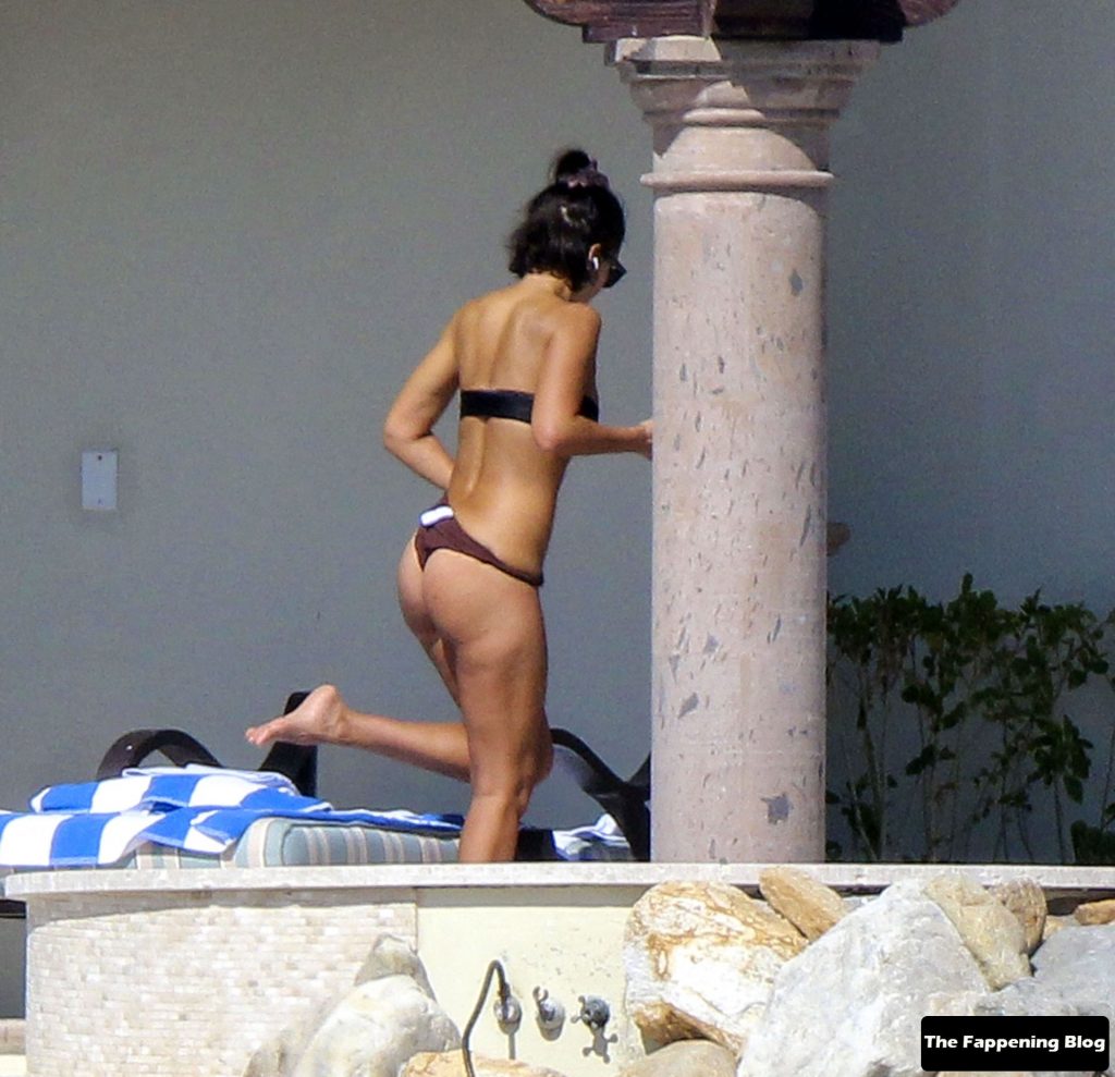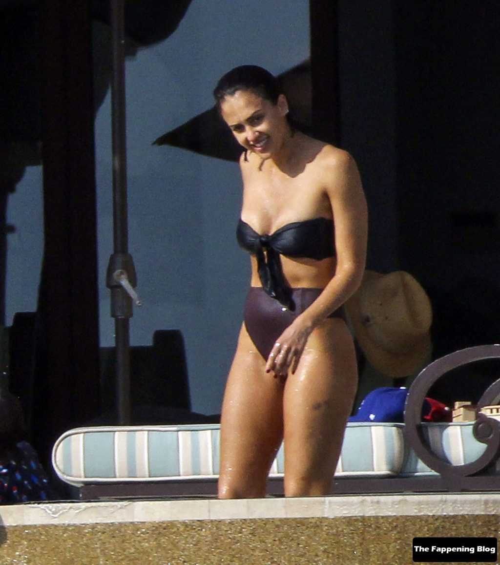 La impresionante actriz disfrutó de un descanso soleado en México durante la semana de Acción de Gracias. Tomó el sol en una villa de lujo con un bikini negro tipo bandeau y tanga, dándose un chapuzón en la piscina antes de secarse.