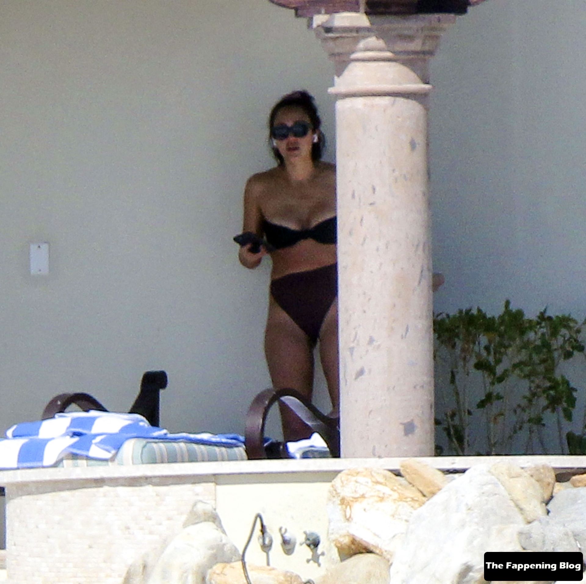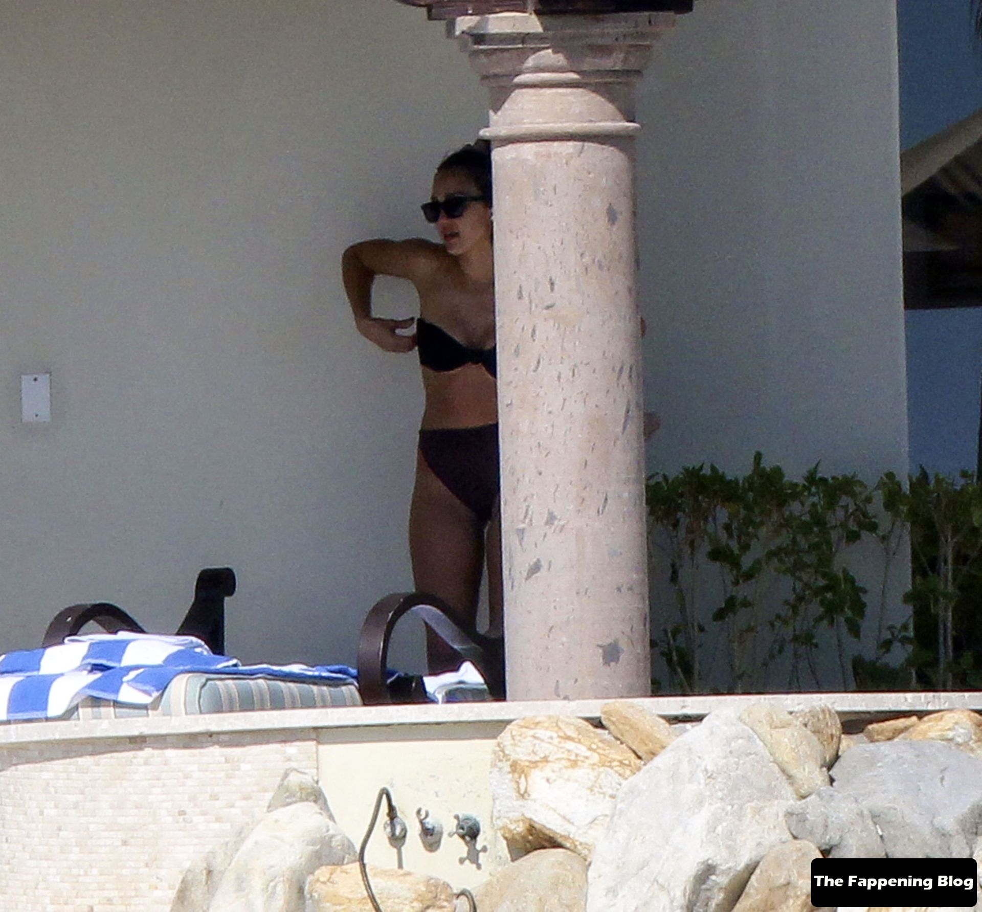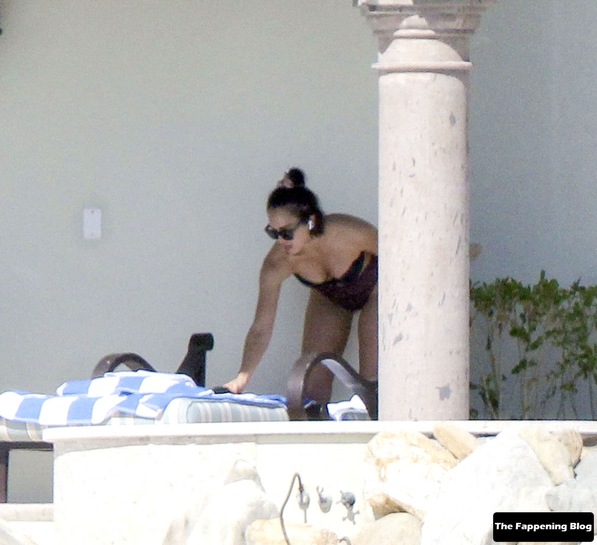 La impresionante actriz disfrutó de un descanso soleado en México durante la semana de Acción de Gracias. Tomó el sol en una villa de lujo con un bikini negro tipo bandeau y tanga, dándose un chapuzón en la piscina antes de secarse.
