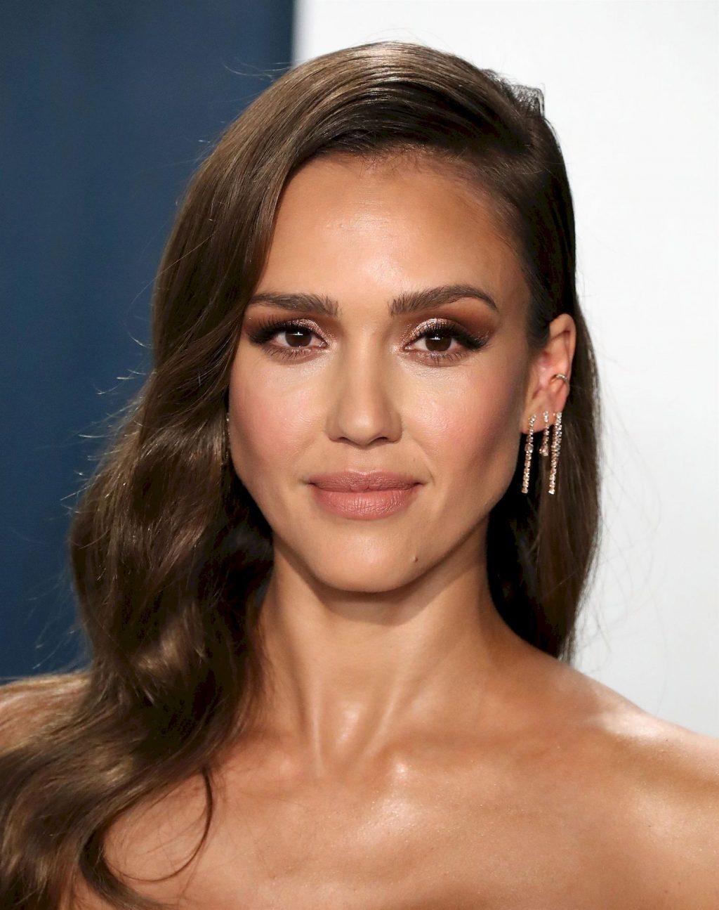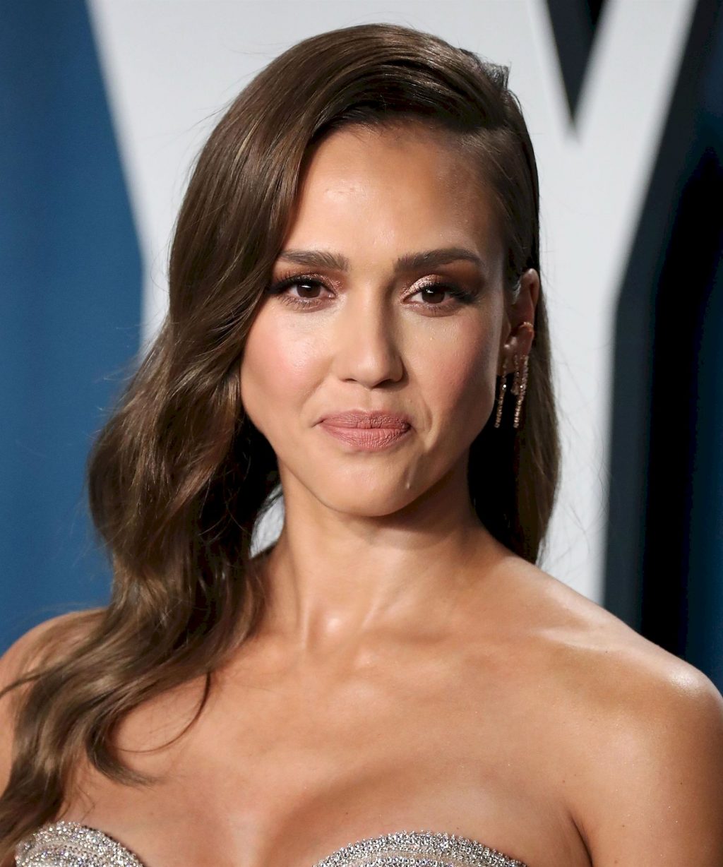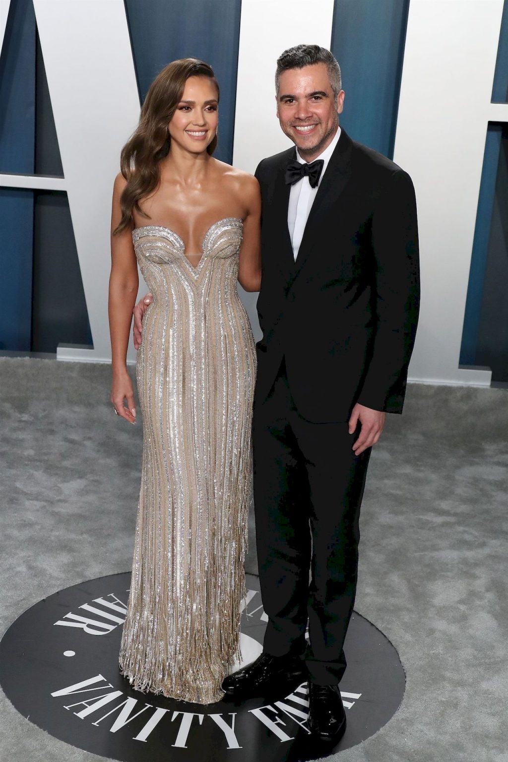 La superestrella Jessica Alba asiste a la fiesta de los Oscar Vanity Fair 2020 celebrada en el Wallis Annenberg Center for the Performing Arts, 09/02/2020. La celebridad estadounidense apareció con un vestido de Versace con un escote inusual. El conjunto enfatizaba la figura perfecta de la actriz y su piel bronceada.