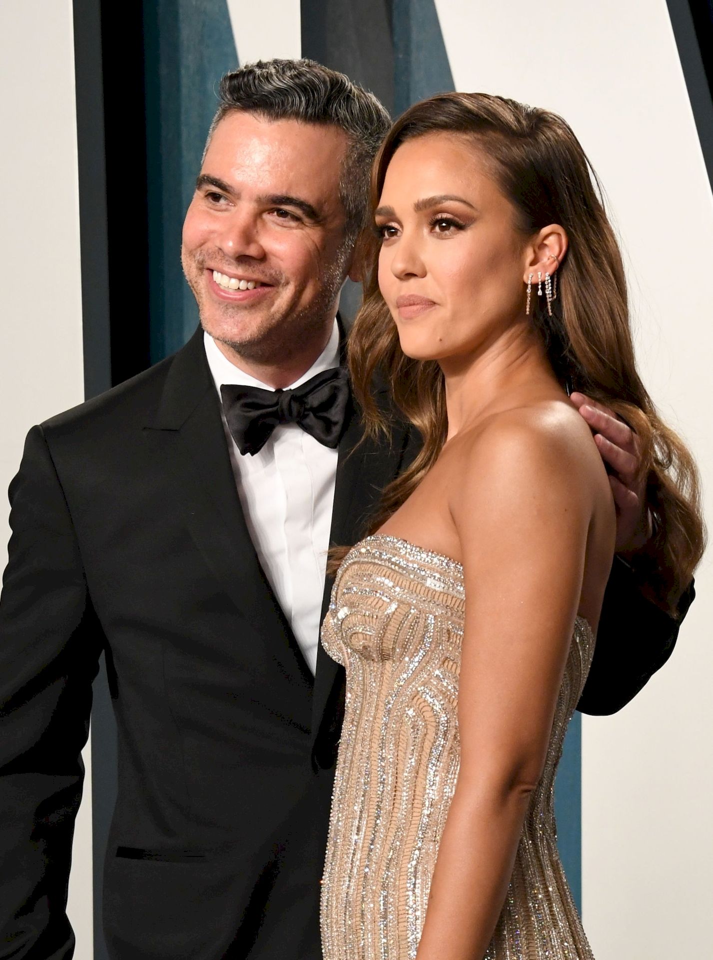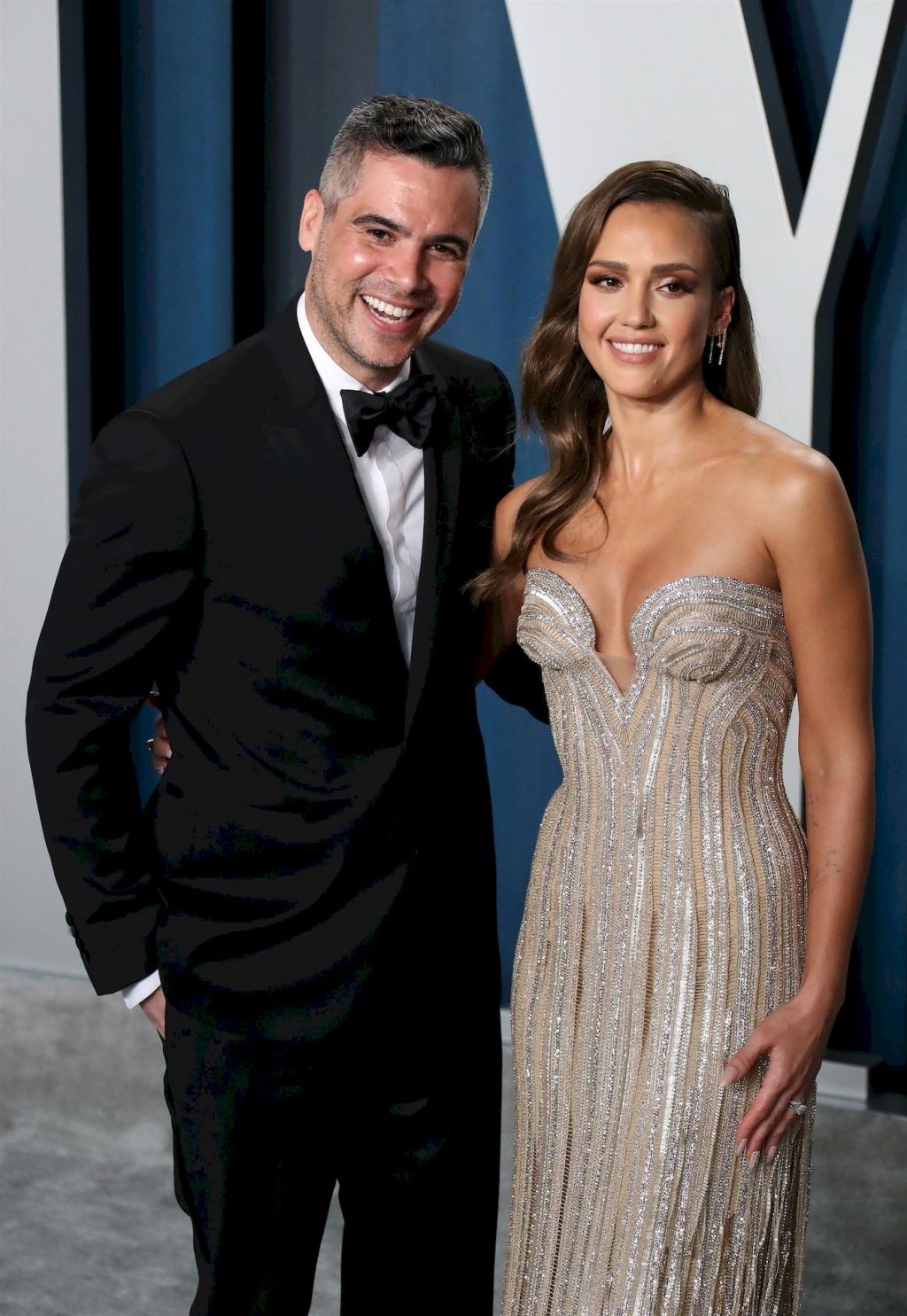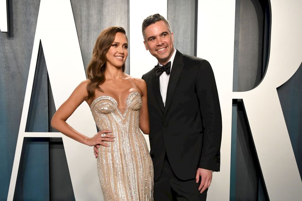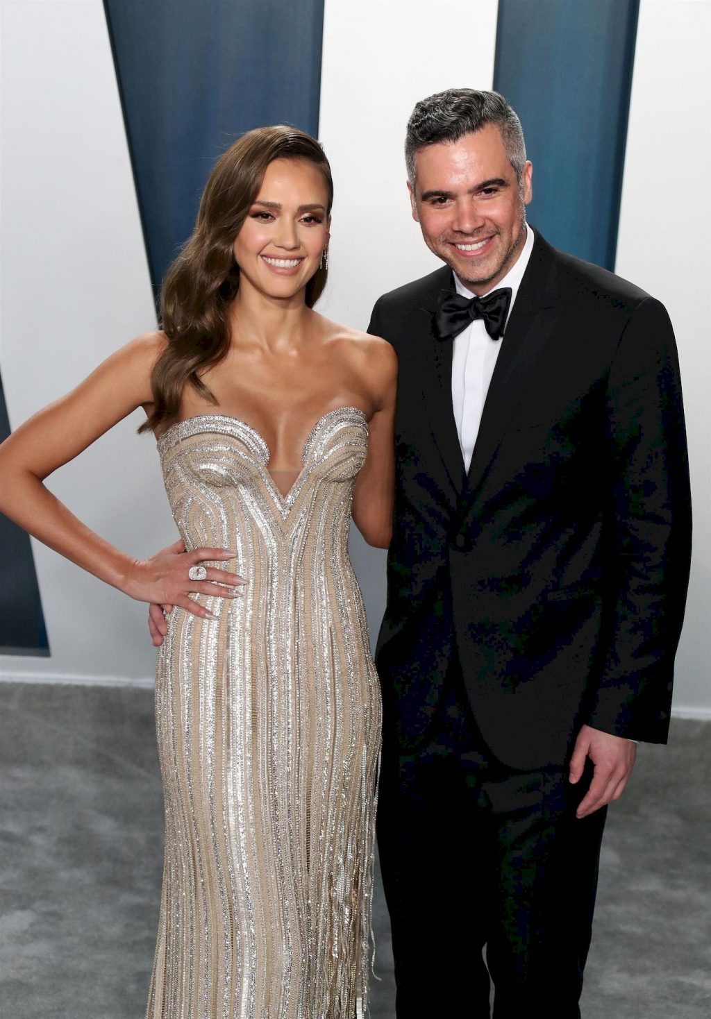 La superestrella Jessica Alba asiste a la fiesta de los Oscar Vanity Fair 2020 celebrada en el Wallis Annenberg Center for the Performing Arts, 09/02/2020. La celebridad estadounidense apareció con un vestido de Versace con un escote inusual. El conjunto enfatizaba la figura perfecta de la actriz y su piel bronceada.