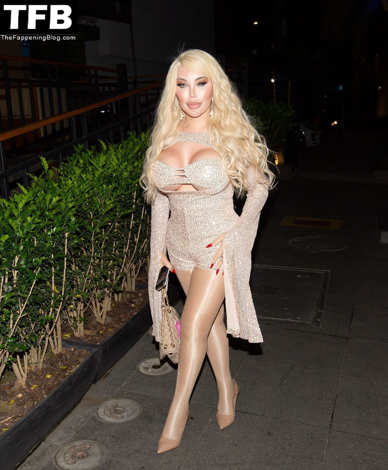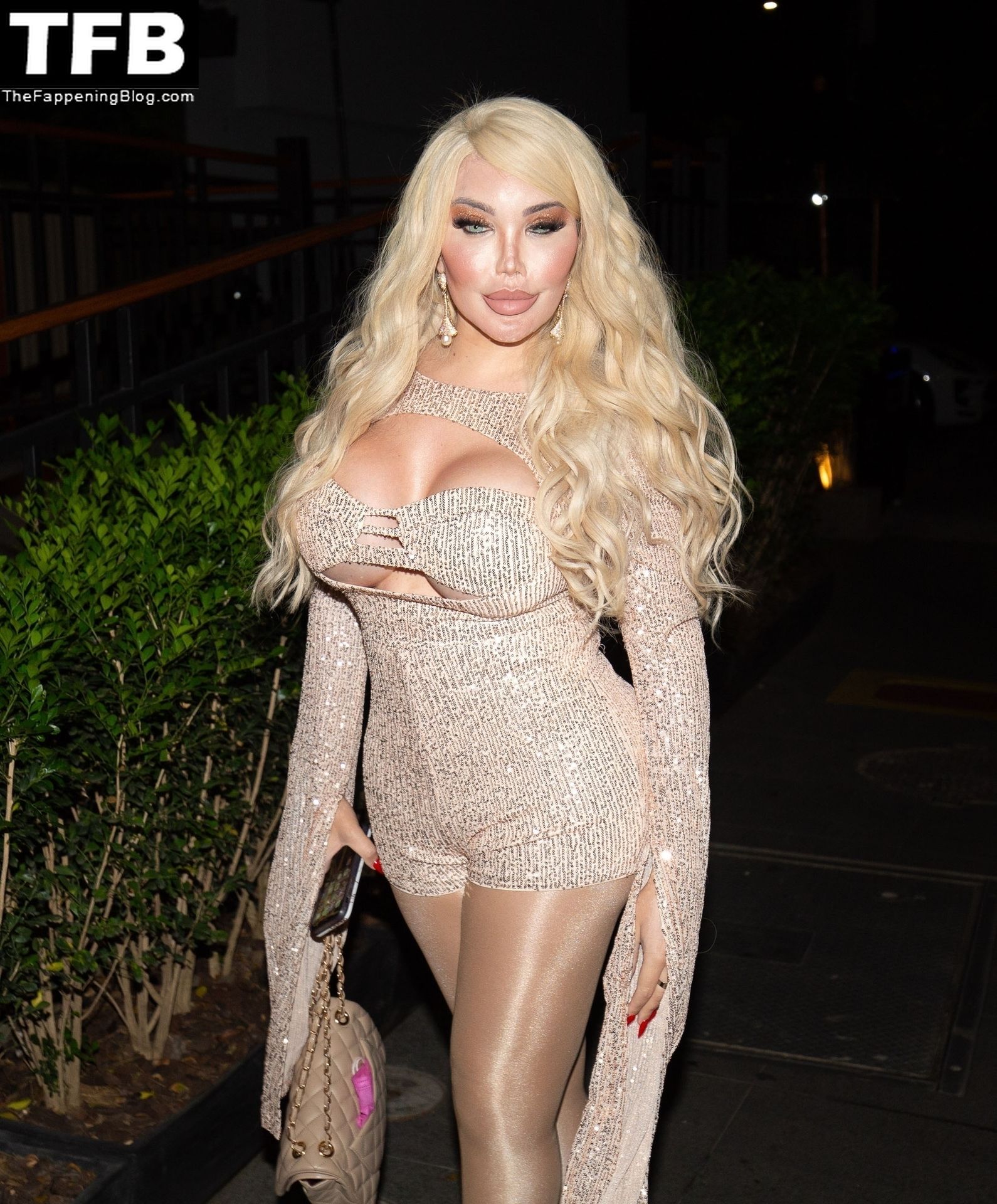 La personalidad televisiva transgénero brasileño-británica Jessica Alves muestra su cuerpo mejorado quirúrgicamente después de haber perdido recientemente 35 kg tras una cirugía de manga gástrica mientras disfruta de una noche con amigos en un restaurante en un barrio exclusivo de Sao Paulo en Brasil, 12/03/2021.