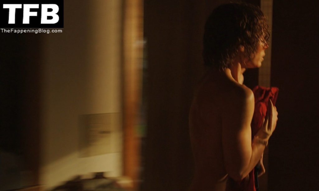 Jessica Biel sale de la ducha empapada con su ropa cubriendo su frente, pero podemos ver bien su trasero desnudo y un bonito sideboob.