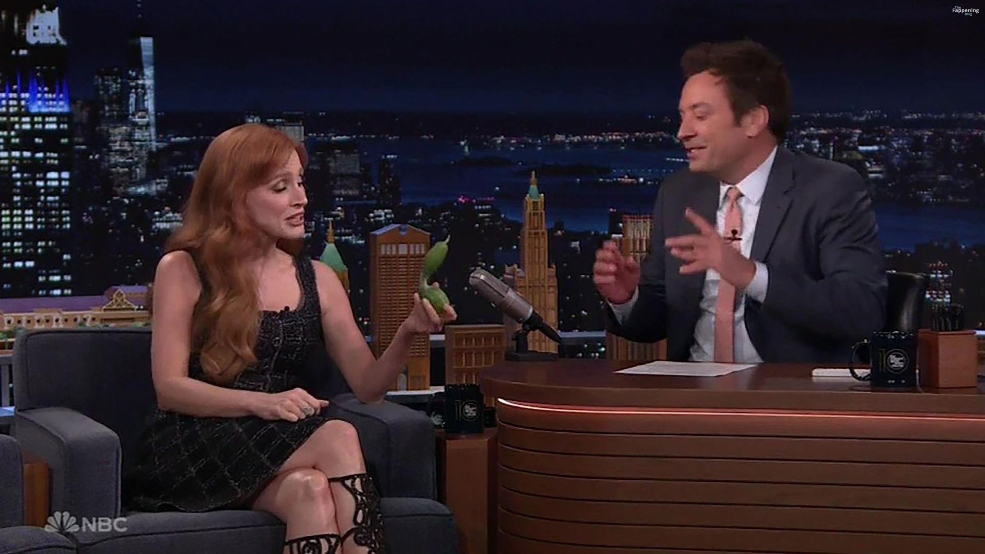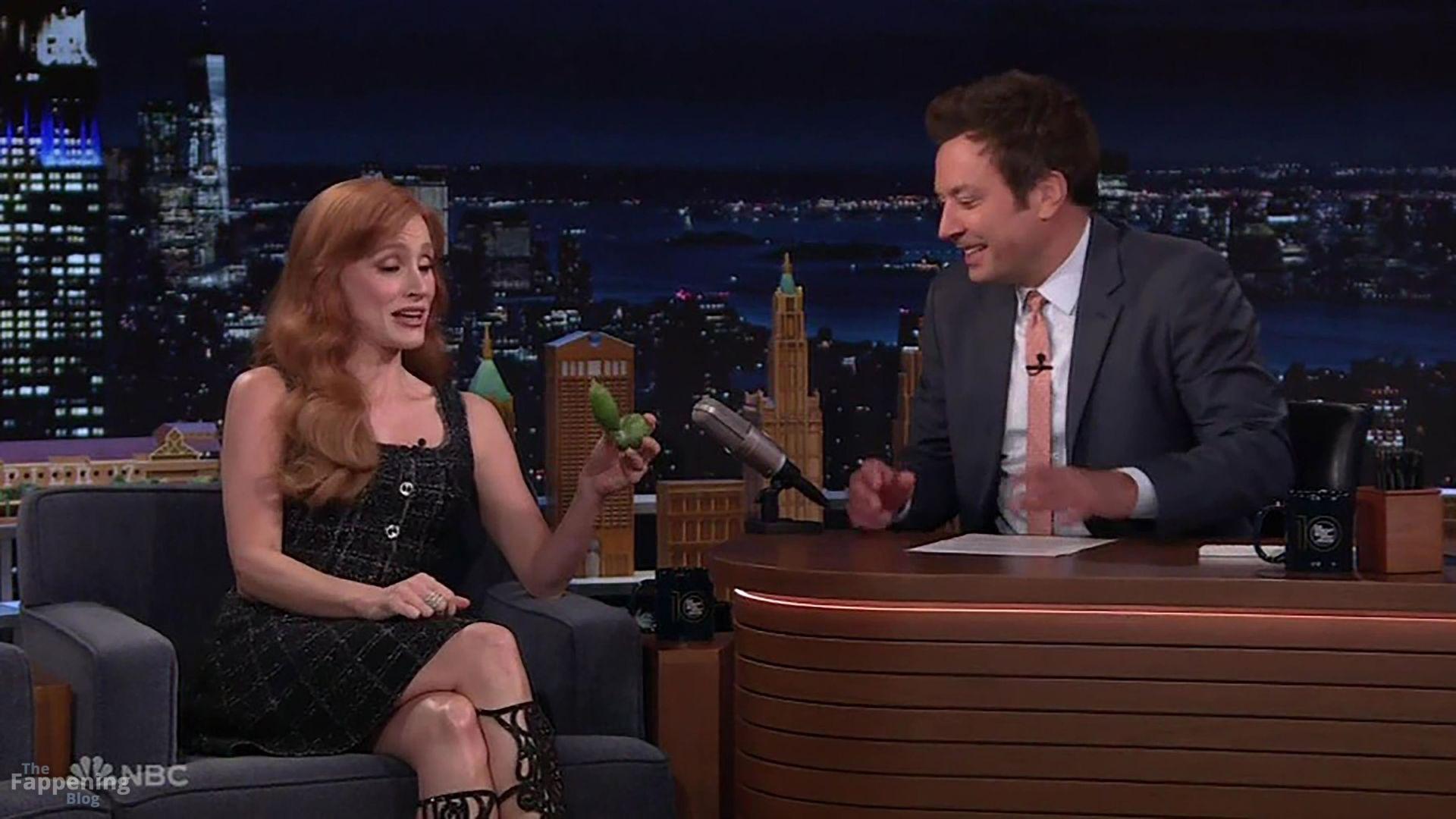 Jessica Chastain se burla del pepino casero de Jimmy Fallon mientras aparece en The Tonight Show (42 fotos + video)