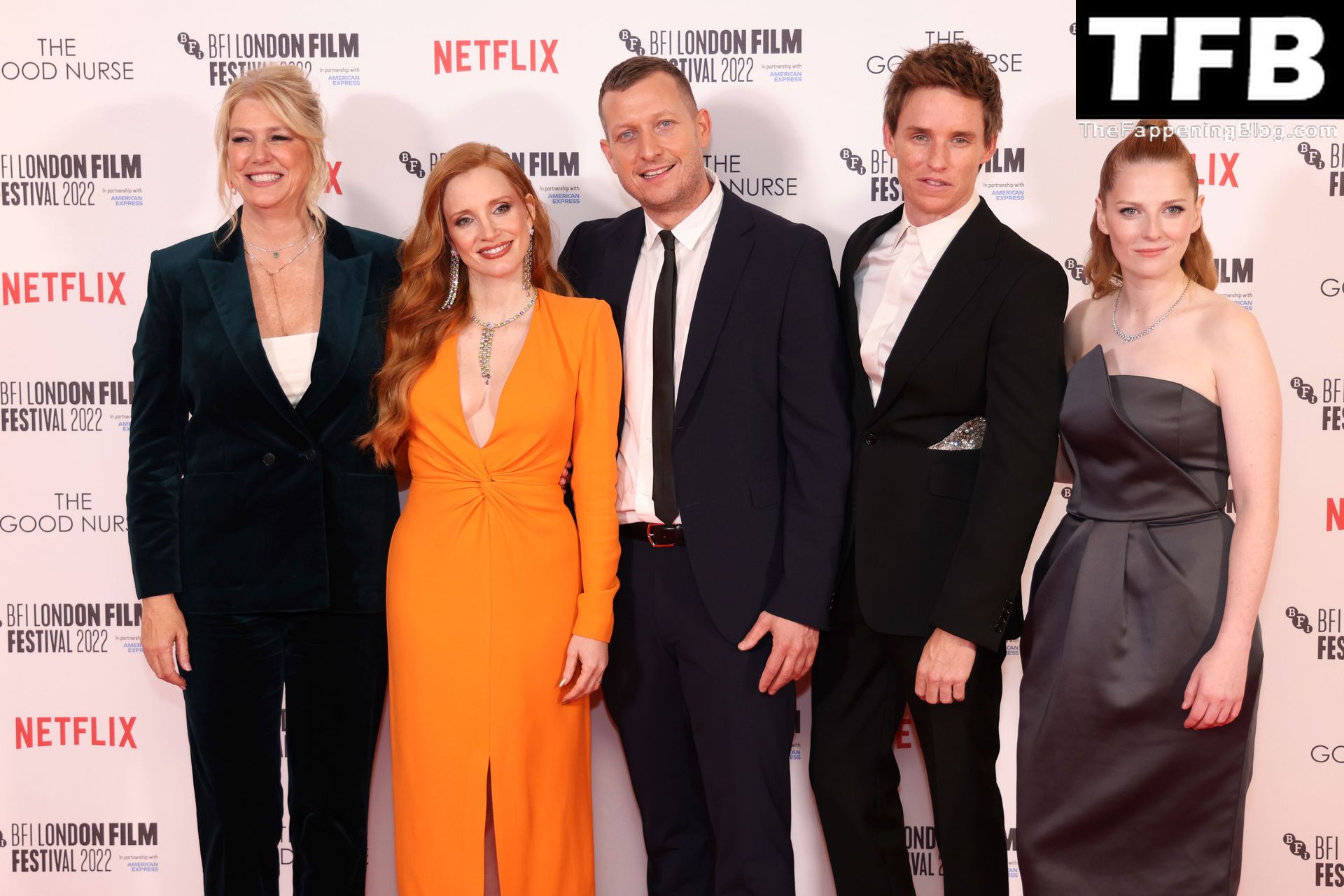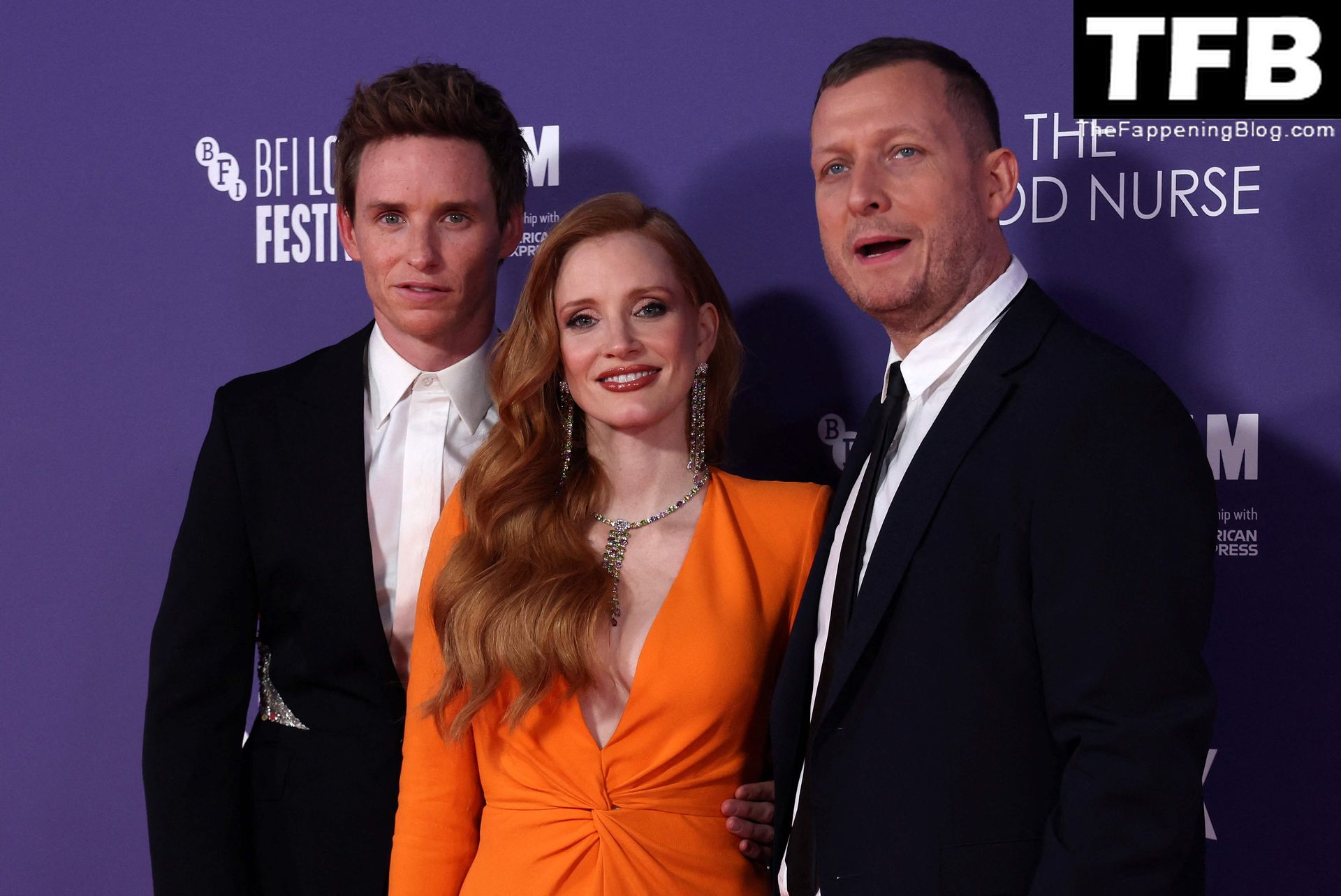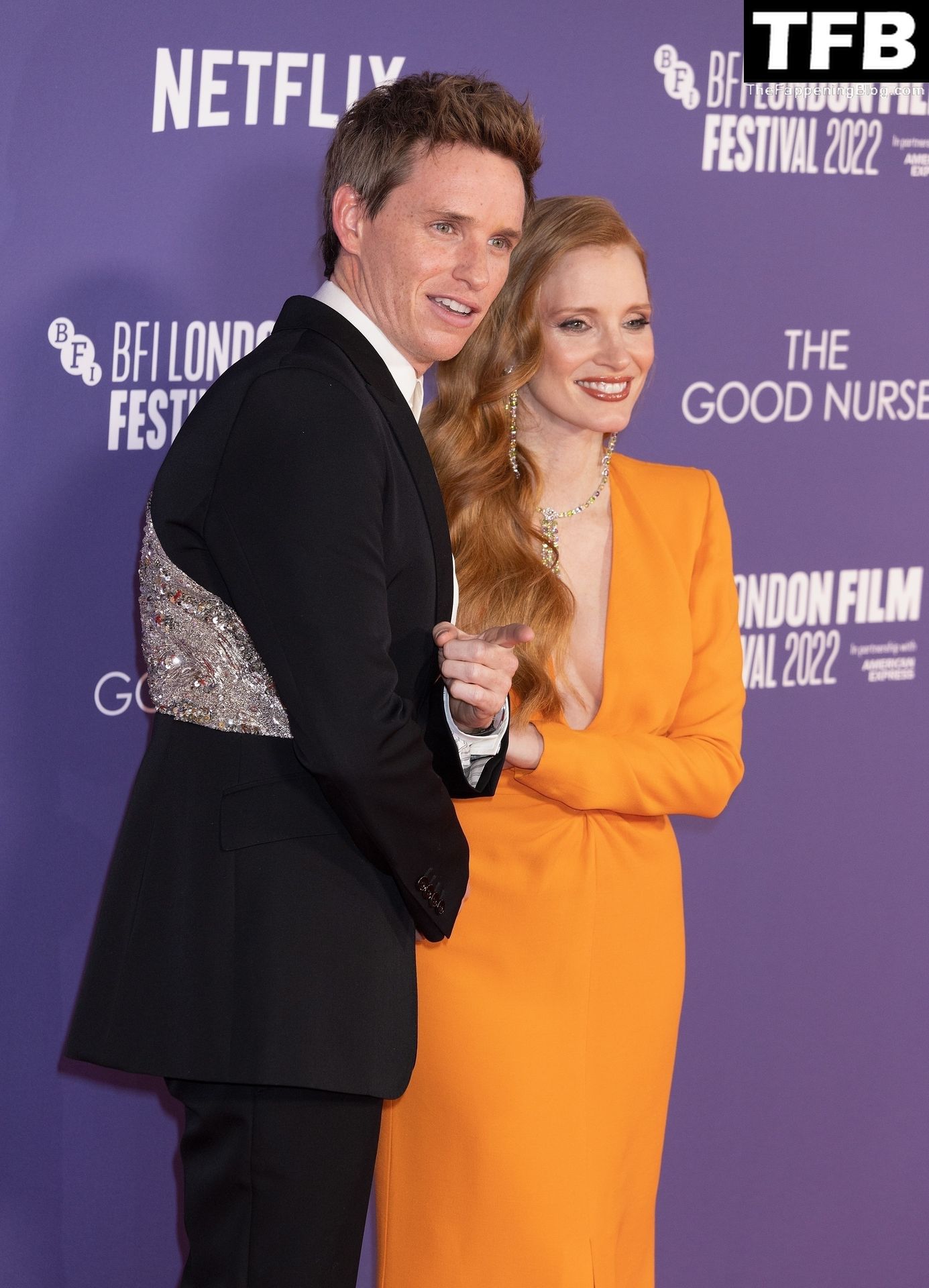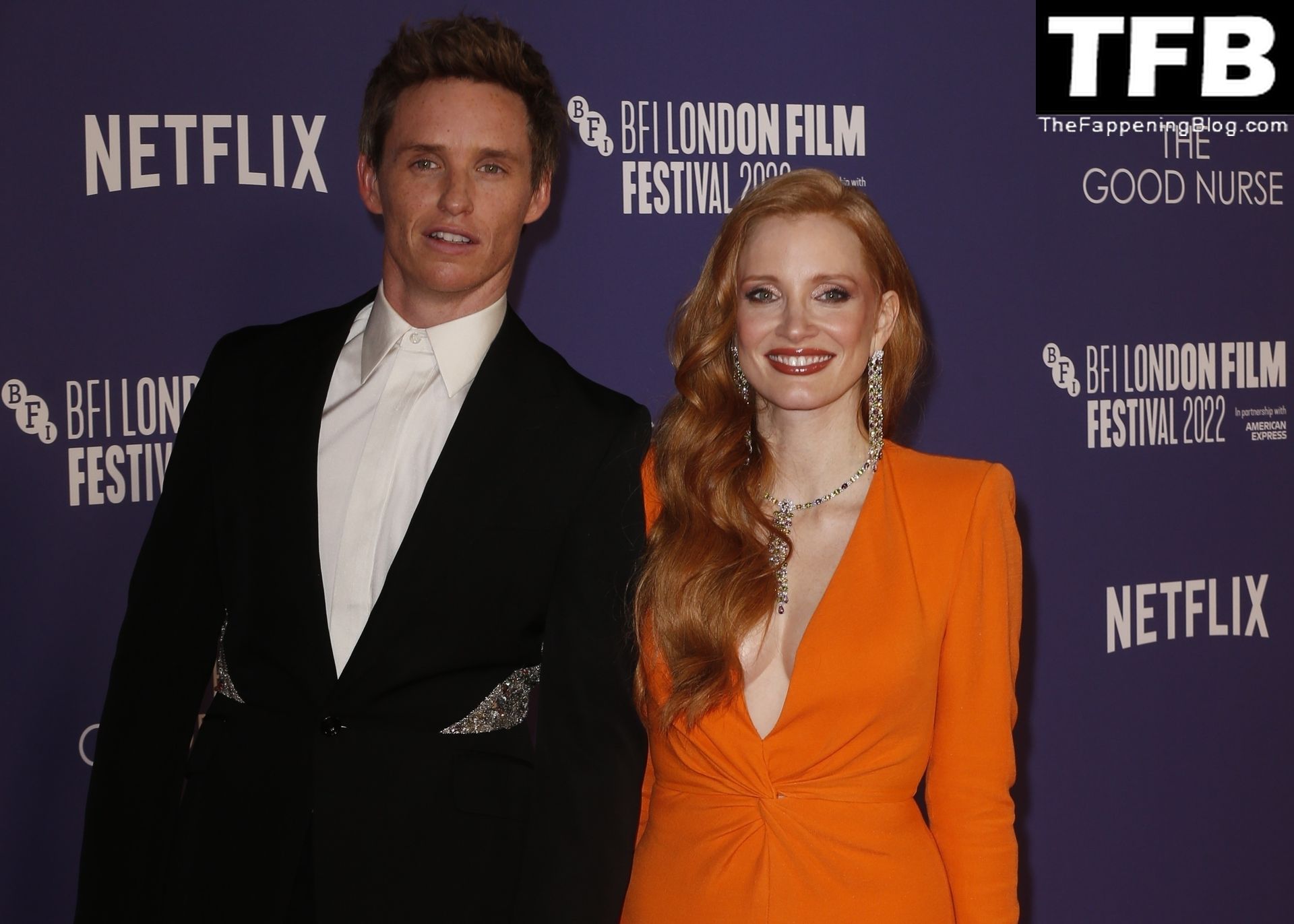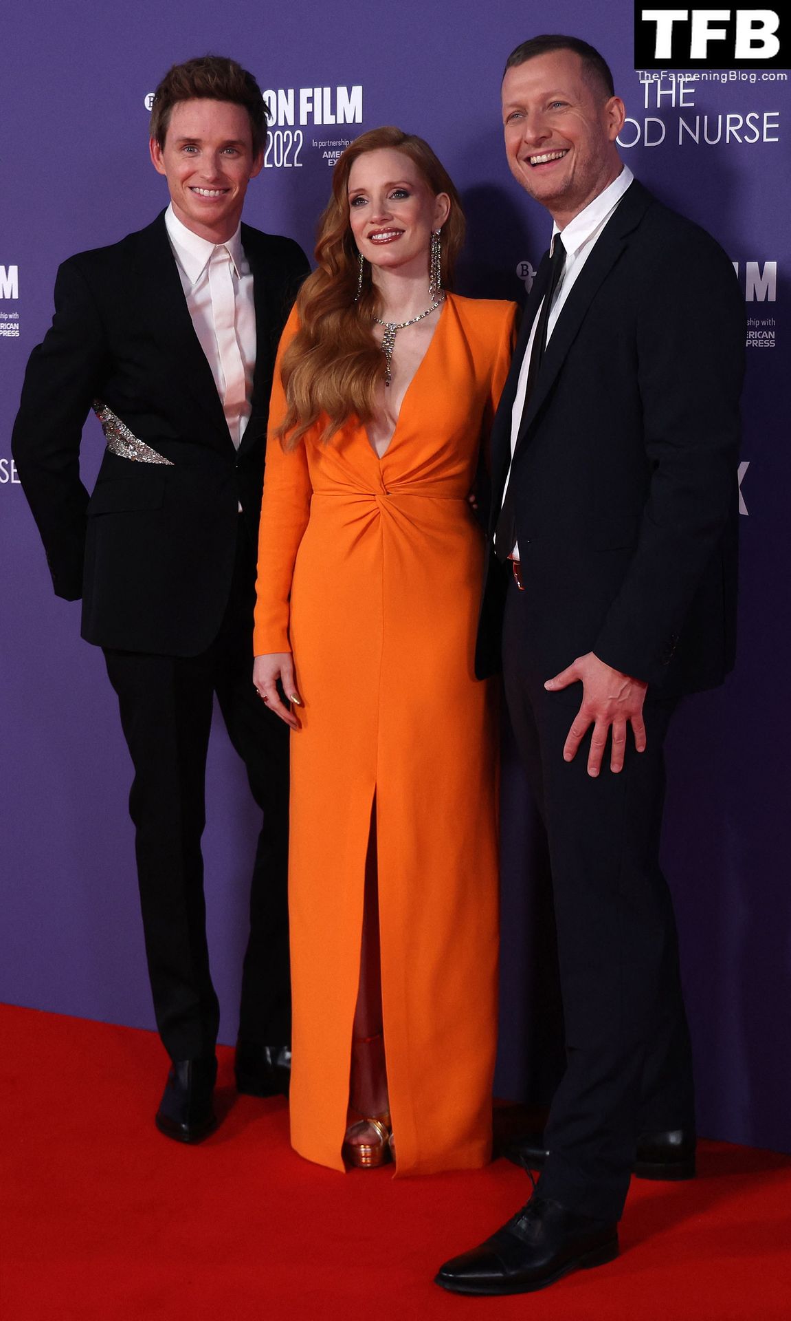 Jessica Chastain es vista llegando al estreno de “The Good Nurse” en el Festival de Cine de Londres, 10/10/2022.