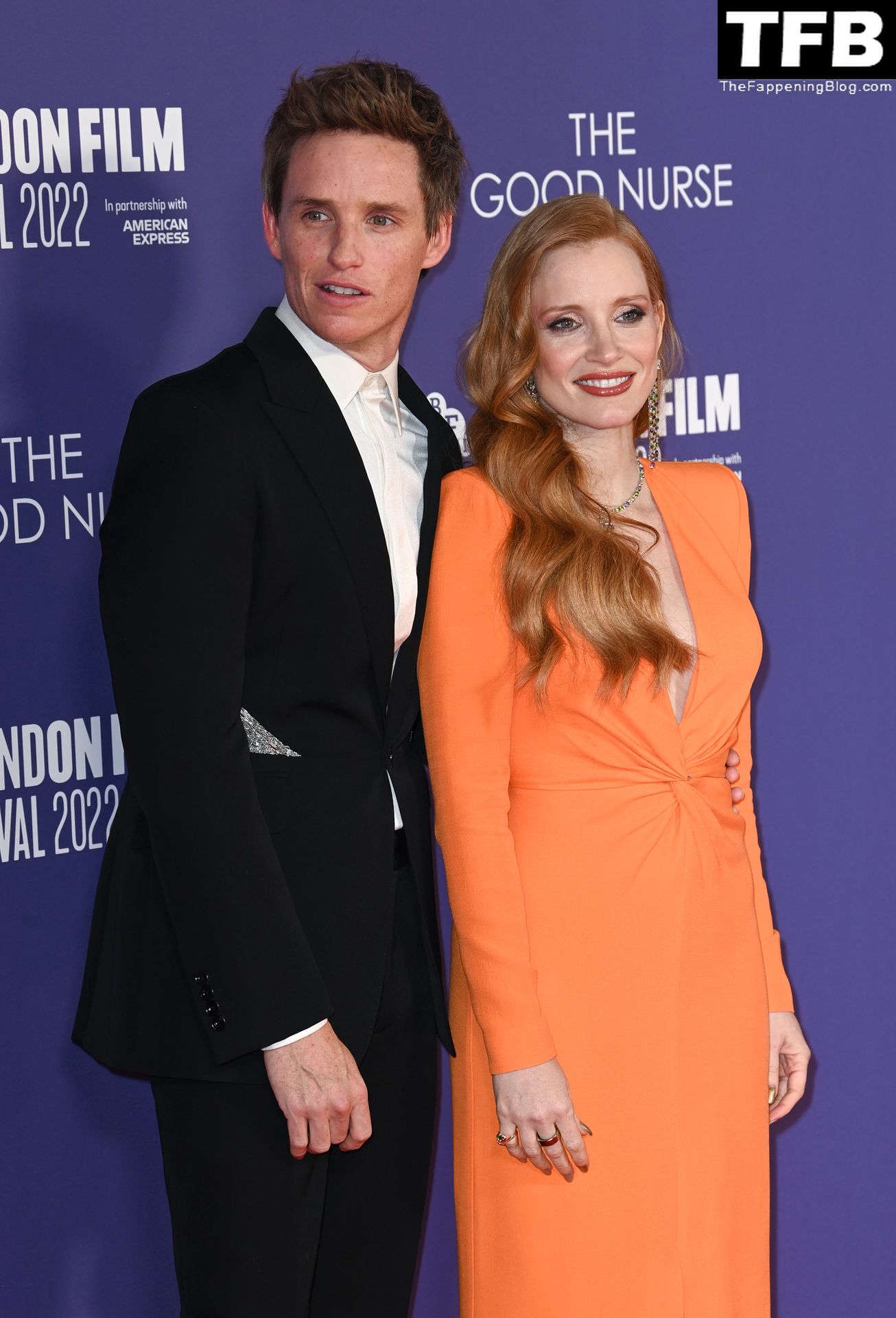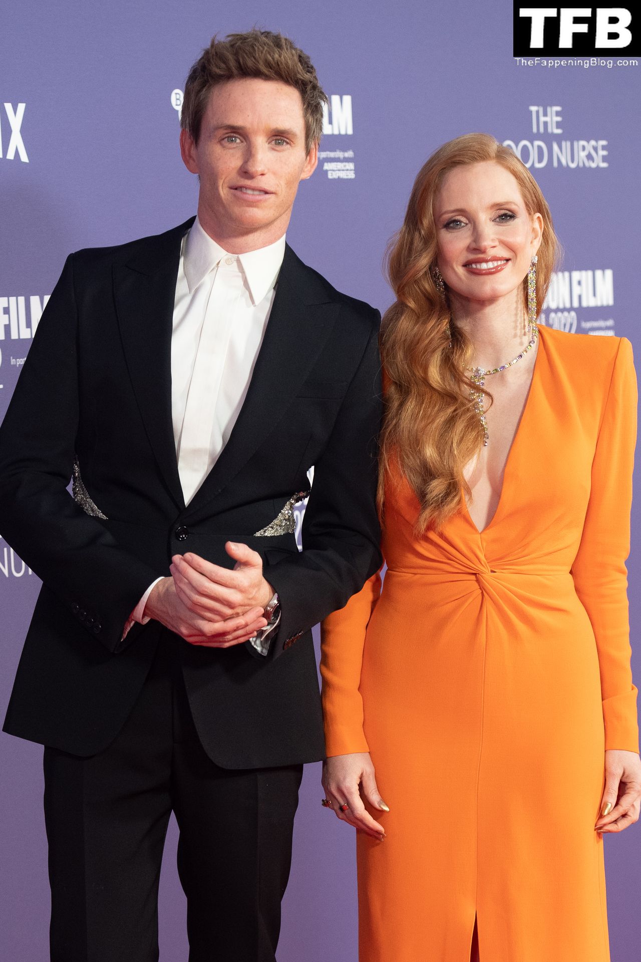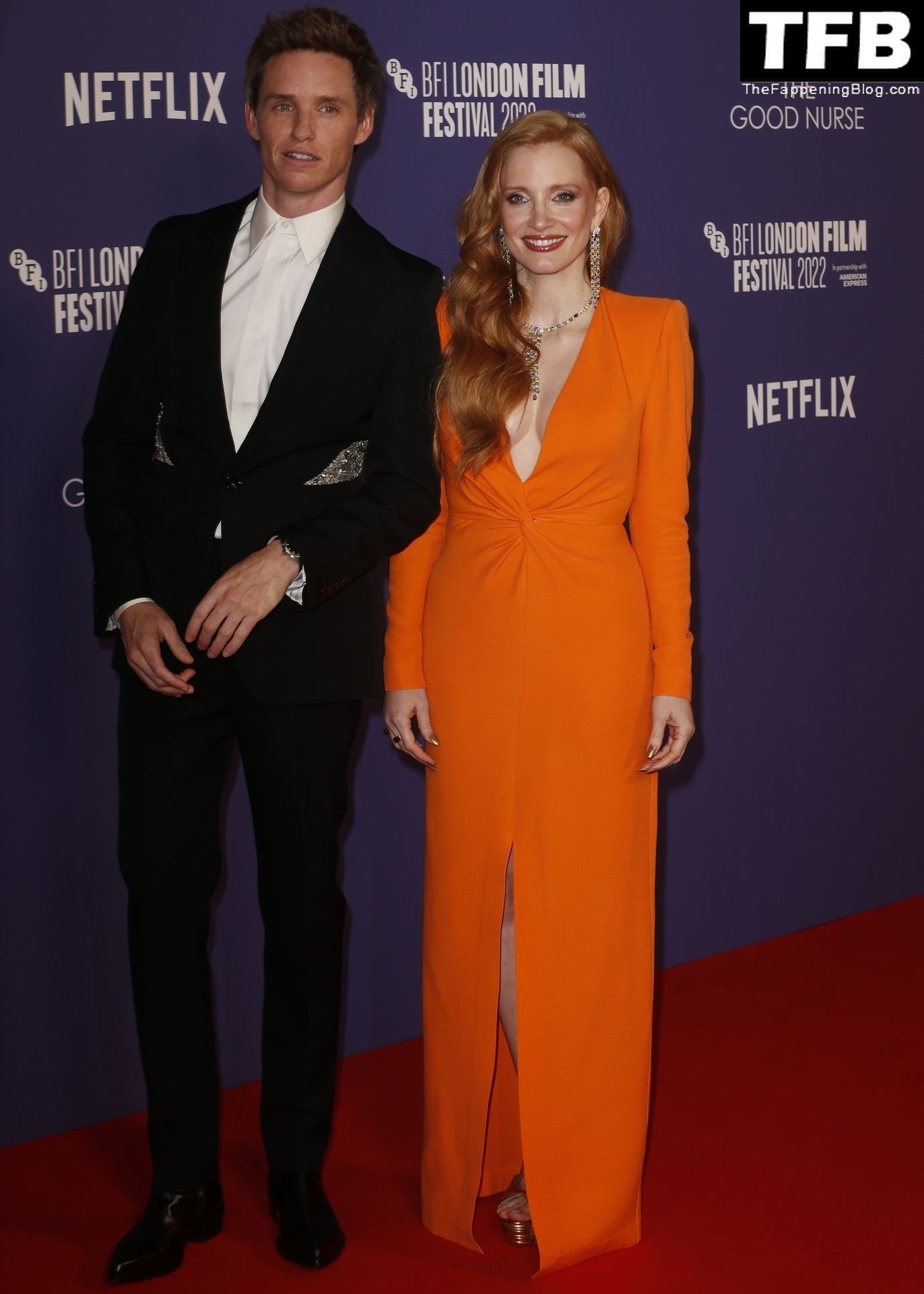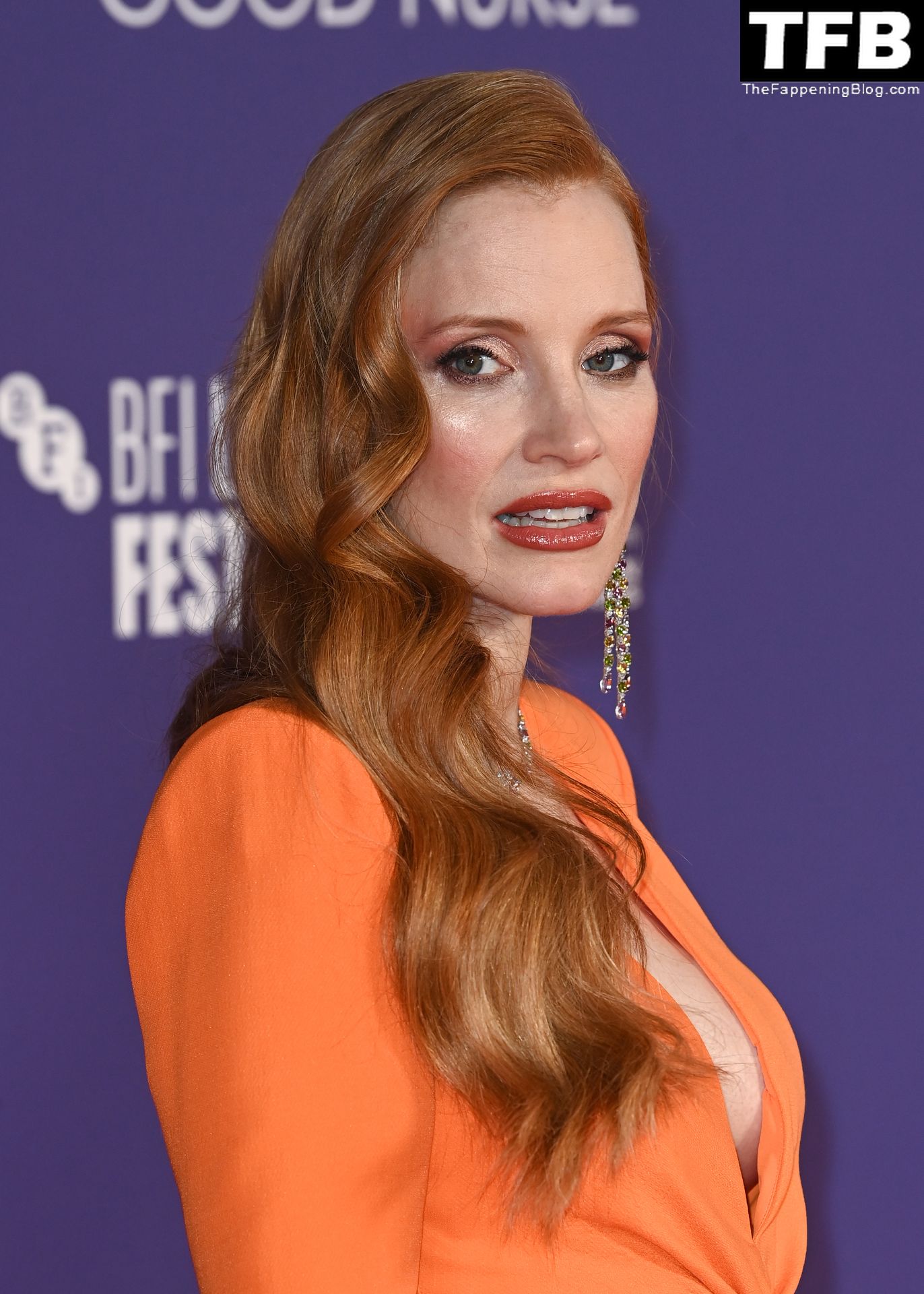 Jessica Chastain es vista llegando al estreno de “The Good Nurse” en el Festival de Cine de Londres, 10/10/2022.