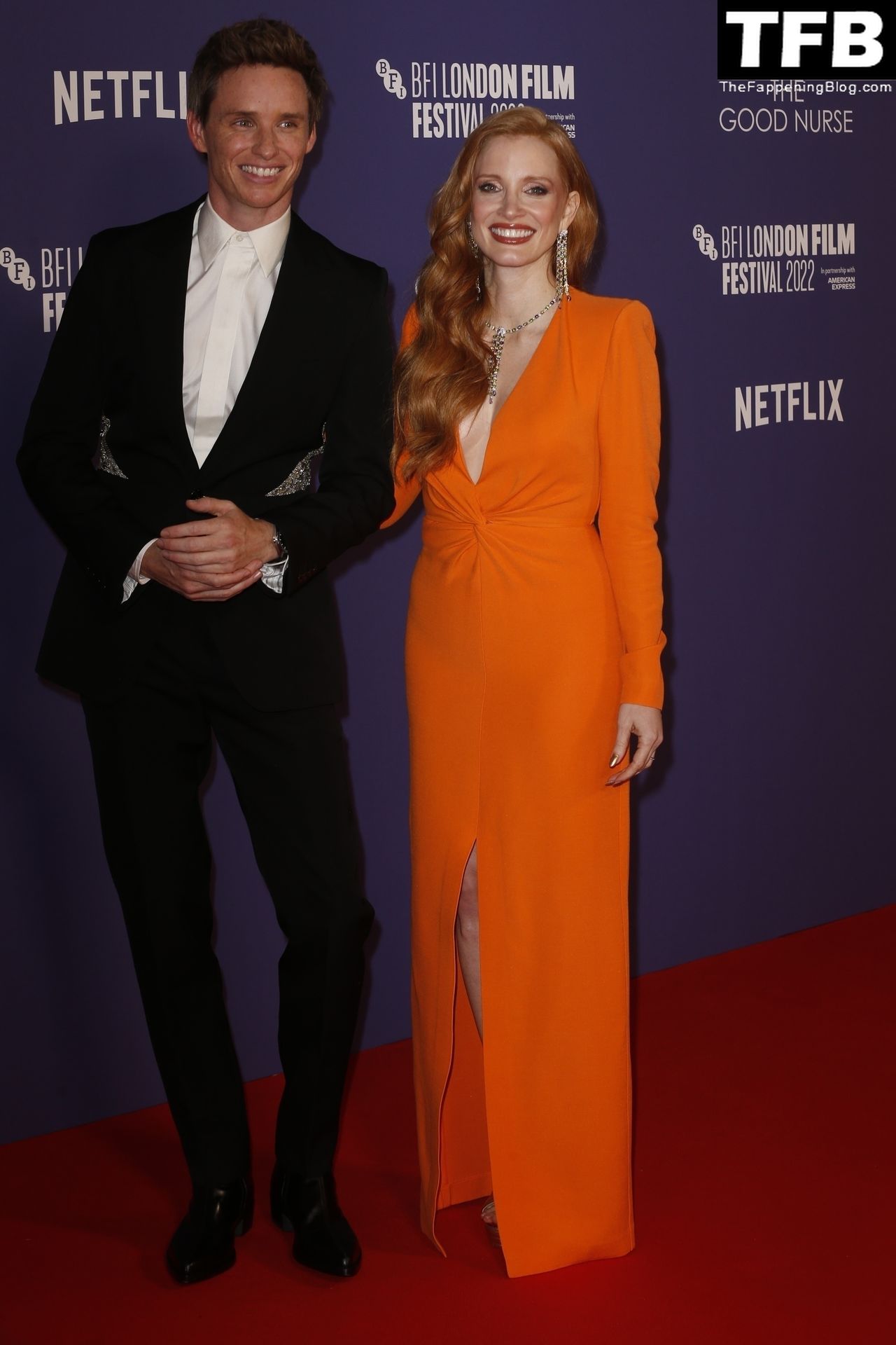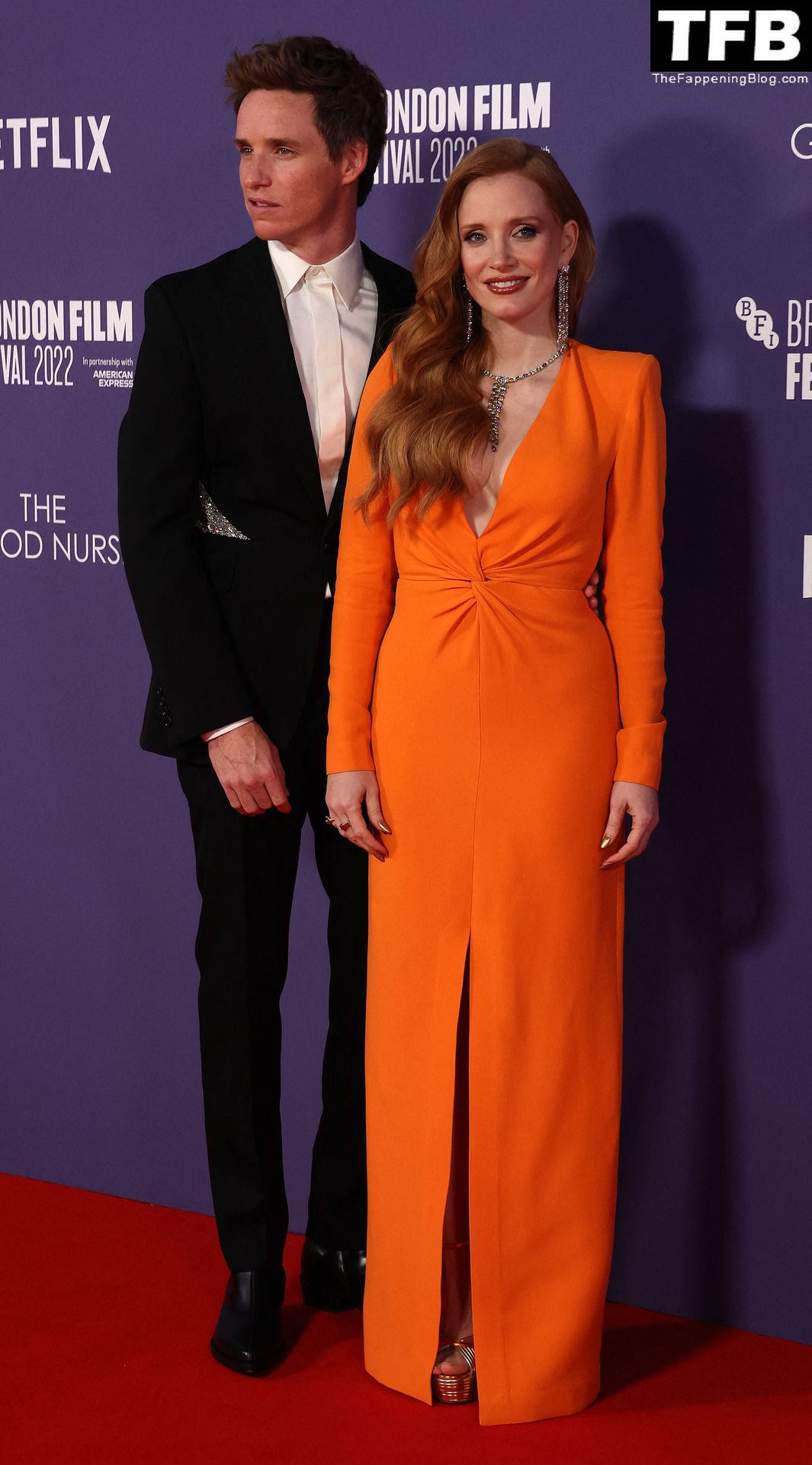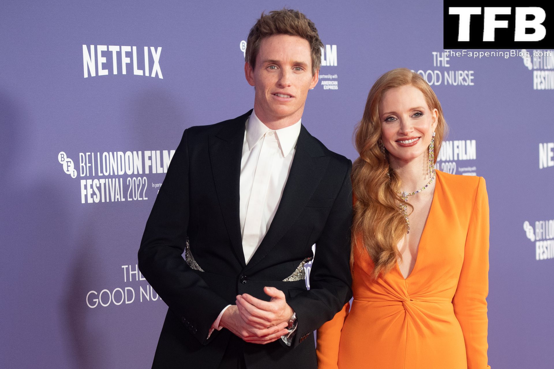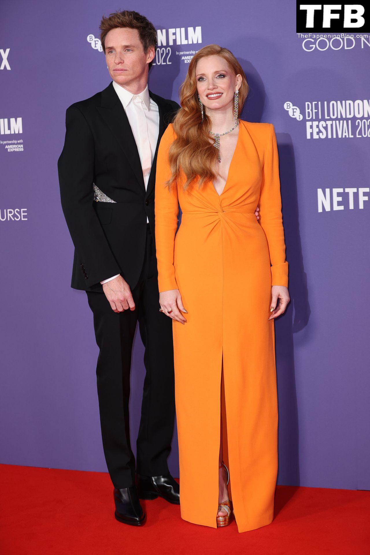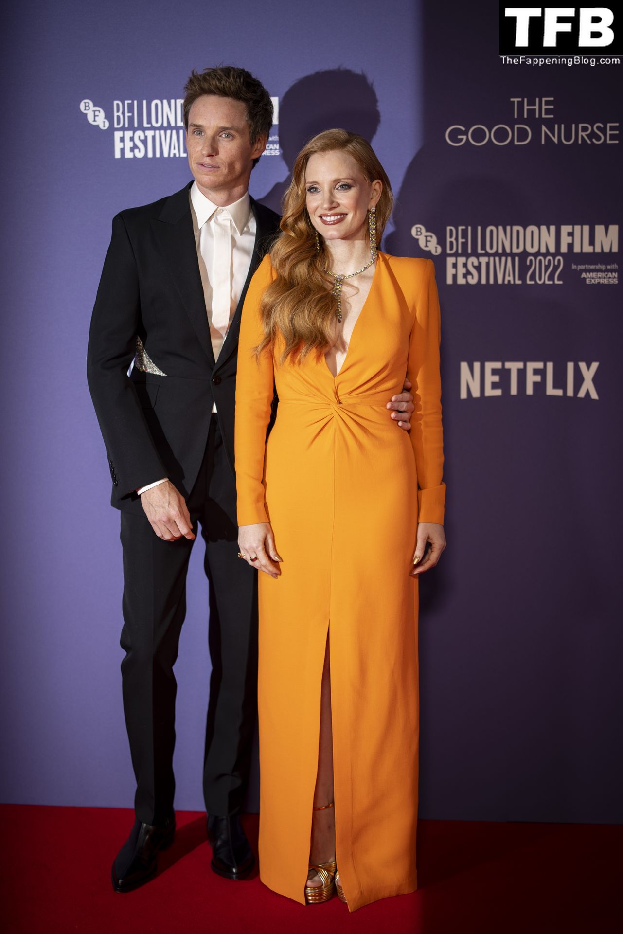 Jessica Chastain es vista llegando al estreno de “The Good Nurse” en el Festival de Cine de Londres, 10/10/2022.