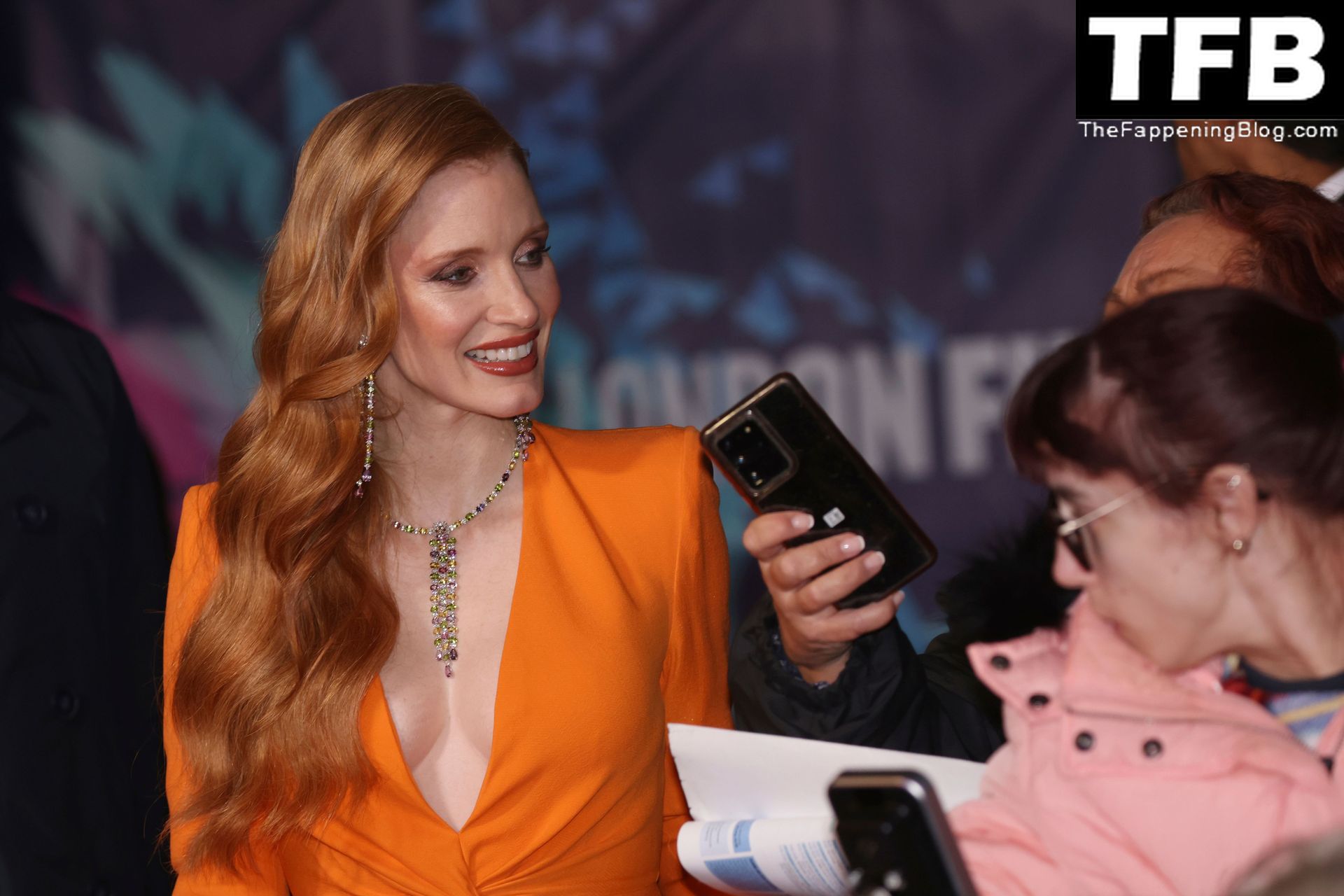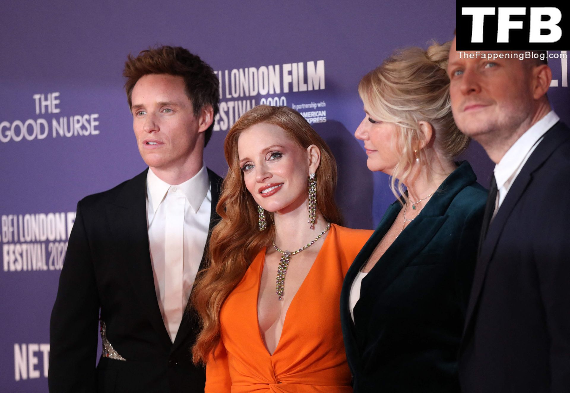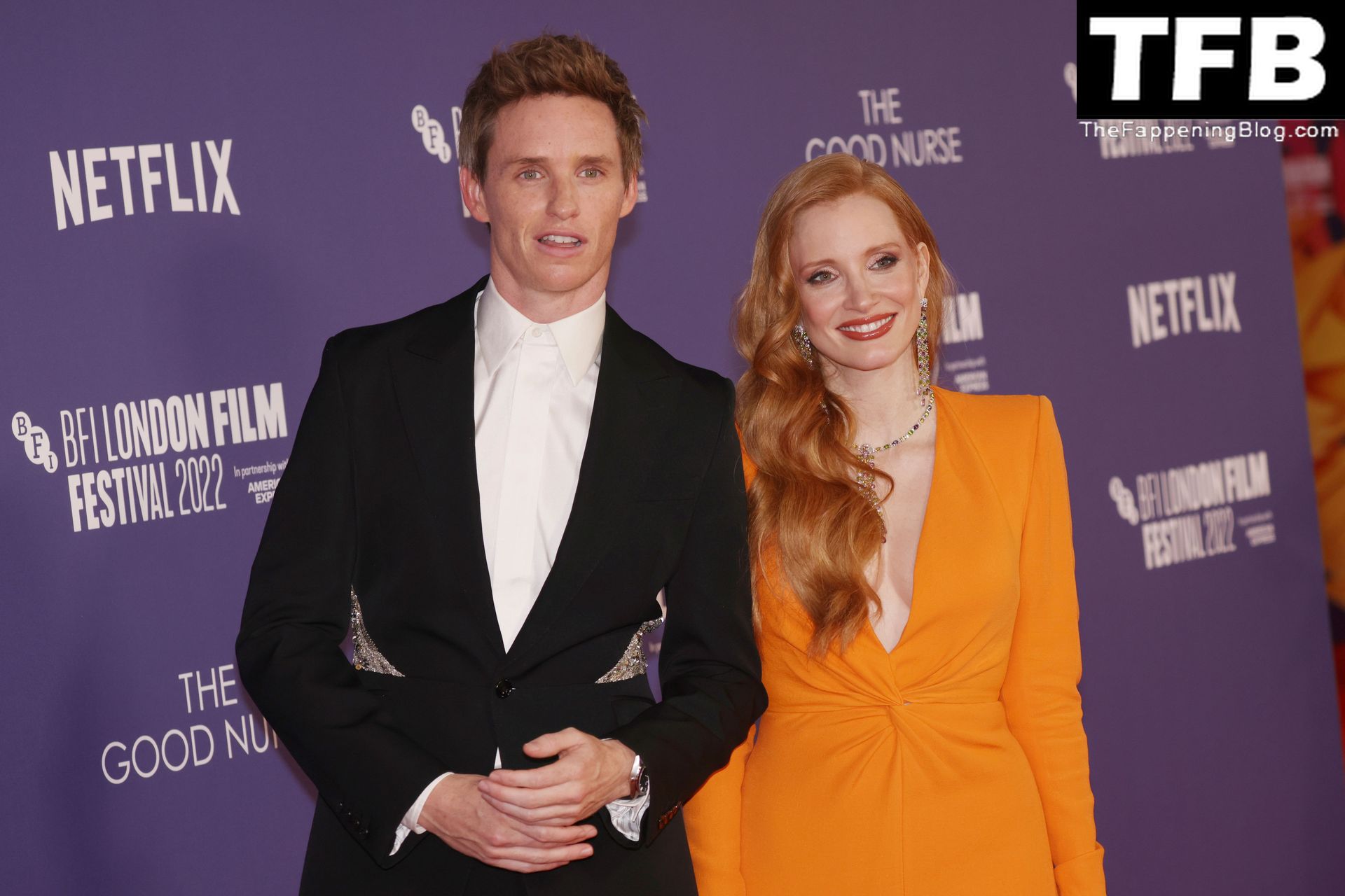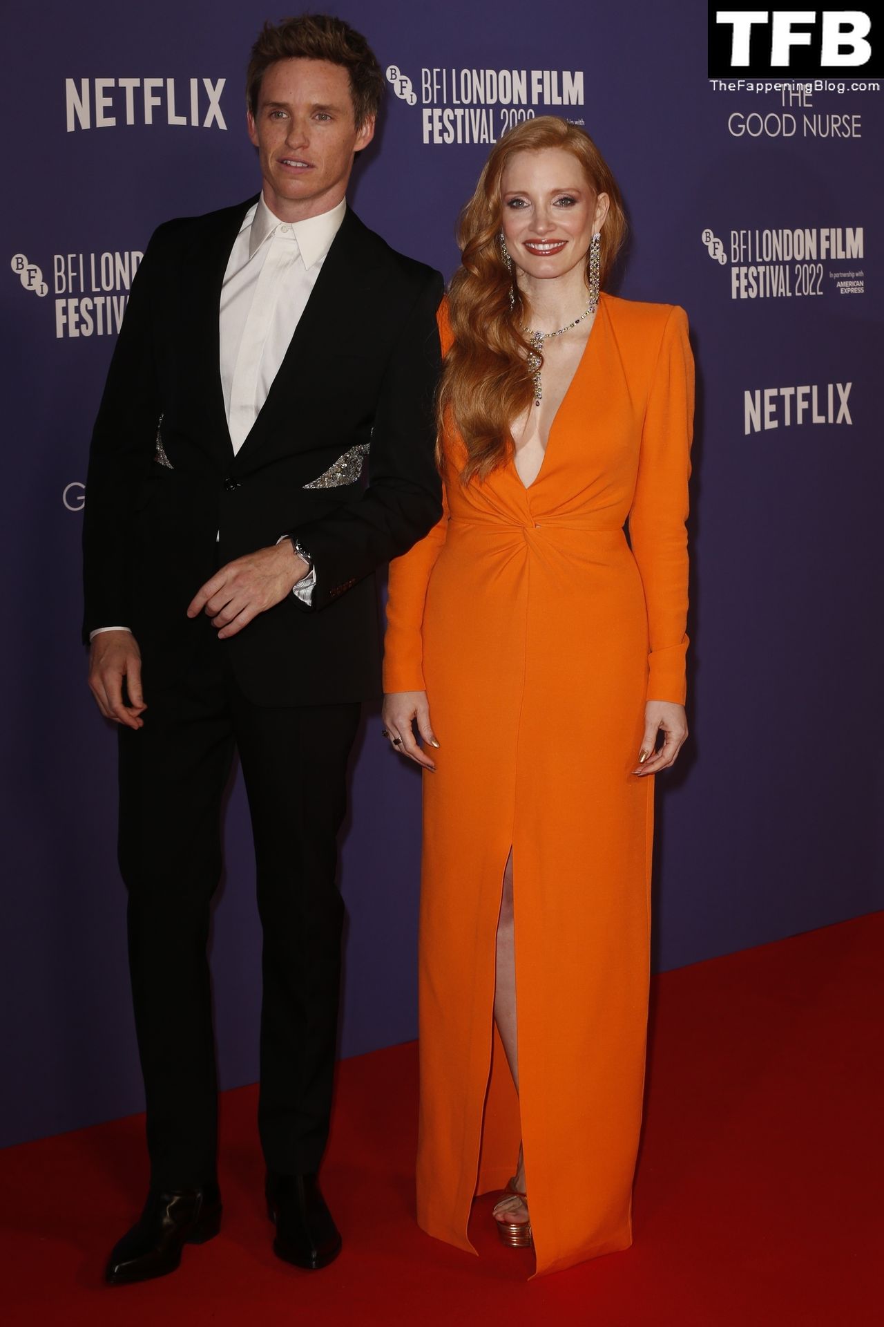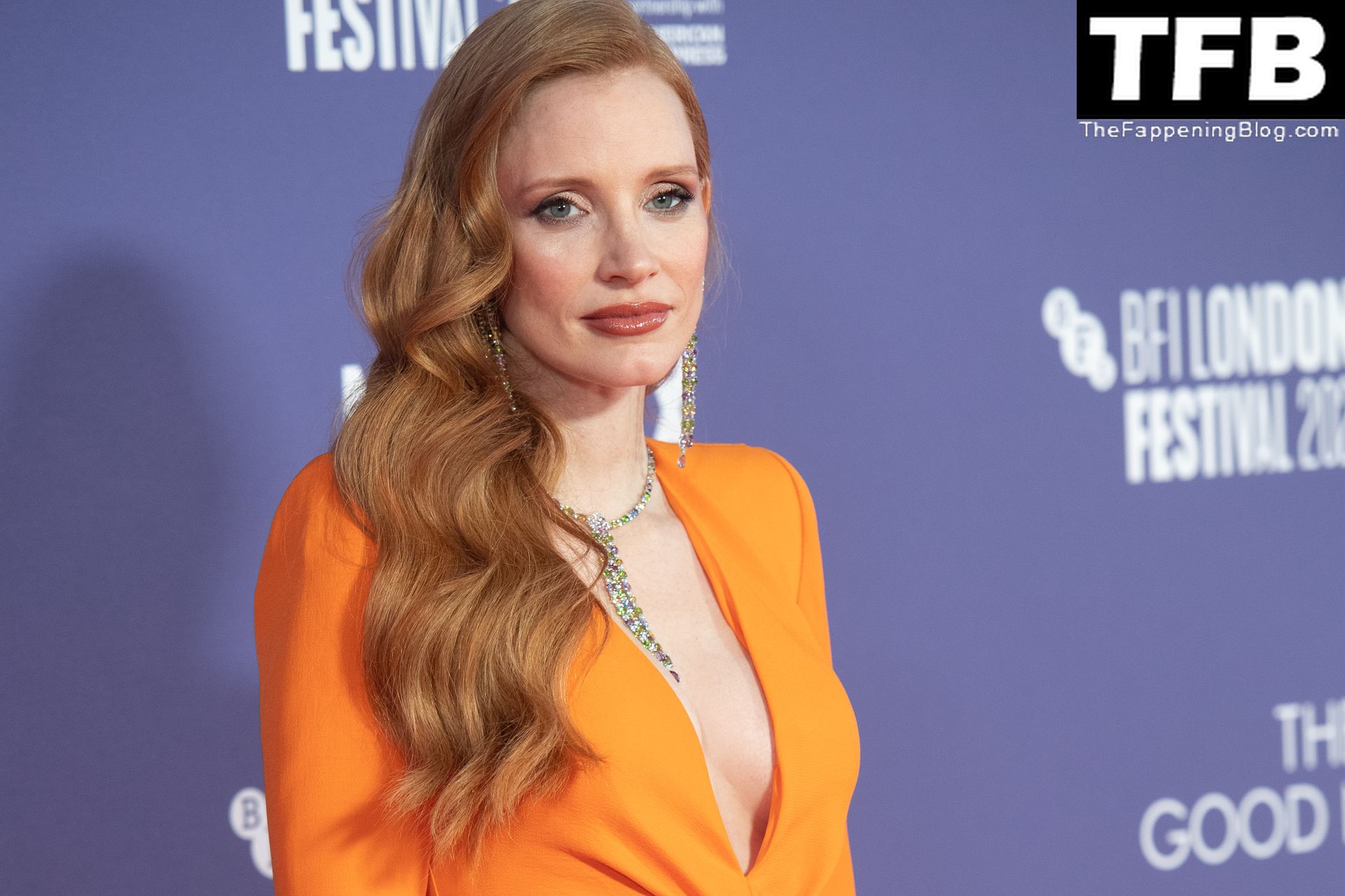Jessica Chastain es vista llegando al estreno de “The Good Nurse” en el Festival de Cine de Londres, 10/10/2022.