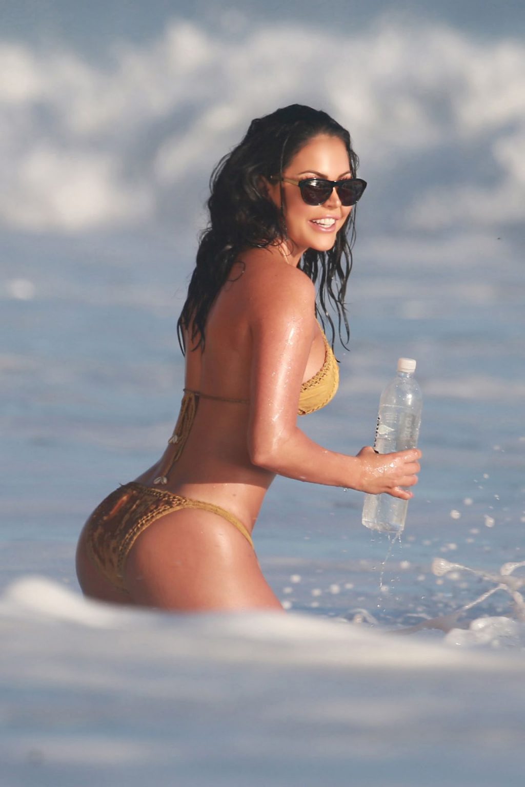 Modelo australiana de trajes de baño Jessica Cribbon muestra su increíble cuerpo en bikini en el set de una sesión de fotos de 138 Water en Malibu, 19/11/2019.