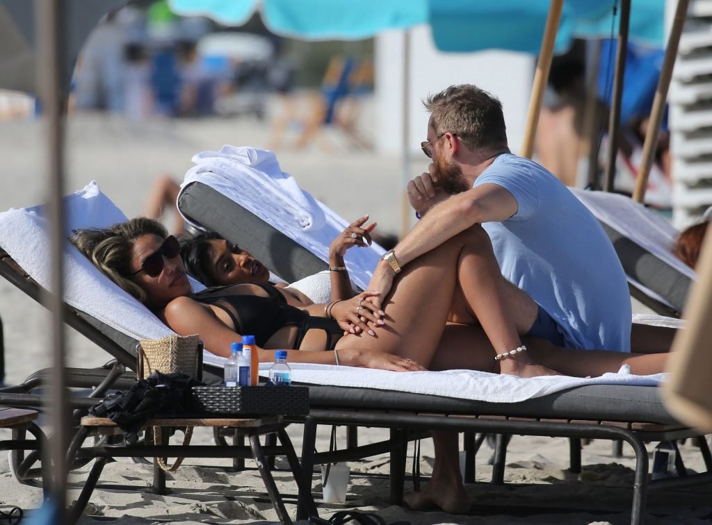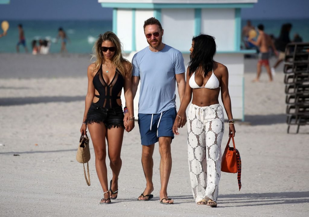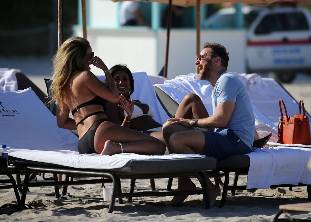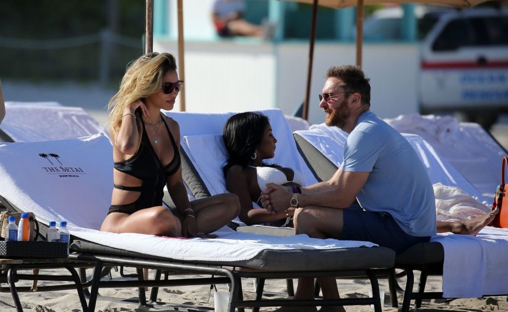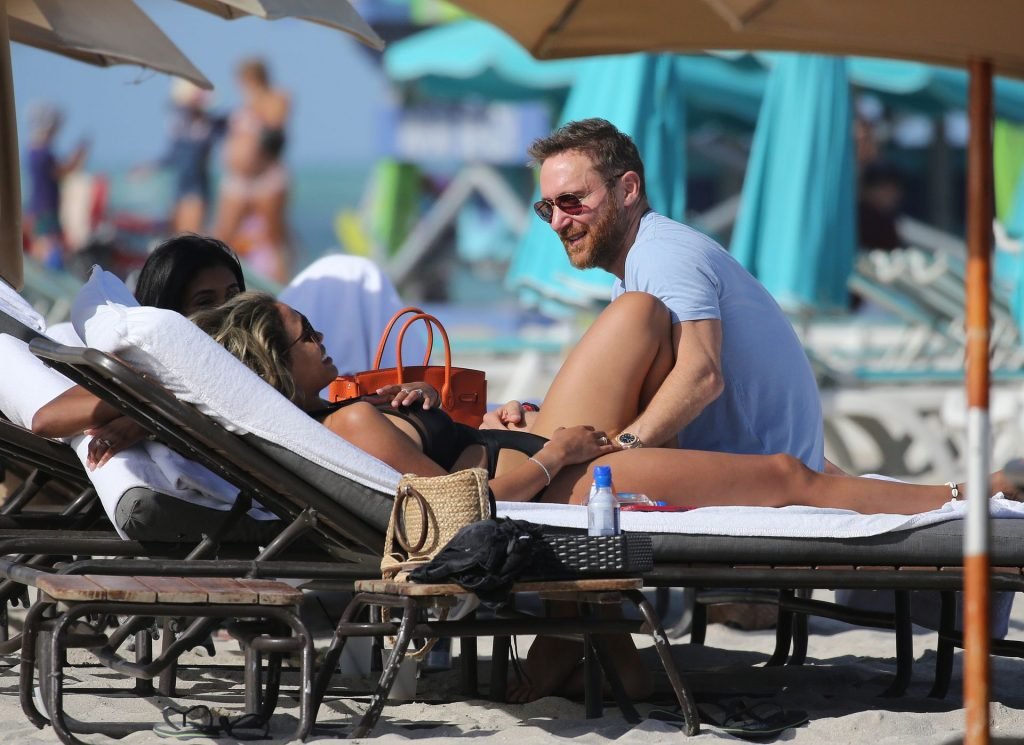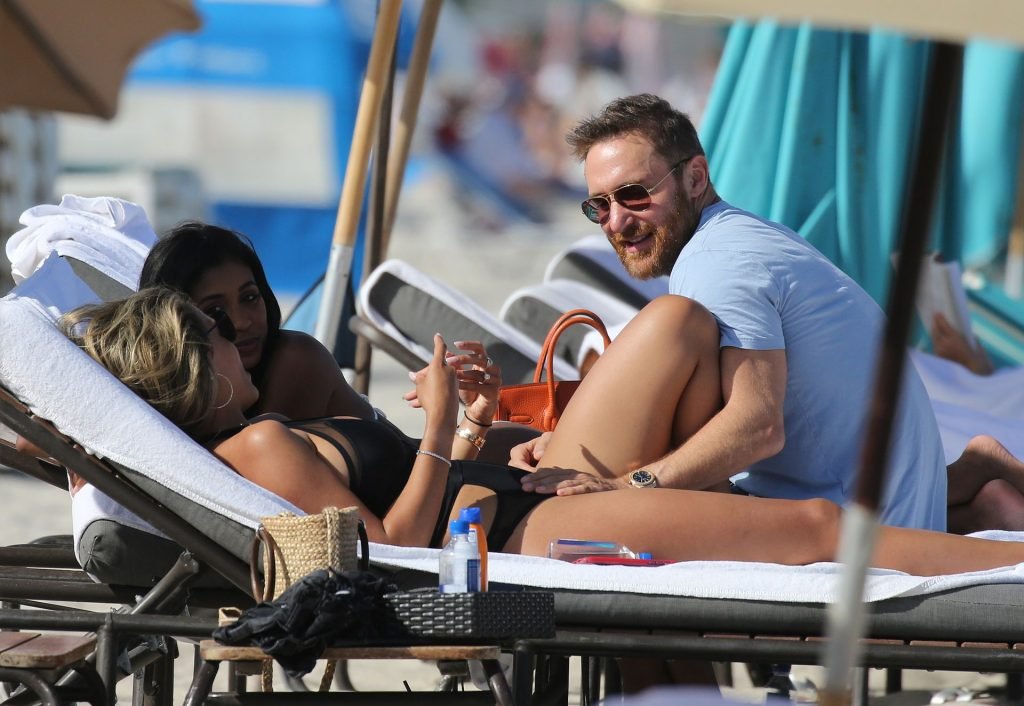 El DJ mundialmente famoso David Guetta no puede quitarle las manos a su novia Jessica Ledon en la playa de Miami, 30/03/2019.