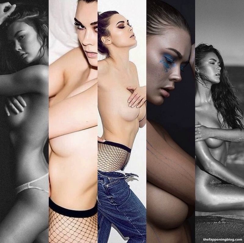 La modelo francesa Jessica Nazarenus complace a los aficionados con nuevas fotos casi desnuda en lencería y bikinis.