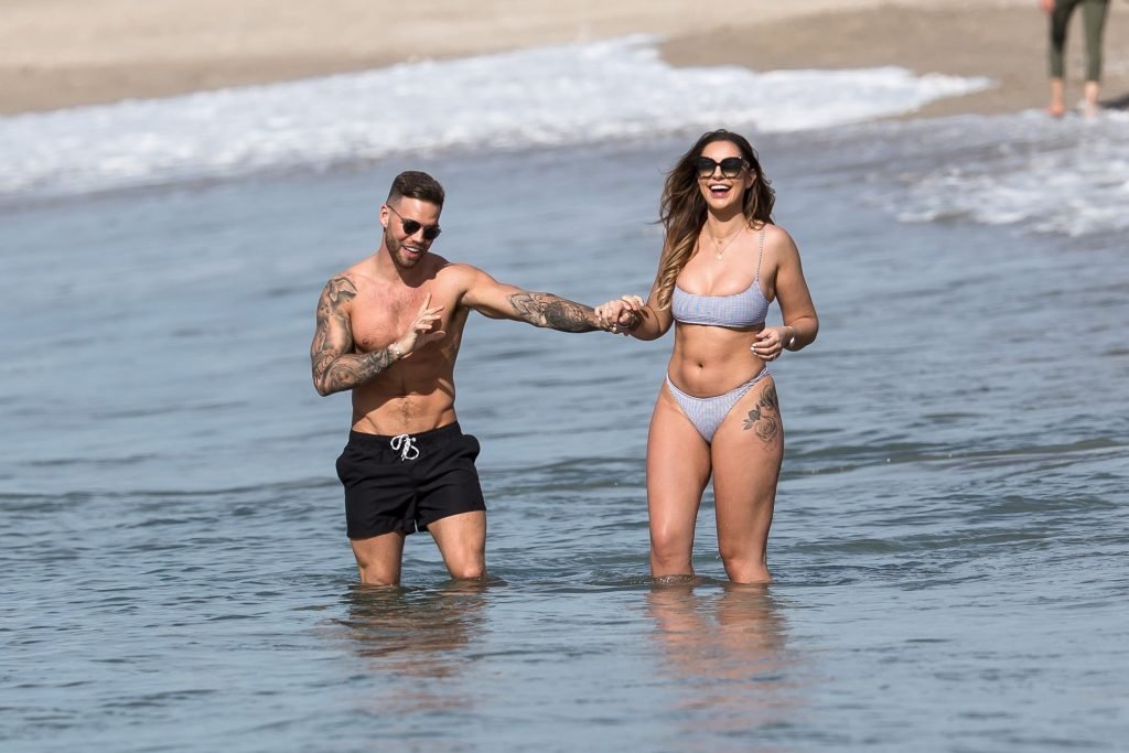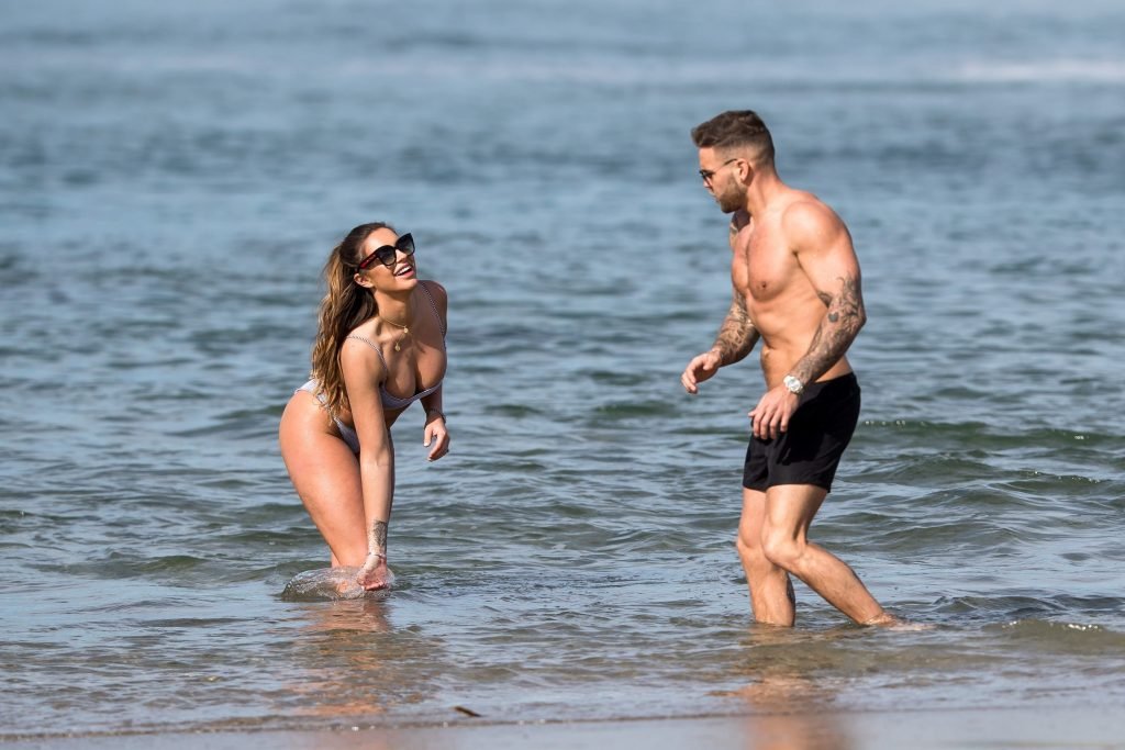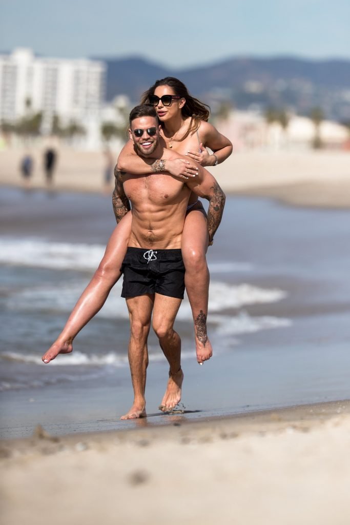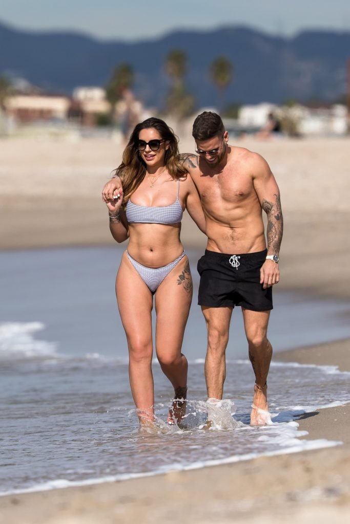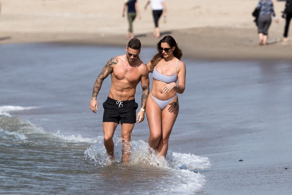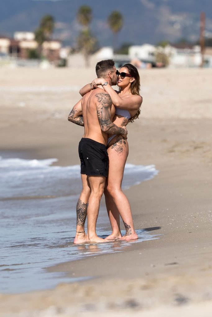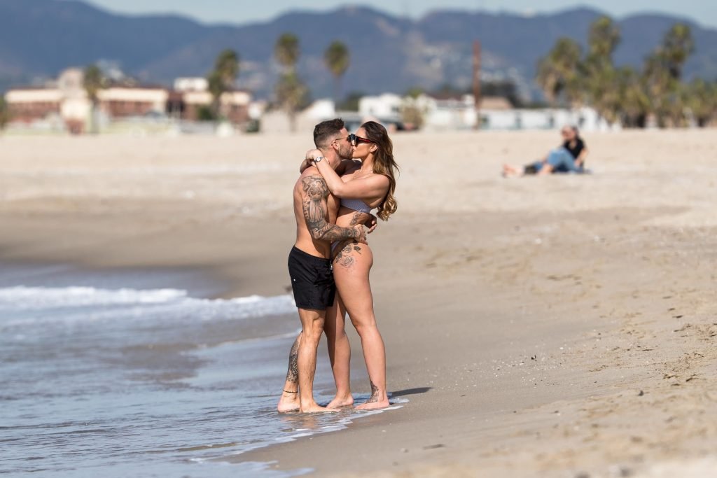 ‘La estrella de Love Island’ Jessica Rose Shears, 24, y su prometido Dominic Lever muestran muestras públicas de afecto en la playa de Santa Mónica, California, 25/01/2018.