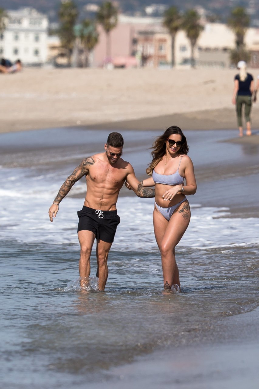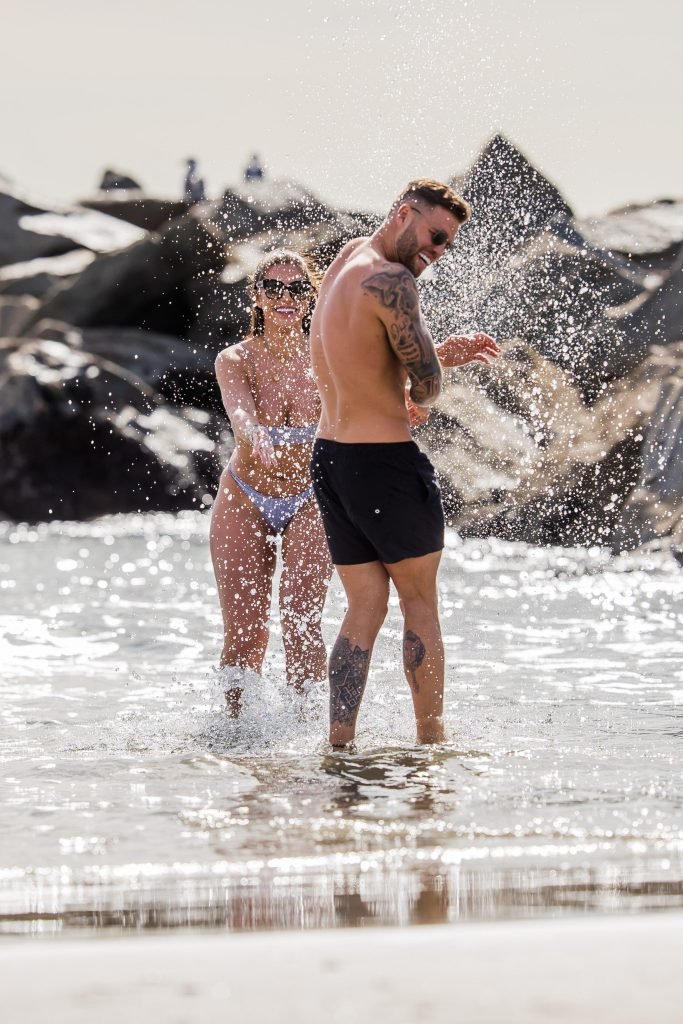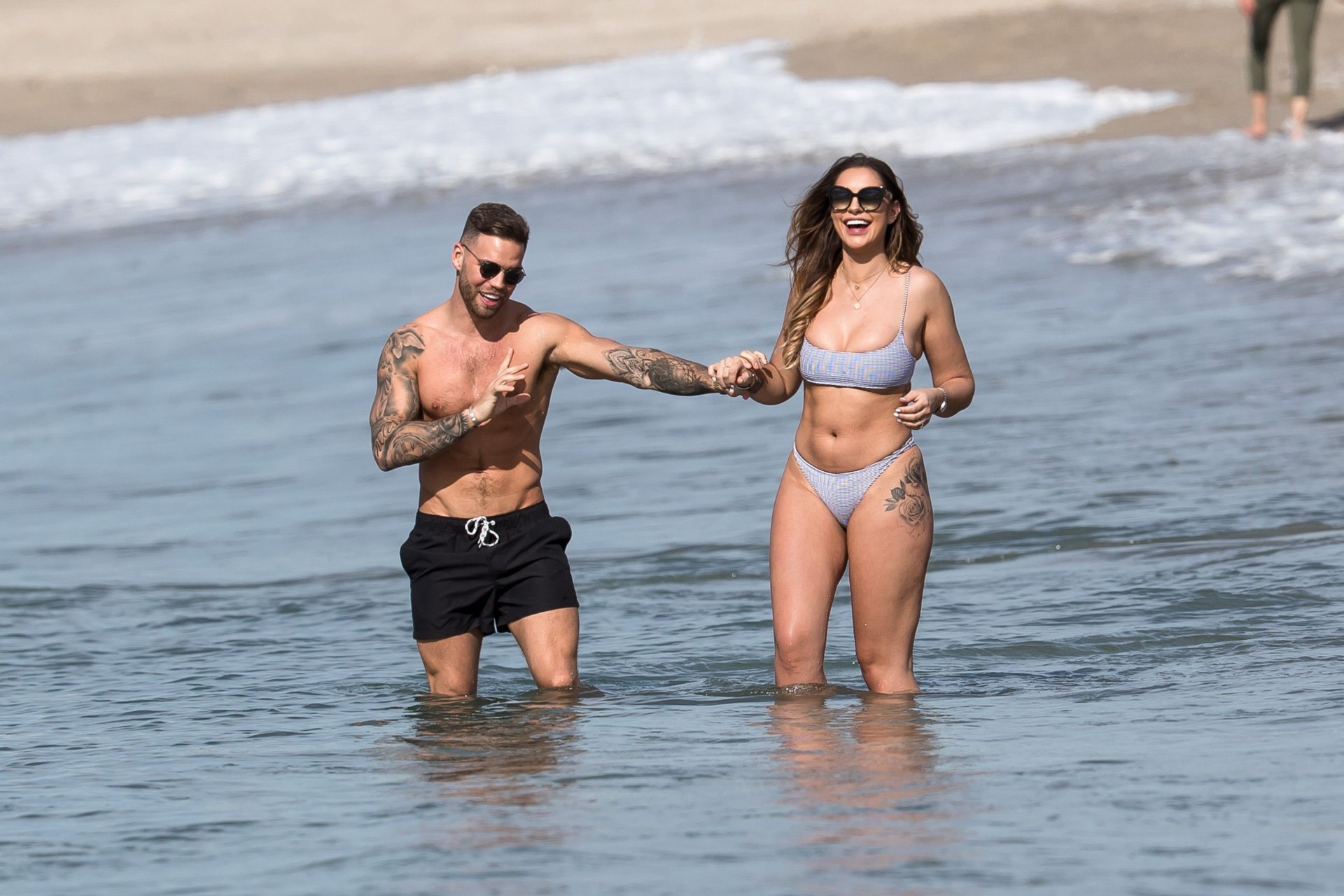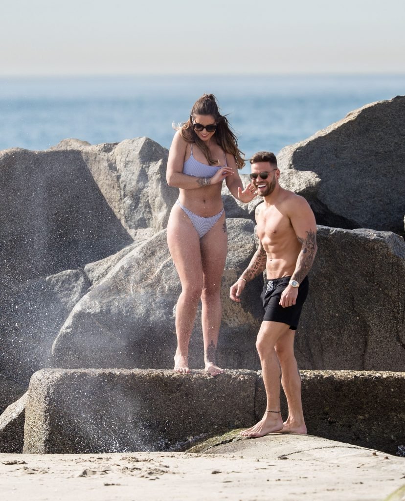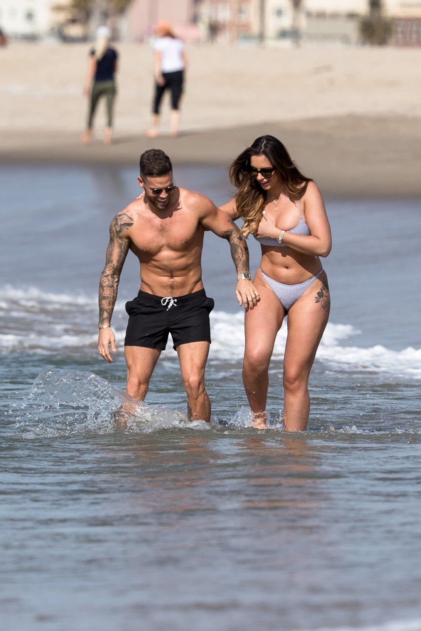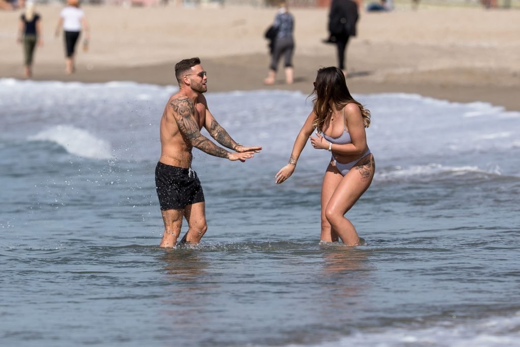 ‘La estrella de Love Island’ Jessica Rose Shears, 24, y su prometido Dominic Lever muestran muestras públicas de afecto en la playa de Santa Mónica, California, 25/01/2018.
