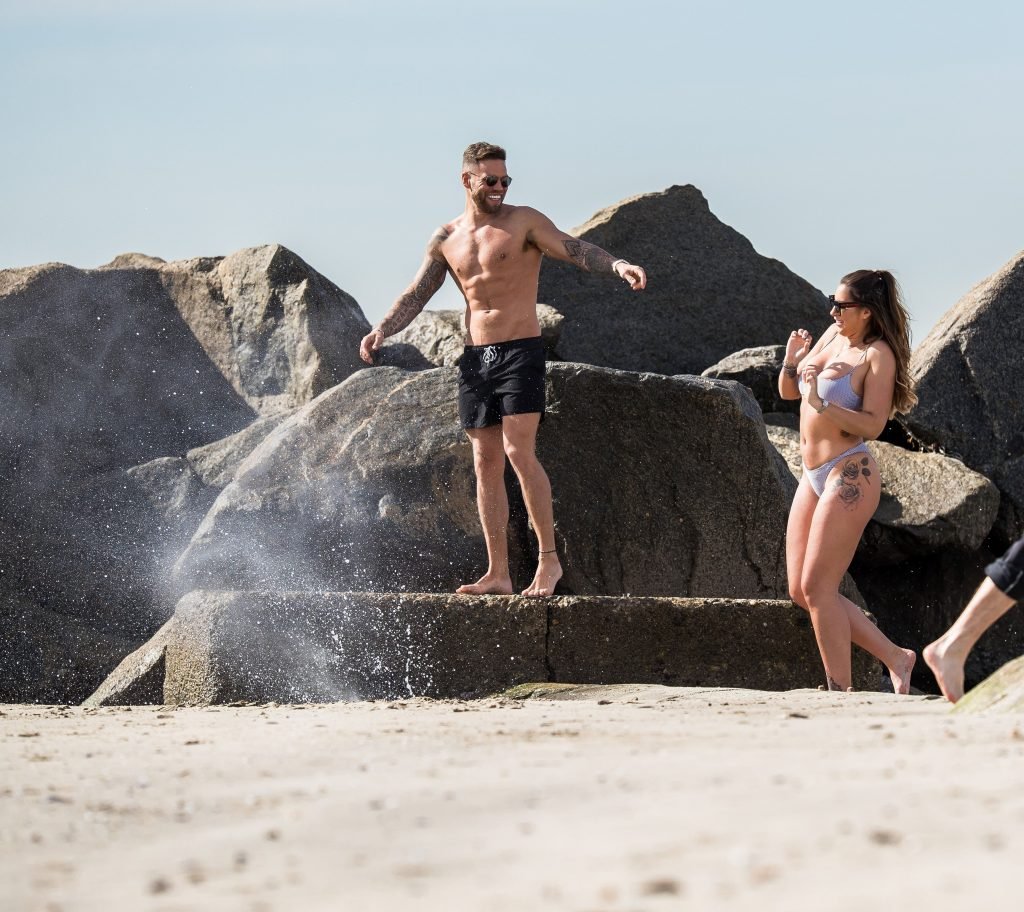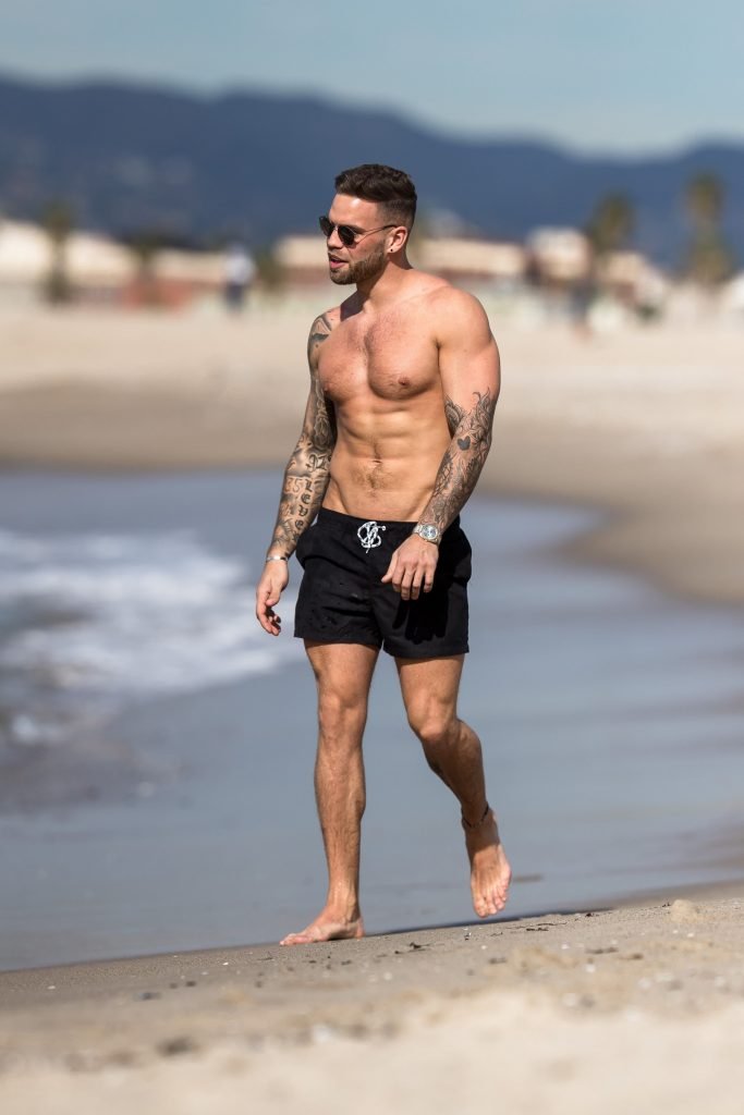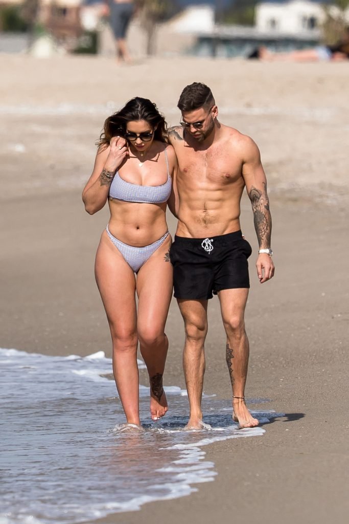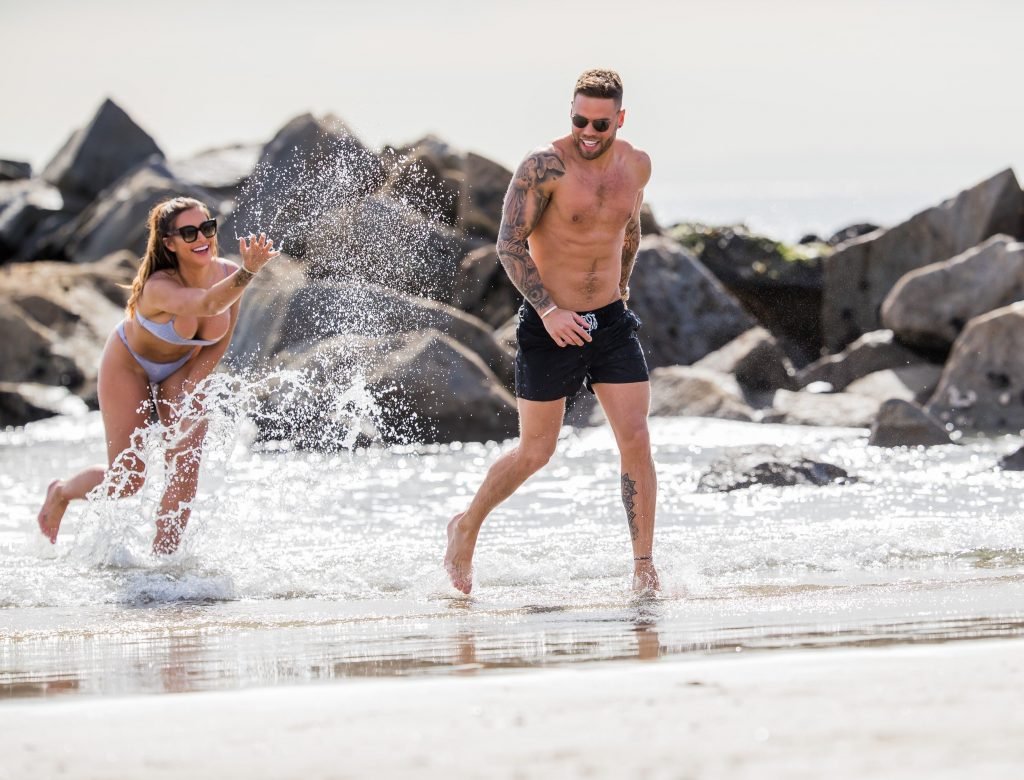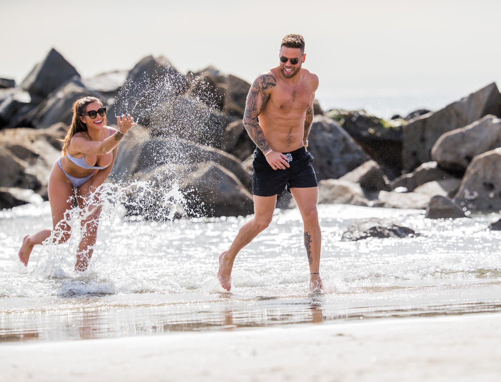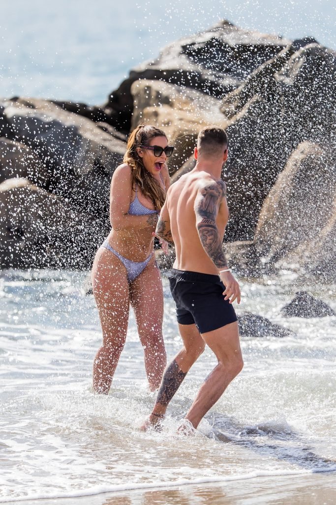 ‘La estrella de Love Island’ Jessica Rose Shears, 24, y su prometido Dominic Lever muestran muestras públicas de afecto en la playa de Santa Mónica, California, 25/01/2018.