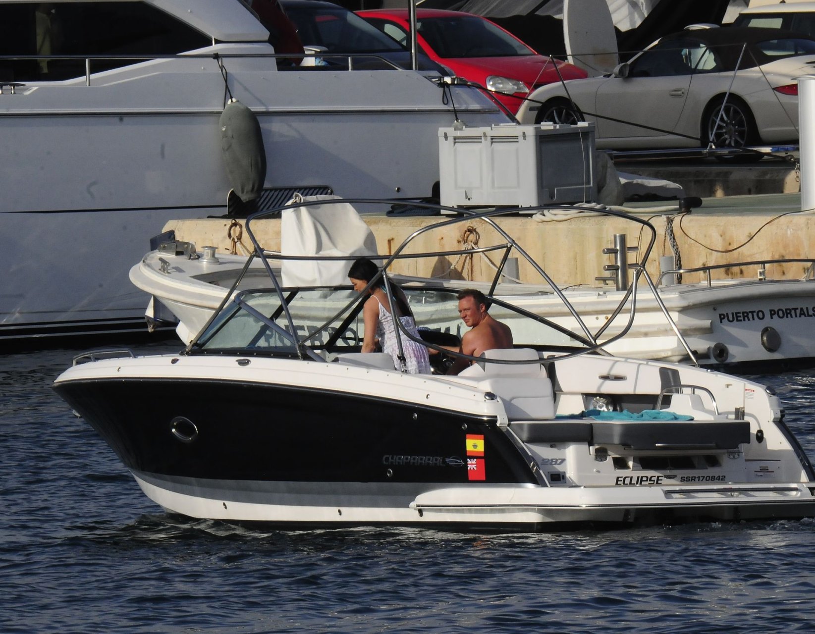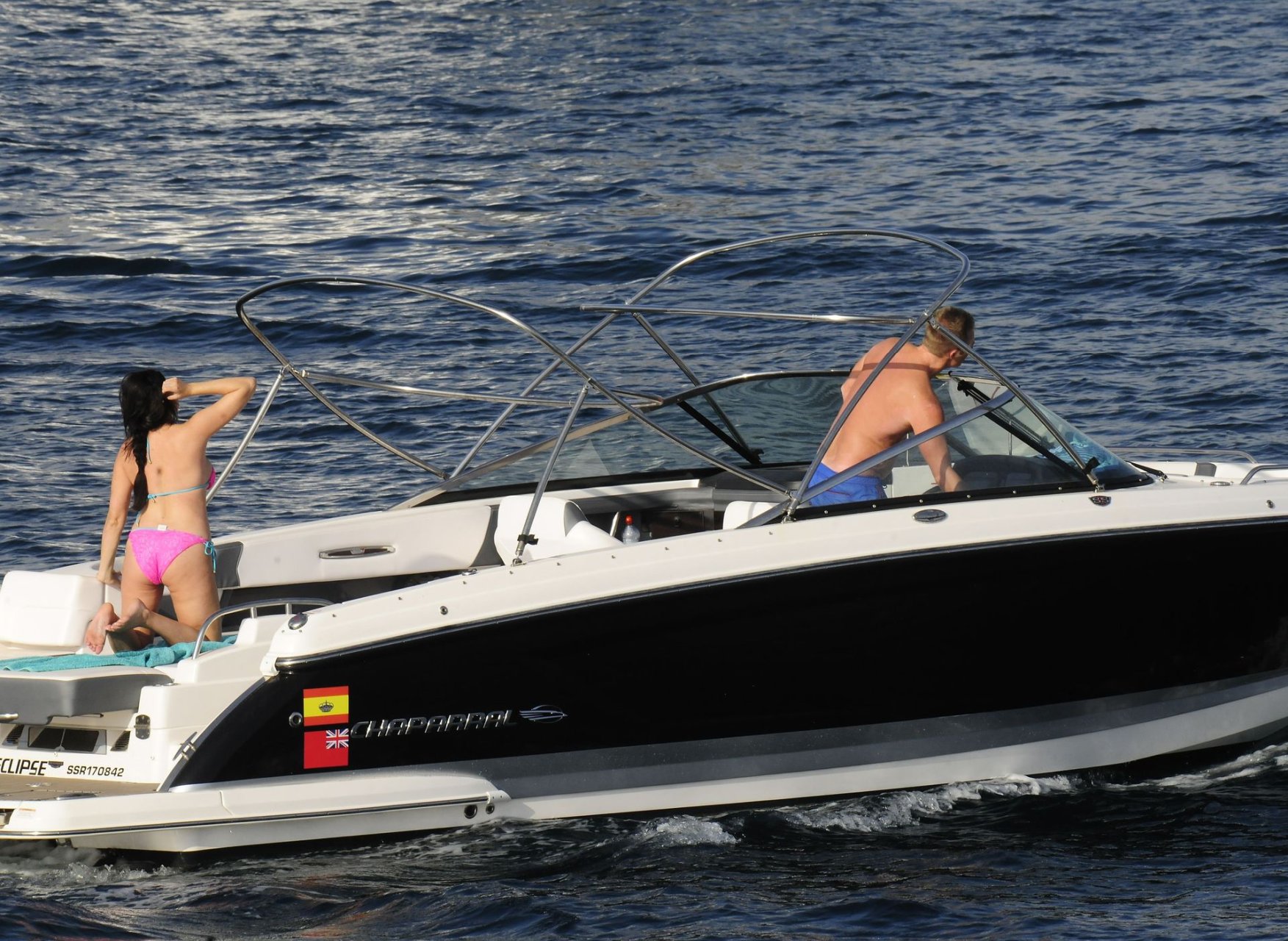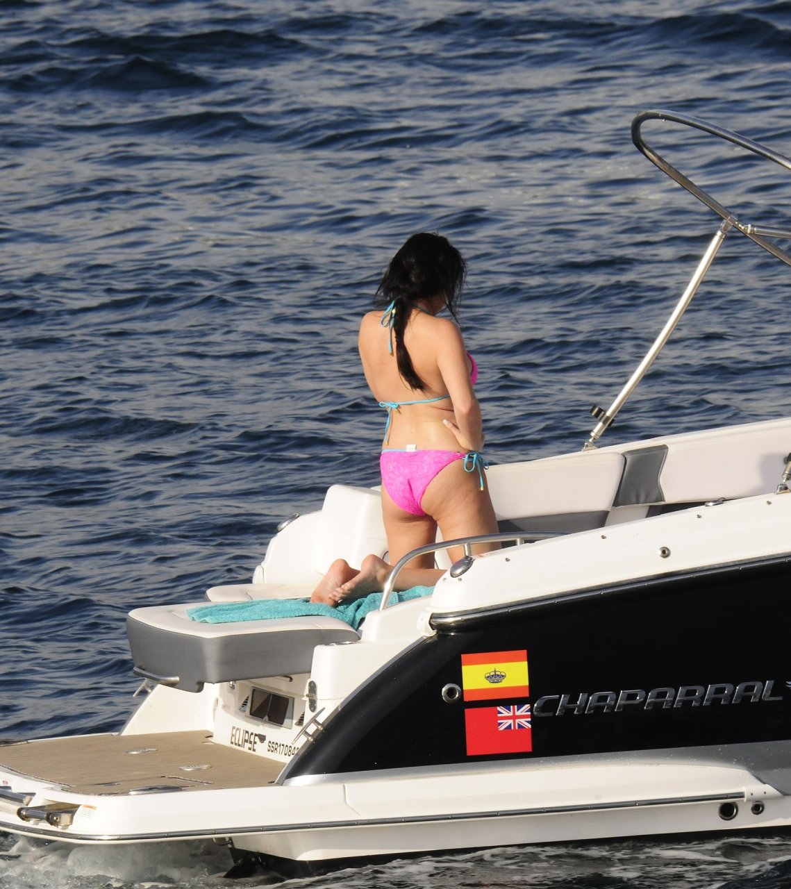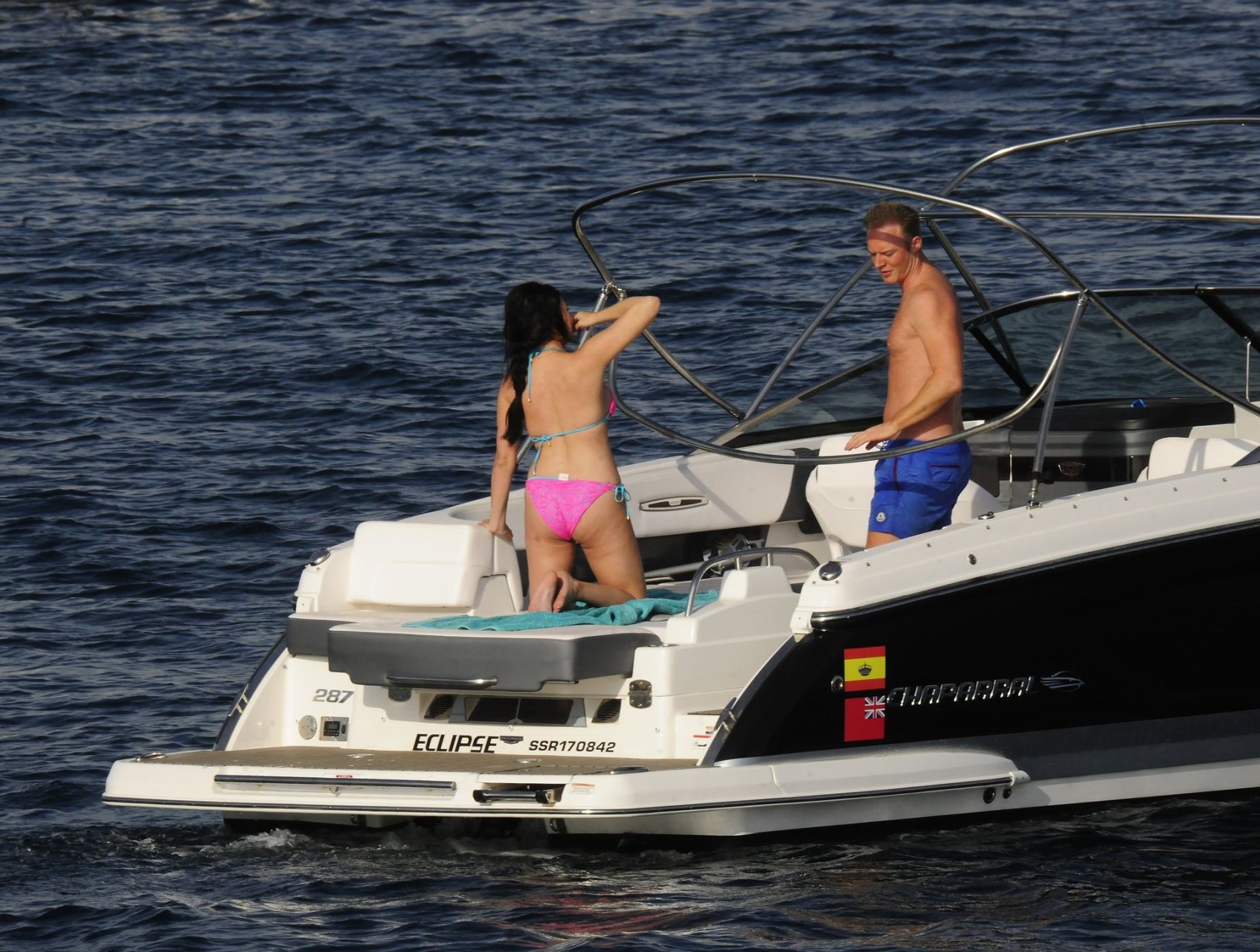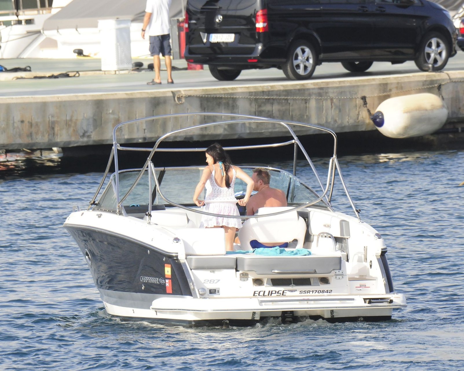 La estrella de TOWIE, Jessica Wright, sale en un yate con su novio William Lee-Kemp mientras están de vacaciones en Mallorca, España, 17/09/2019. Jess fue vista en un bikini rosa en el barco con su pareja.