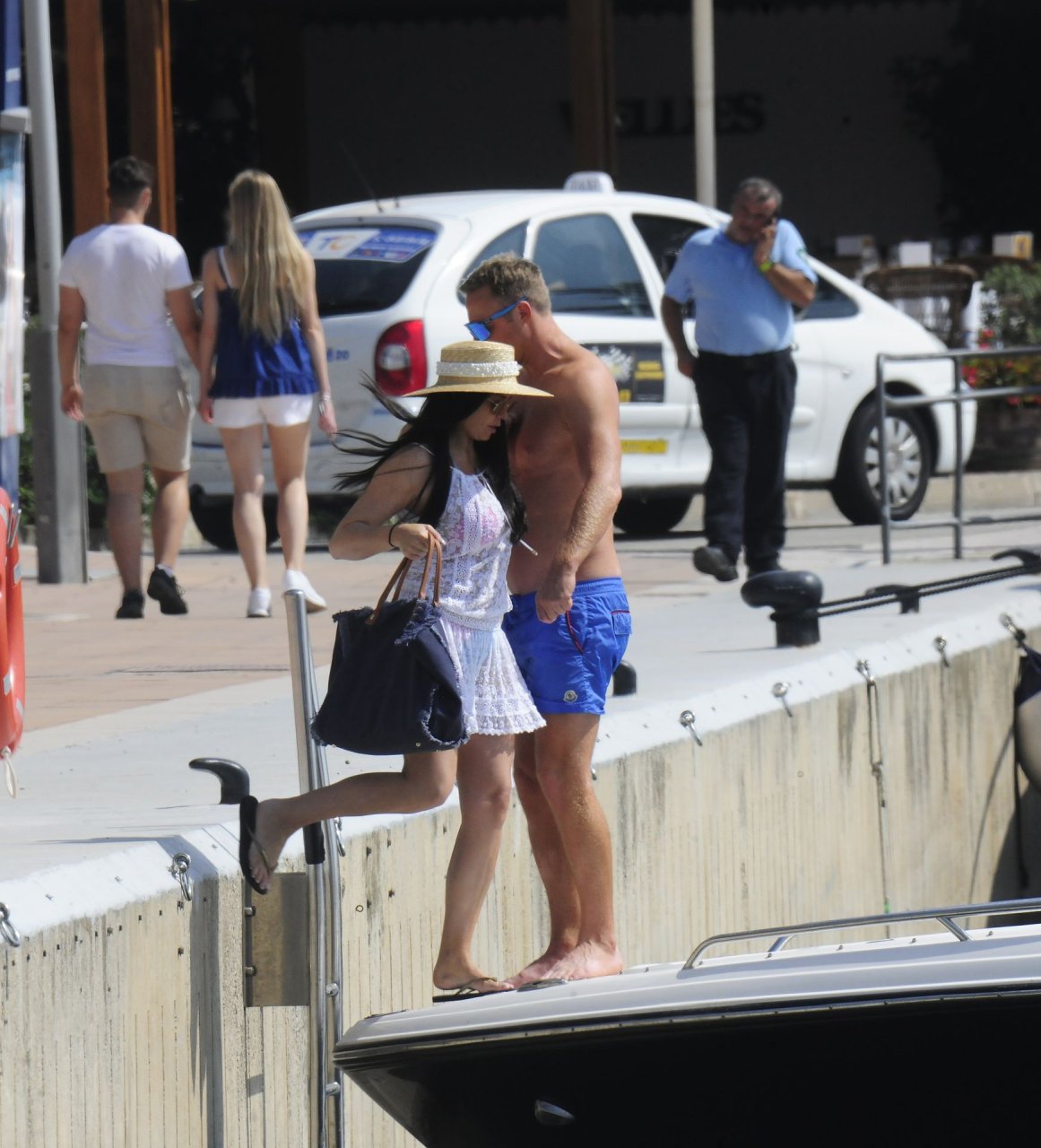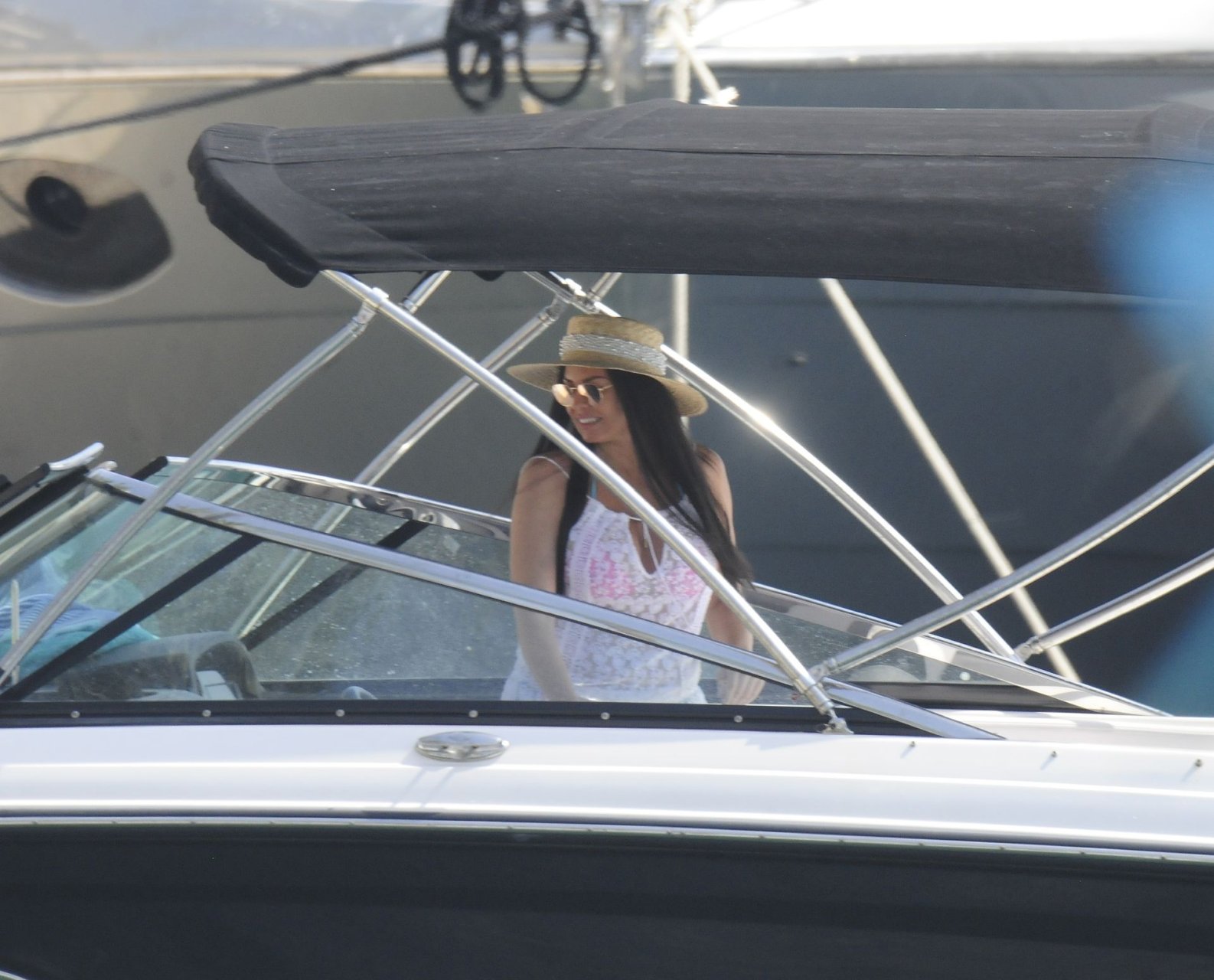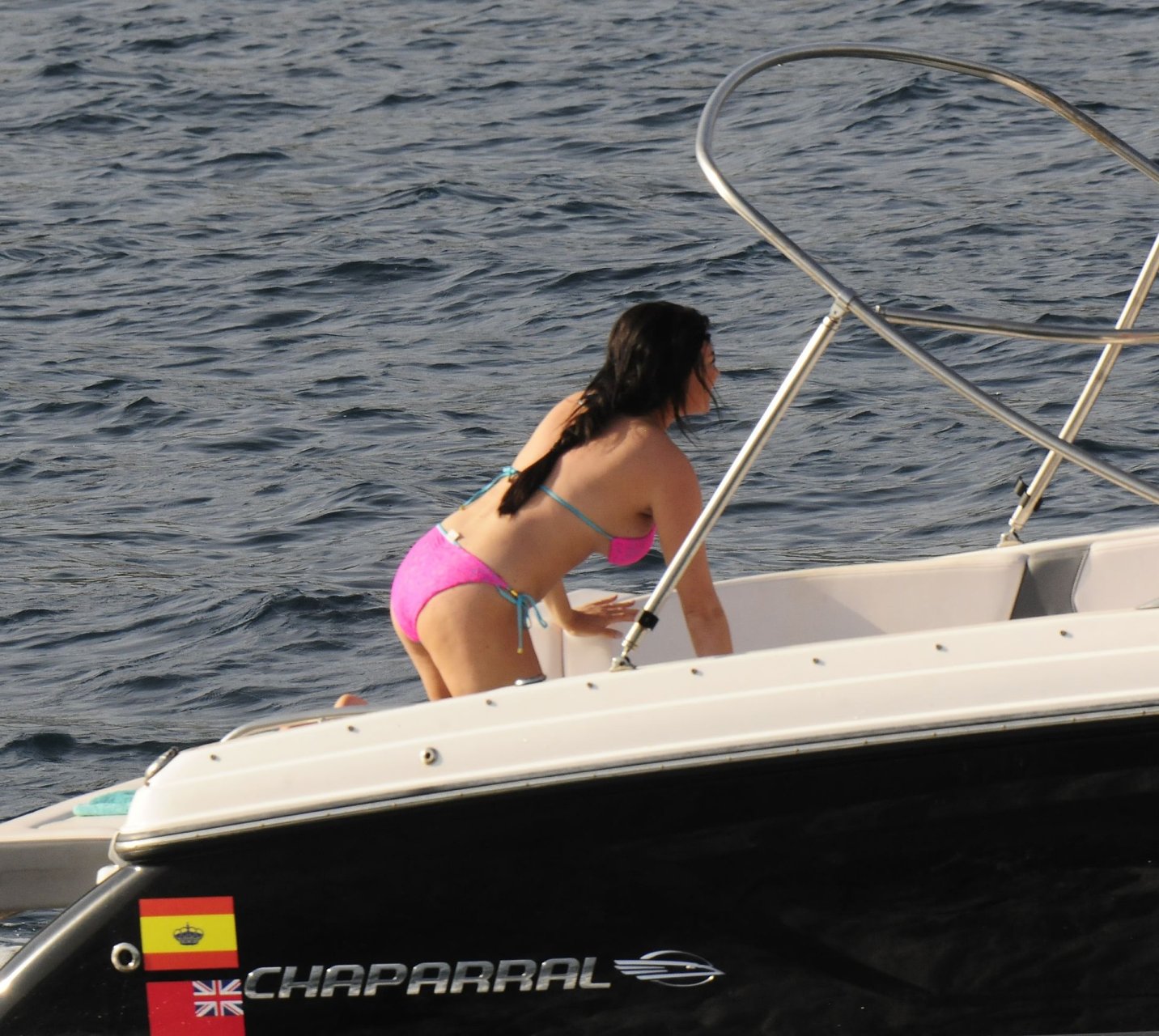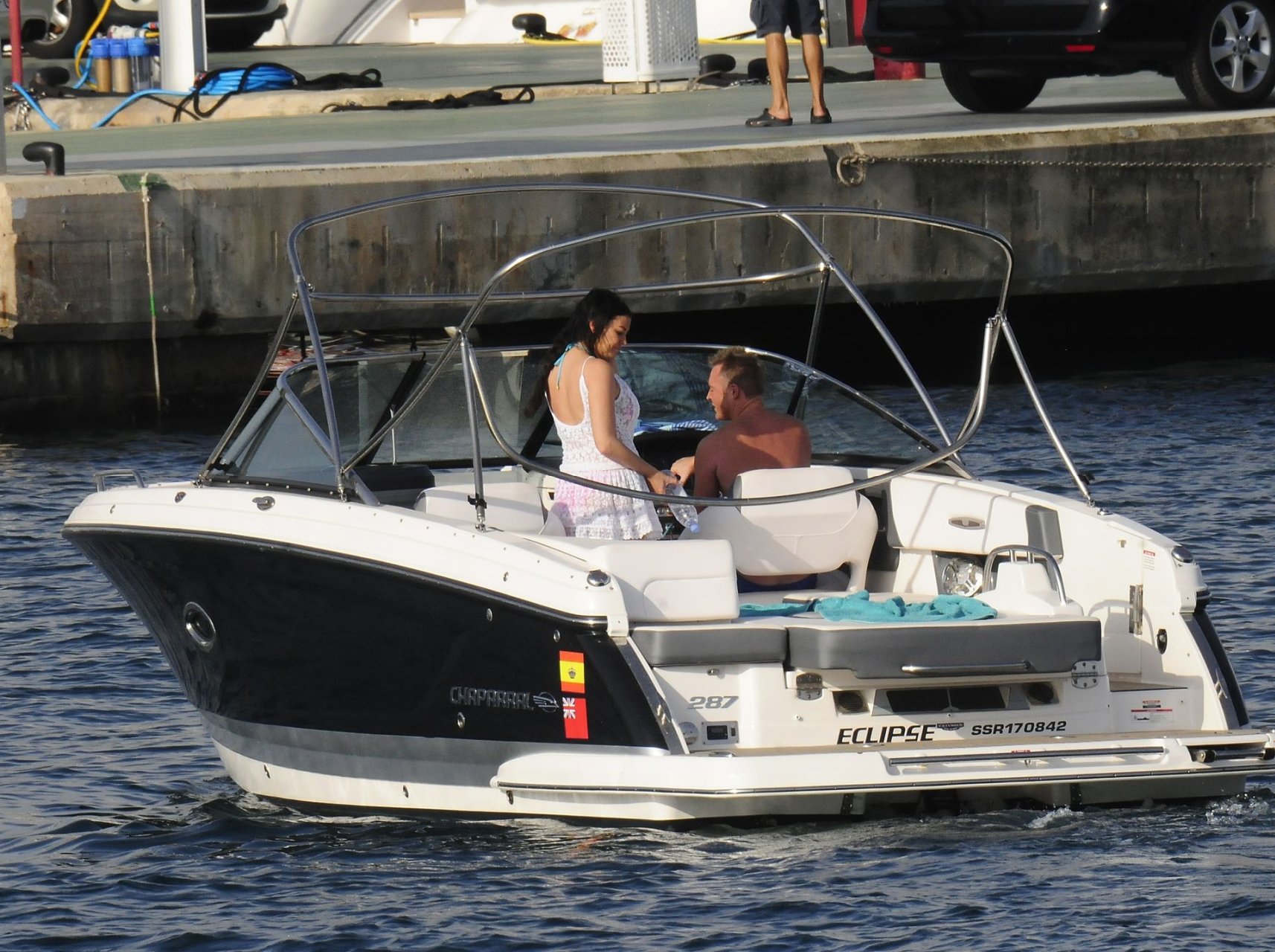 La estrella de TOWIE, Jessica Wright, sale en un yate con su novio William Lee-Kemp mientras están de vacaciones en Mallorca, España, 17/09/2019. Jess fue vista en un bikini rosa en el barco con su pareja.