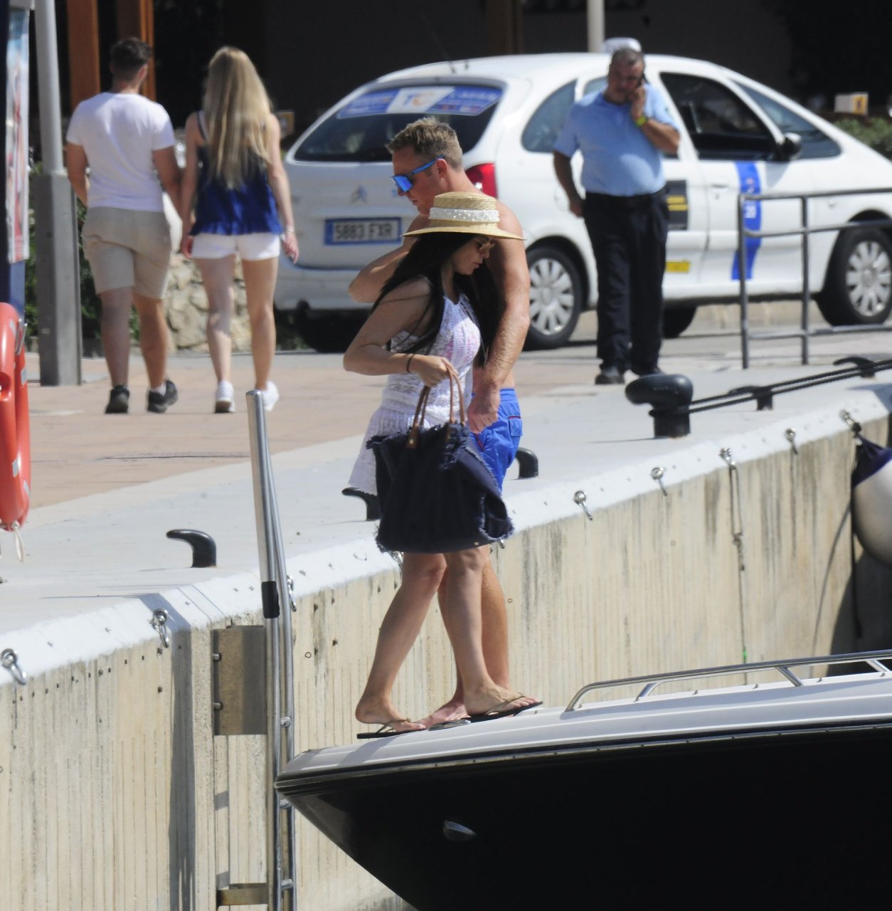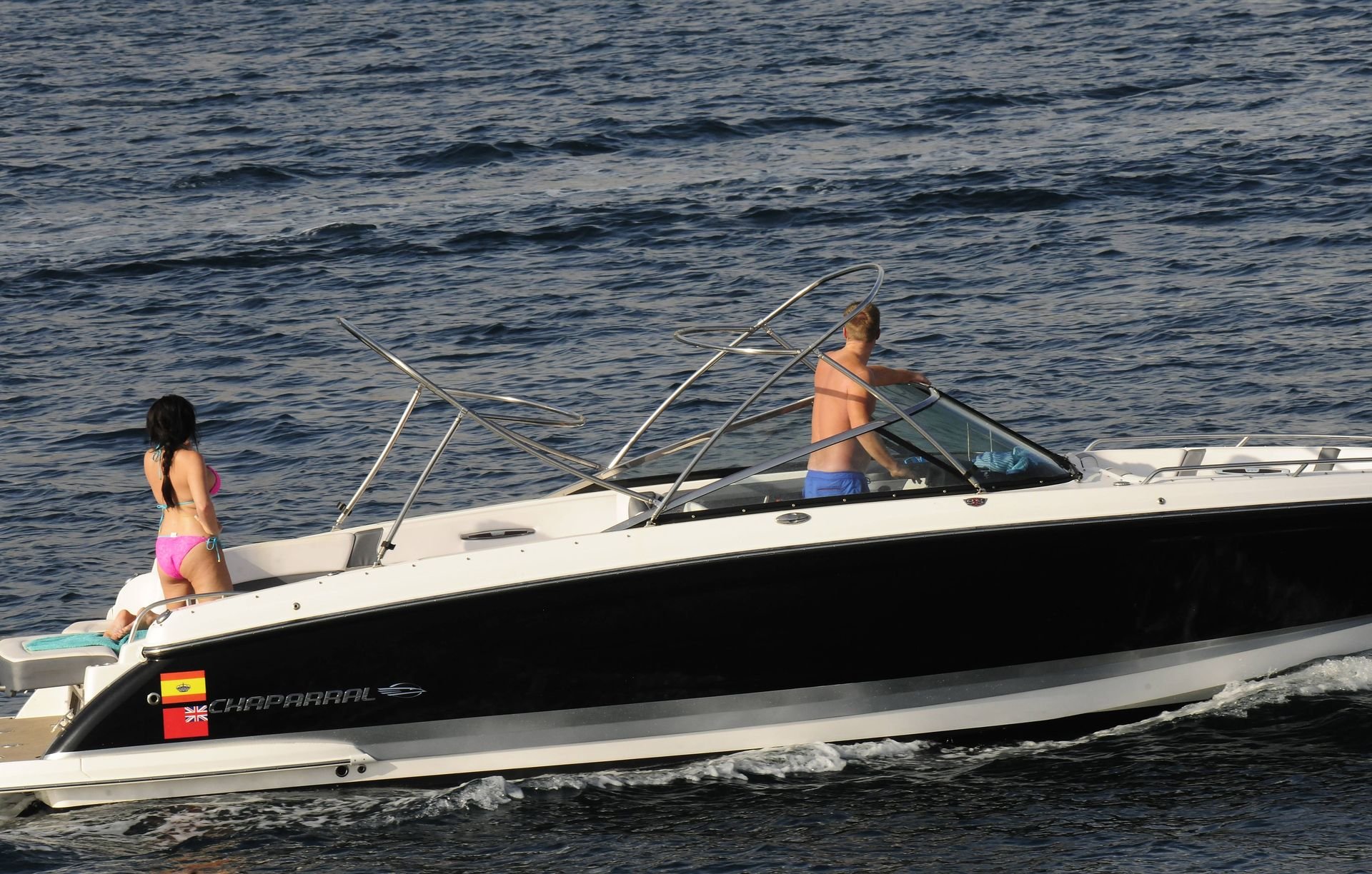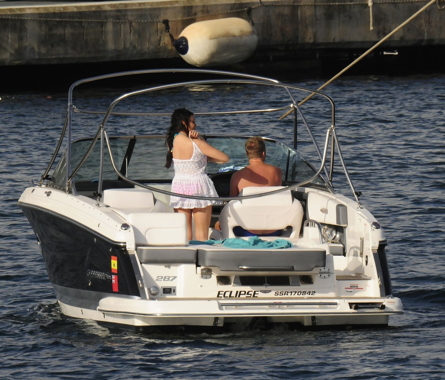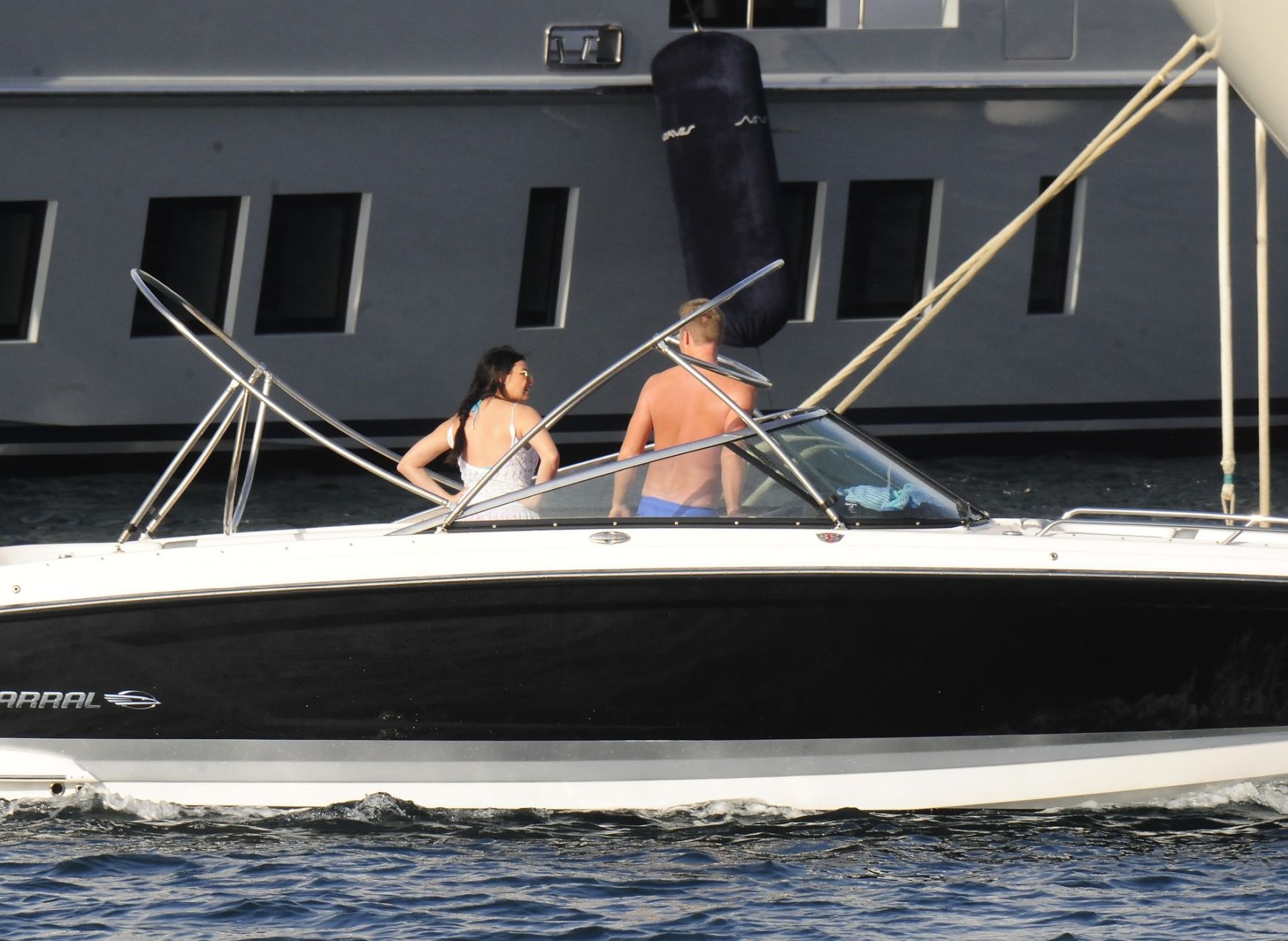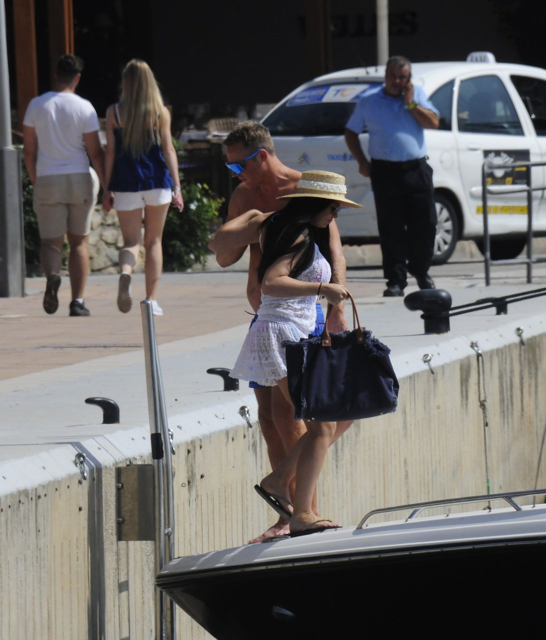La estrella de TOWIE, Jessica Wright, sale en un yate con su novio William Lee-Kemp mientras están de vacaciones en Mallorca, España, 17/09/2019. Jess fue vista en un bikini rosa en el barco con su pareja.