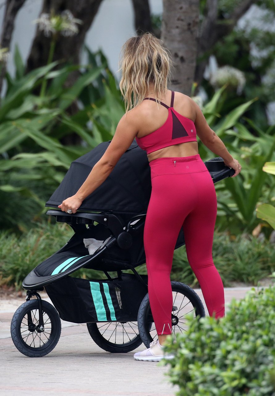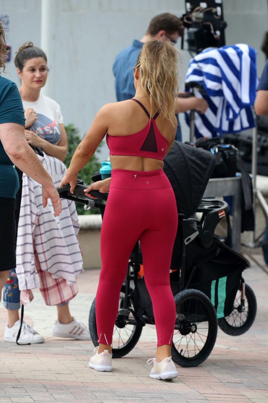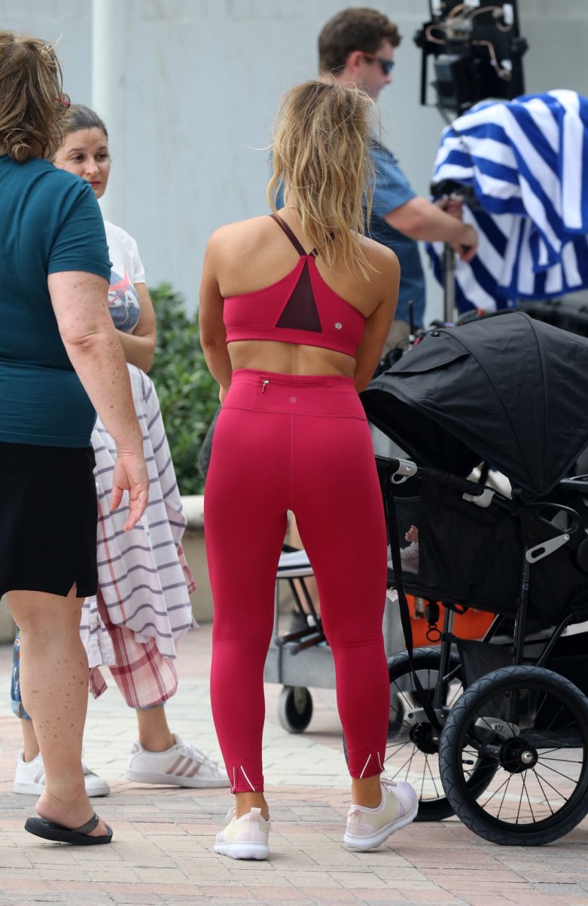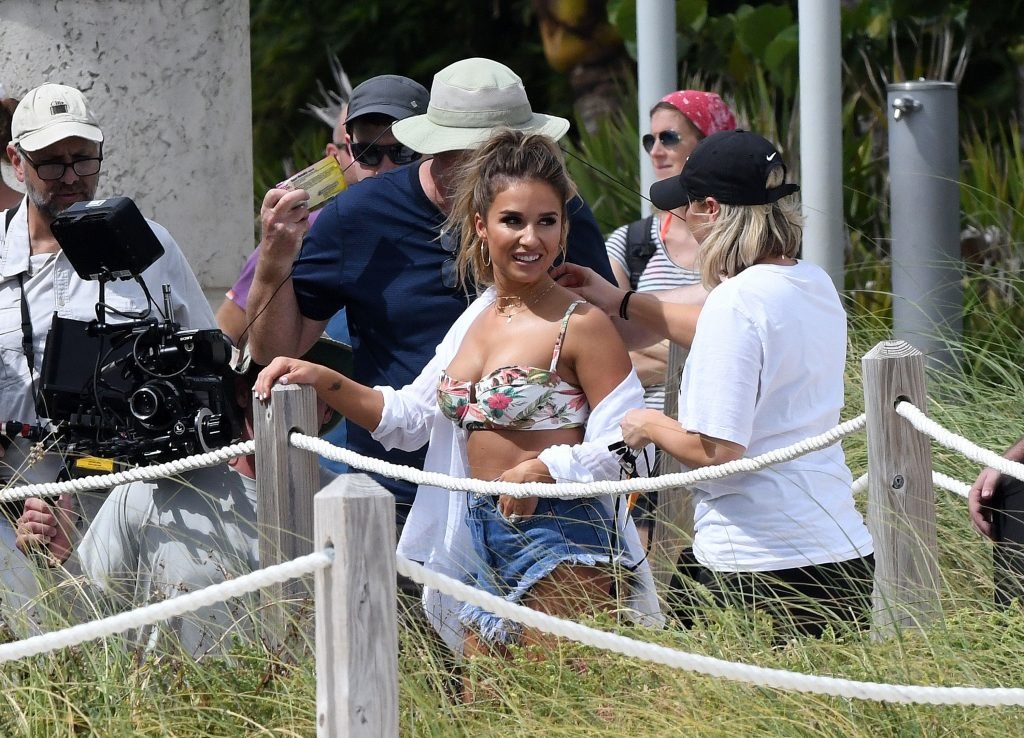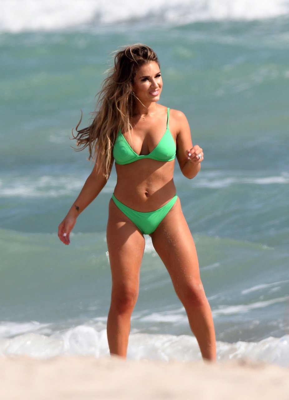 La estrella de country y estrella de reality TV Jessie James Decker (30) lleva un bikini verde brillante mientras graba un comercial en Miami Beach, 22/10/2018.